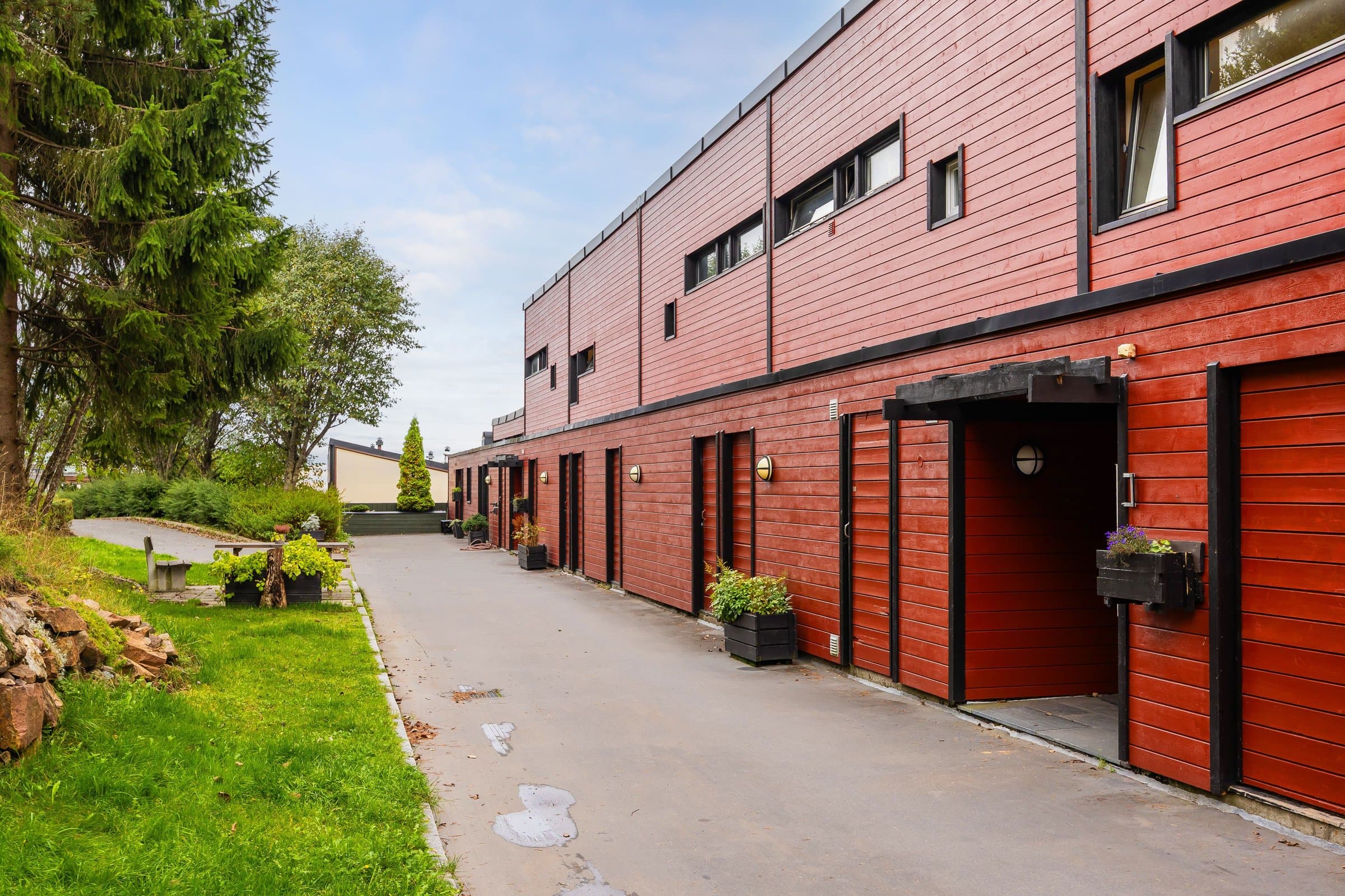 Skogen boligsameie er et sameie med 202 boliger fordelt på tre forskjellige boligtyper kalt A-, B- og C-boliger. De 98 A-boligene er tre-plans rekkehus. Det er 67 to-plans B-boliger og 36 ett-plans C-boliger. C-boligene ligger alle på toppen i hus numrene 250 til 260. Leiligheten som er til salgs er en C-bolig og ligger på plan 7 (trykk på 7 i heisen). Boder og lagring: Boder for C-boligene er organisert utenfor inngangen til oppgangene på plan 7 og det er også en liten skapbod for hver C-bolig i garasjen på plan 2 og 3. Det er låste fellesboder for lagring av bildekk på garasjeplan 2, 3 og 4 hvor sameiere kan lagre sine dekk for sesongen. Det er også satt av plass på plan 3 og 4 i garasjen for sykkelparkering innendørs.