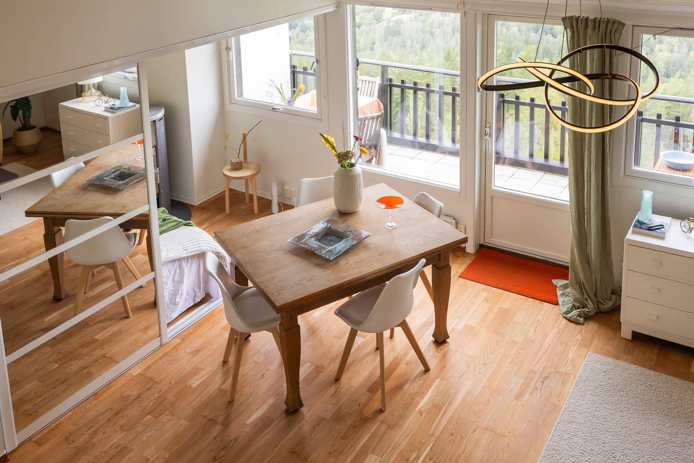 Dersom du sliter med luftkvalitet i lavereliggende strøk i Oslogryta, eller andre steder, så vil du her kunne nyte klar og ren luft til alle årets sesonger. Til og med bjørkepollen er det lite av her oppe, ettersom leiligheten ligger veldig luftig til og det er et godt stykke til nærmeste bjørketre.