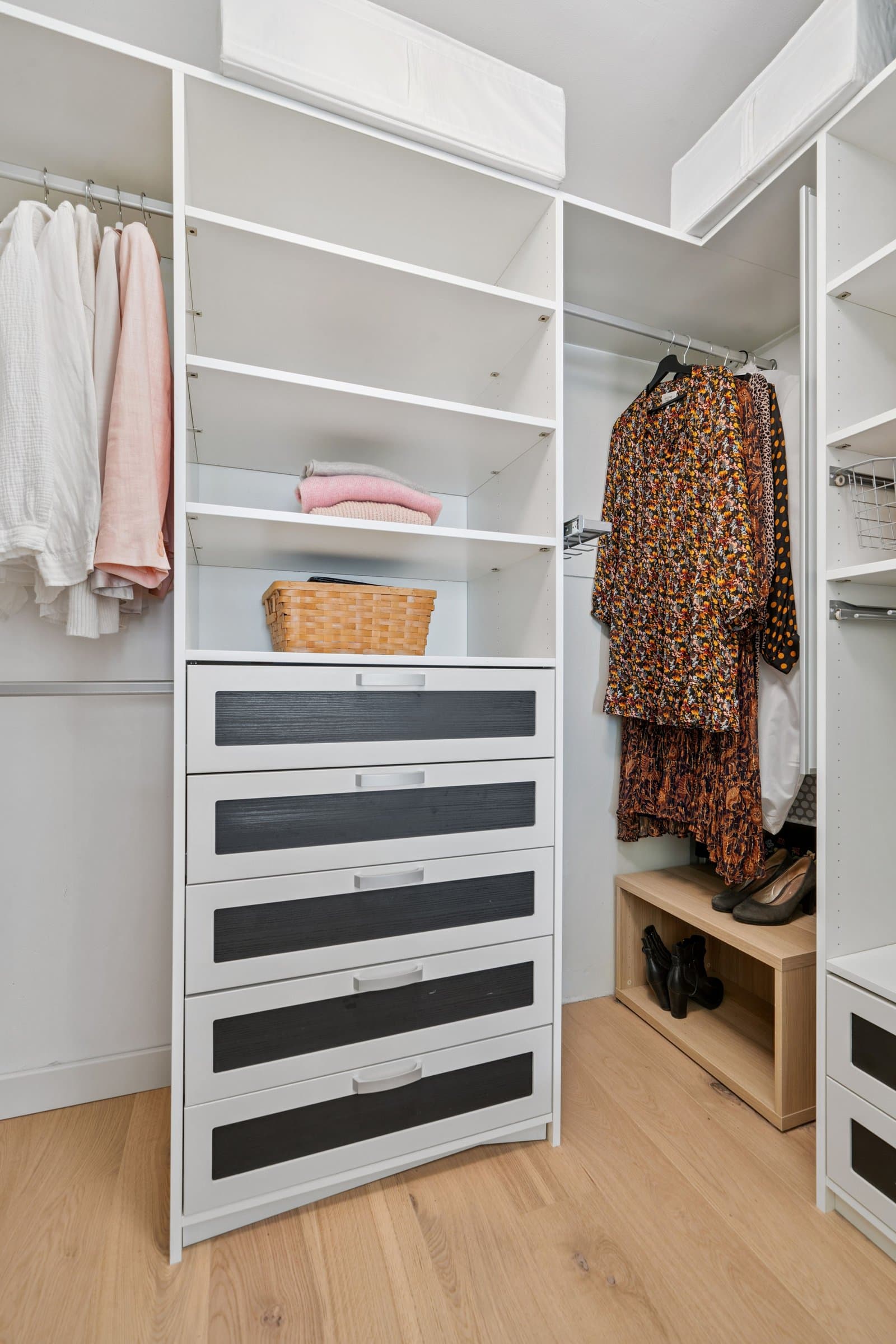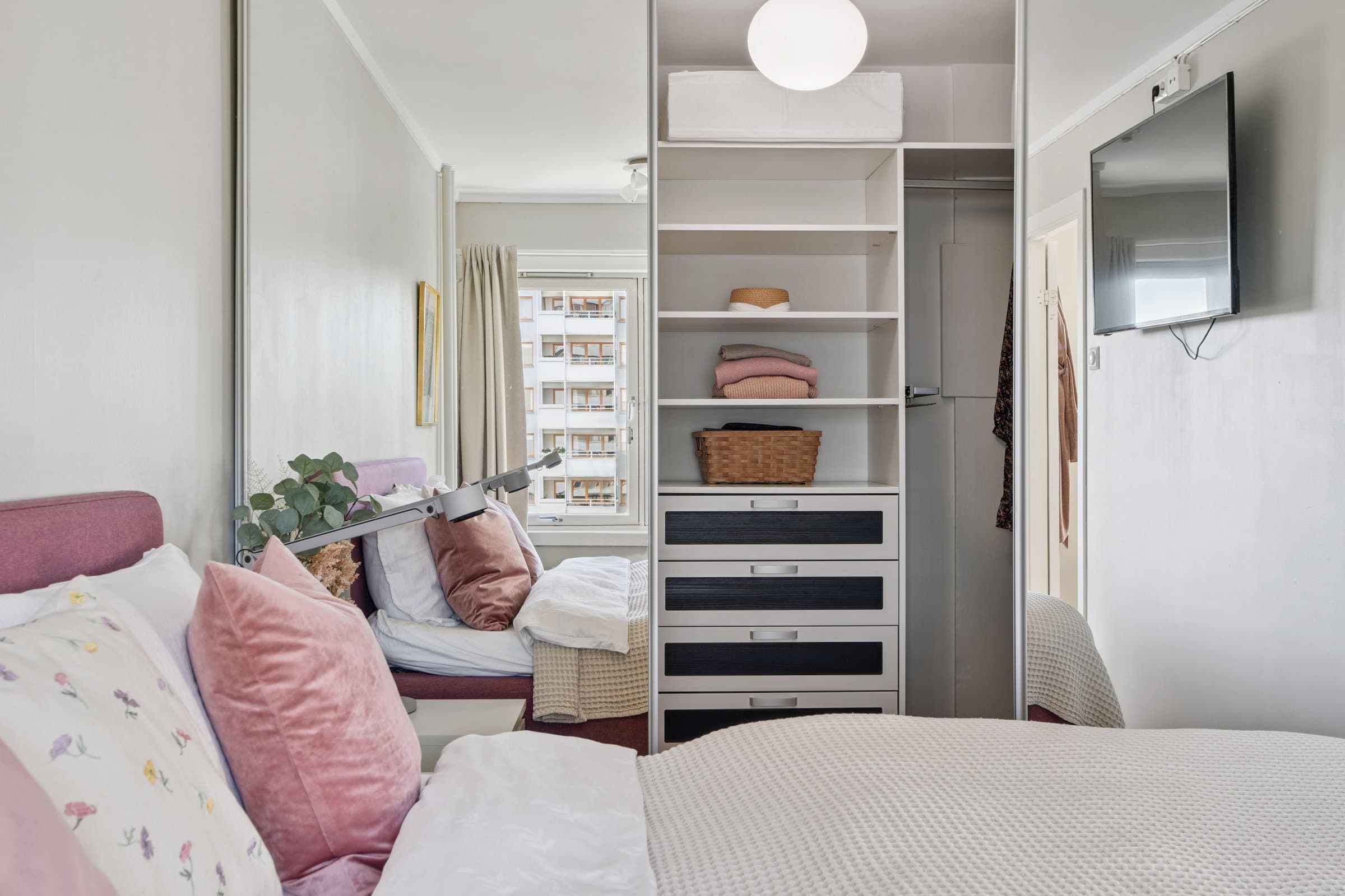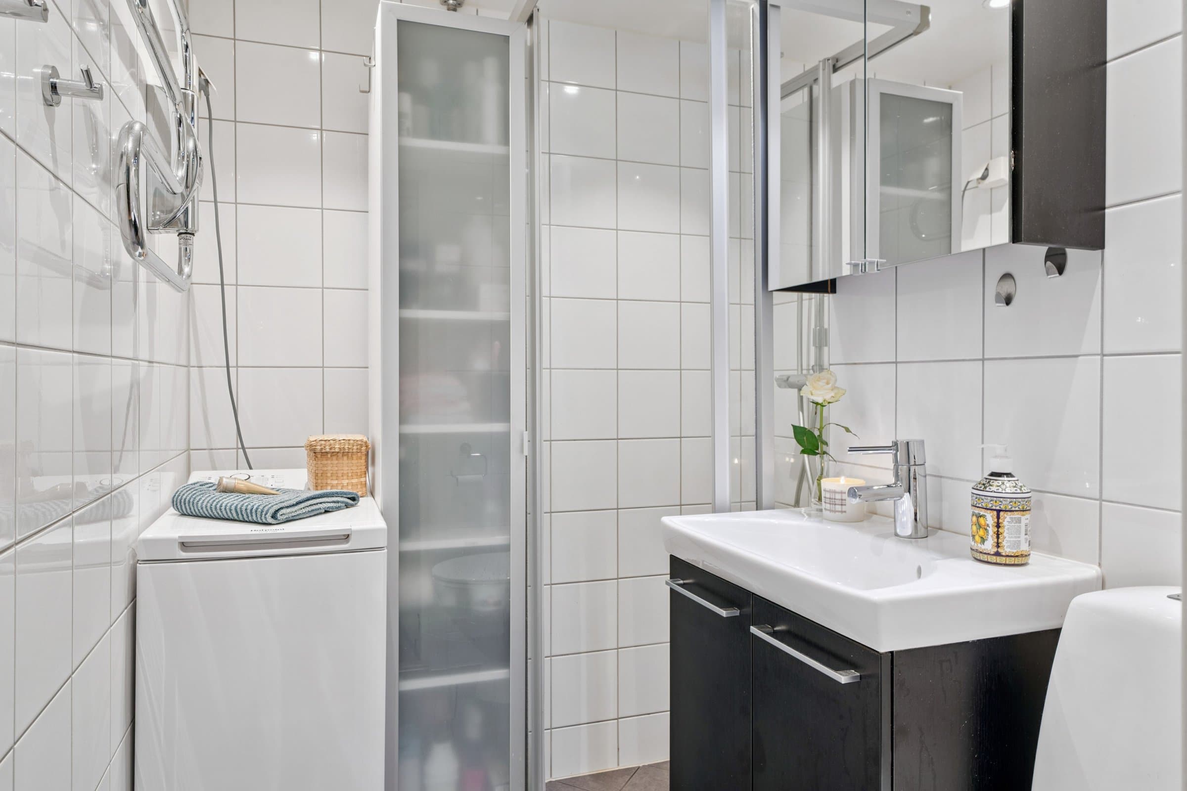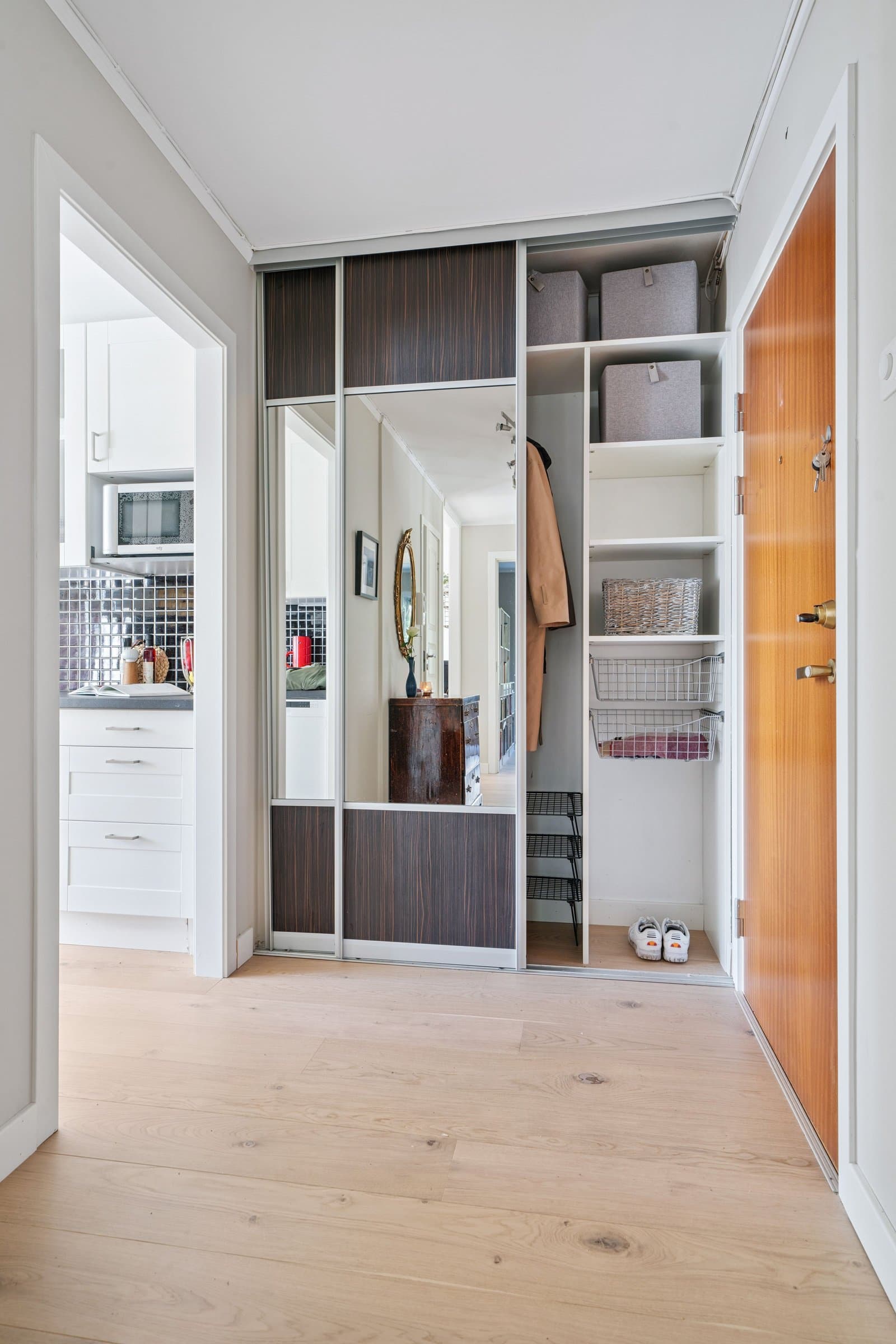 ENTRE: Denne er godt utnyttet og har god plass til klær: To garderobeskap og en knaggrekke. Entremøbler som kommode og en stol. Entreen har lyse, slette vegger og parkettgulv. Speildører i garderobeskap. STUE: Stuen framstår som lys og innbydende med utsikt mot grøntareal og mot byen. Den er nyoppusset (2024) i lyse, tidløse farger ( Sense, og med enstavs eikeparkett. Plass til både hjørnesofa og spisestuemøblement. Og en vegg for TV. Fra stuen er det utgang til en romslig balkong (8 kvm), som er tett beliggende på grøntareal, rolig, og med flott utsikt over byen. KJØKKEN: Den største kvaliteten ved kjøkkenet er egentlig utsikten fra kjøkkenbordet! Og at kjøkkenet er dels skjermet fra stuen, slik at man slipper å se rotet på kjøkkenbenken fra sofaen. Kjøkkeninnredningen er endel år gammel, (2012) men fungerer utmerket og rommer mye. Komfyr, ventilator (ny), kjøl/frys og mikrobølgeovn følger med. Kjøleskapet er bygget inn i en nisje tatt fra soverommet, slik at spiseplassen ved kjøkkenet blir romsligere (gjort i 2024). BAD: Badet er ikke stort, men det har alt du trenger: Dusjhjørne, servant, speil, oppbevaringsplass, elektrisk håndkletørker og vaskemaskin. Men siden borettslaget har et velfungerende moderne fellesvaskeri i 1. etg, bruker jeg nesten aldri egen vaskemaskin. Badet ble pusset opp i regi av borettslaget i 2011. Og gulvvarmen her inngår i fellesutgiftene. SOVEROM 1: Her får du plass til 180-seng med nattbord og adkomst fra begge sider. Og i tilknytning til soverommet er det en romslig walk-in med mye oppbevaringsplass - også på toppen. Soverommet er rolig beliggende uten plagsom trafikkstøy. SOVEROM 2: Egnet til både gjesterom, hjemmekontor og barnerom. Rolig beliggende uten trafikkstøy. Du får fint plass til en dobbeltseng på 150 cm bredde om du vil. BALKONG: Her er det plass til sofa eller spisemøblement, og til grill, om du vil. Herlig, skjermet nærhet til det grønne, og med flott utsikt. Balkongen er sørøst-vendt, og har sol fram til ca 14-14.30. En fordel på hete sommerdager!
