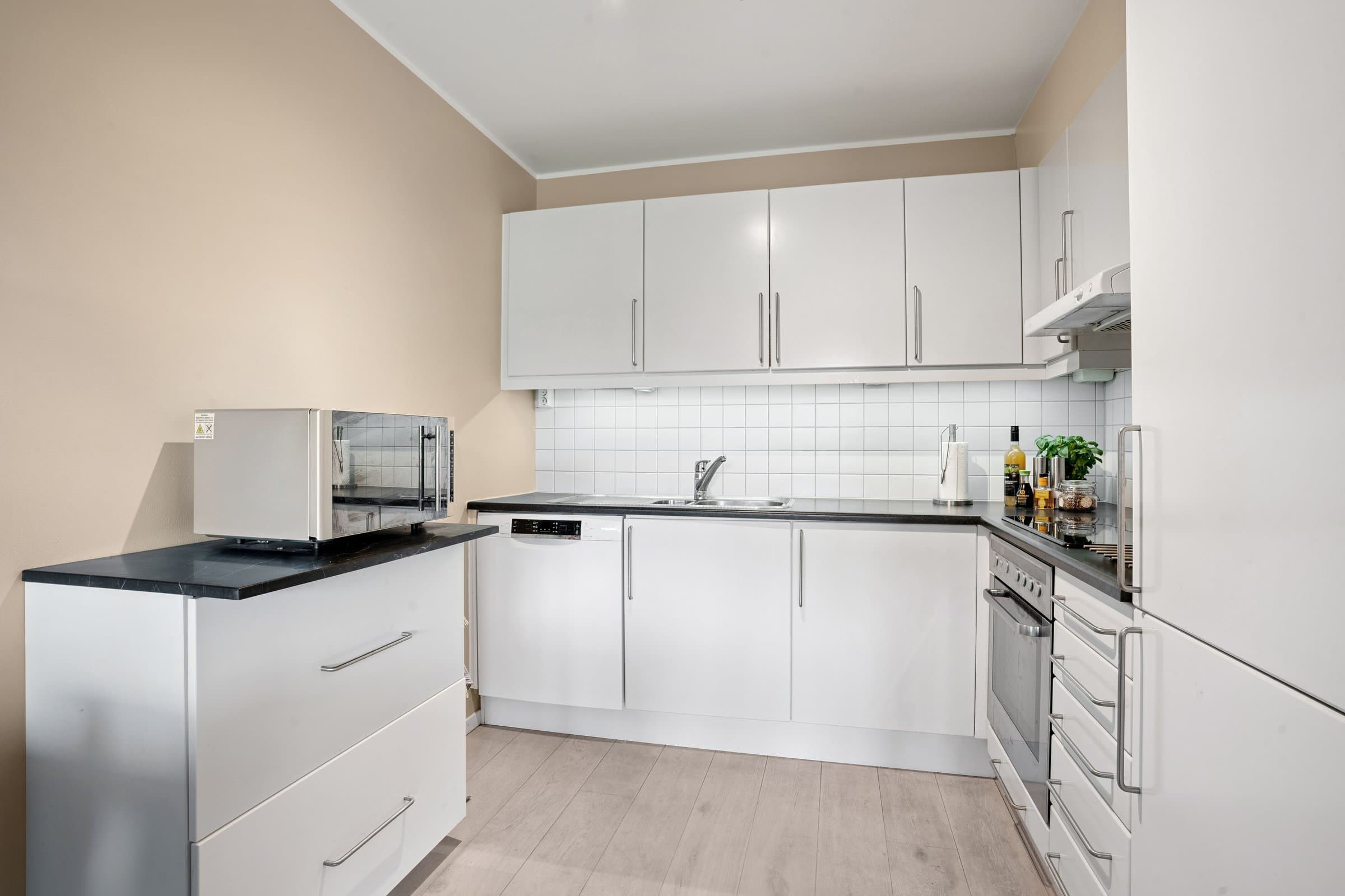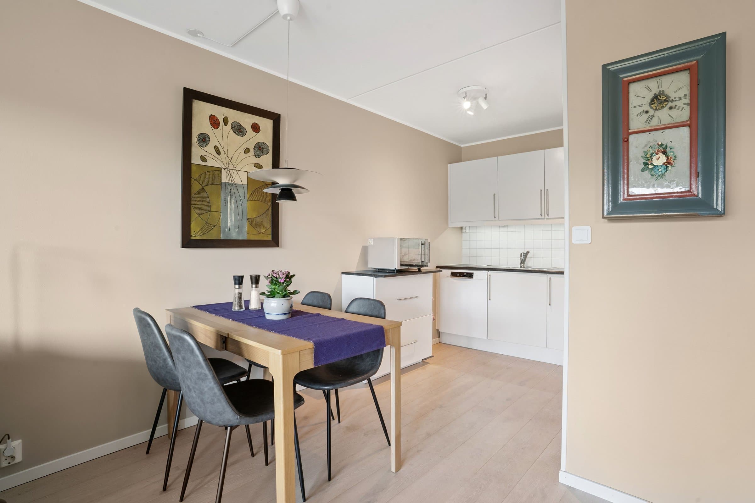 Felleskostnader dekker fjernvarme, varmtvann, internettlevering, vaktmestertjeneste, snømåking, trappevask, kommunale avgifter, husforsikring, fellesområder med tekniske anlegg og andre driftsutgifter. Det er ingen forkjøpsrett på boligen. Integrerte hvitevarer kjøkken og vaskemaskin følger med. I entre kan åpen designgarderobe og veggfast skoskap følge med etter avtale. Om du ikke har mulighet til å komme på visning, holder jeg gjerne privatvisning. Ta kontakt, så finner vi en tid. Jeg har tegnet boligselgerforsikring, og anbefaler også kjøper å tegne boligkjøperforsikring.