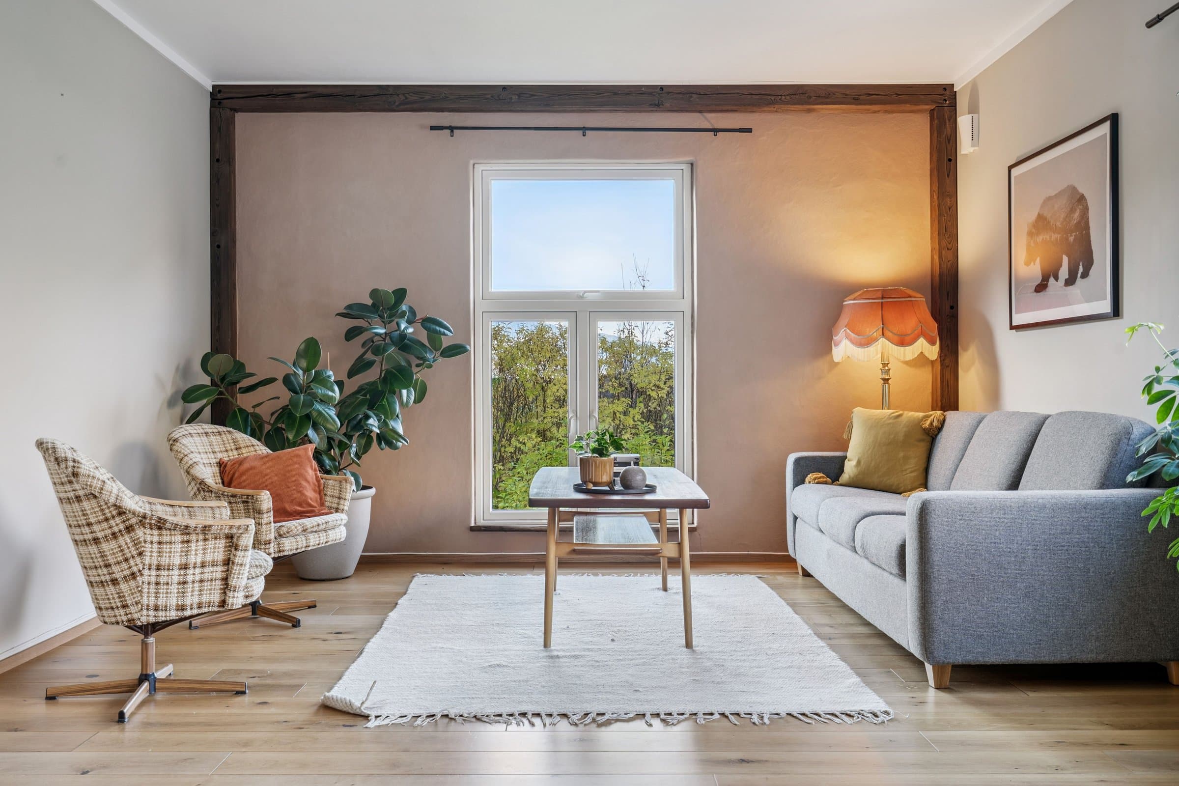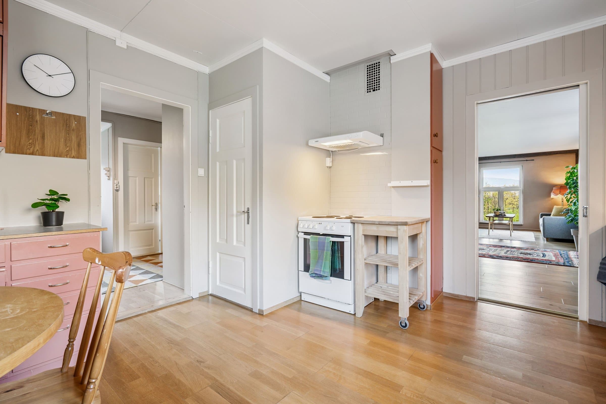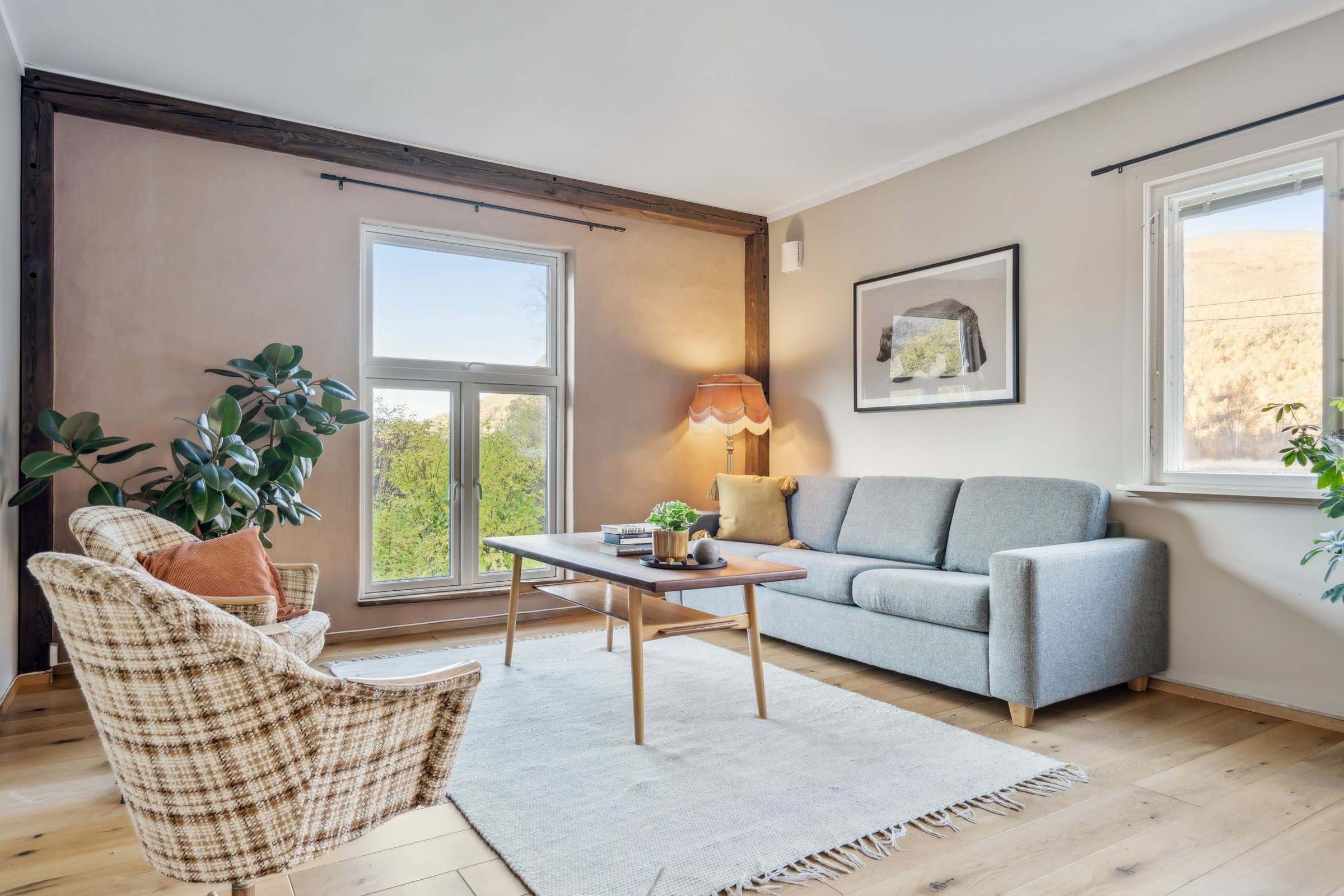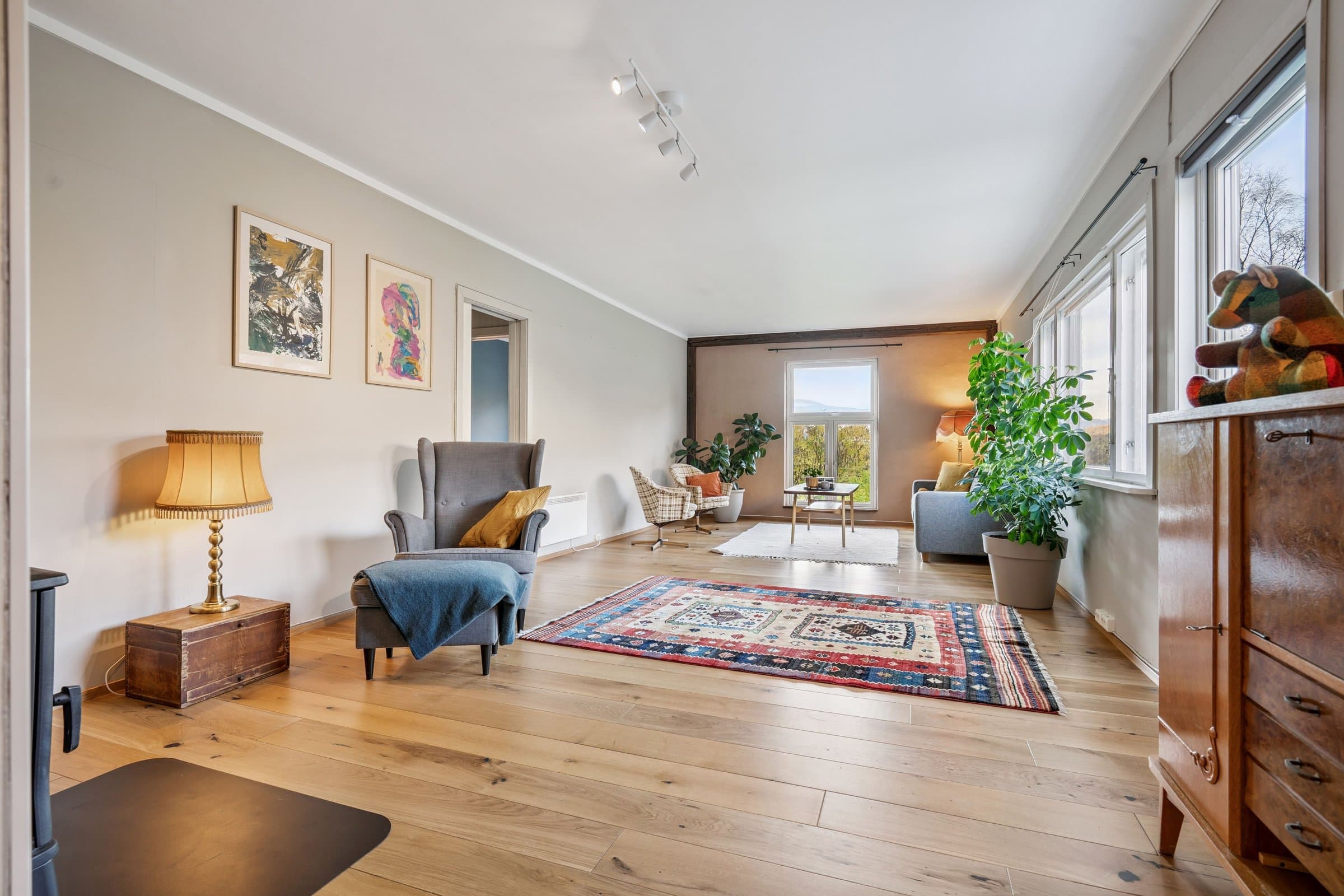 Hyggelig enebolig med stor tomt, eldre snekkerverksted, og elvetomt med naust. Yttergang og bad totalrenovert 2022, ellers alle flater i huset pusset opp. Heltregulv på alle soverom, ellers parkett i stue, kjøkken og gang, klikkvinyl i yttergang. Gjenstår en del renovering; bytte av kledning og vinduer, samt verandadekke. Fire nye vinduer følger med i salgsprisen. Sjarmerende eldre snekkerverksted med mye plass og mange muligheter for bruk. Garasje, uthus og lekestue. Hage med blomster- og grønnsaksbed, bærbusker og trær, samt bålpanne og god tumleplass for barn. Rolig og trivelig nabolag.