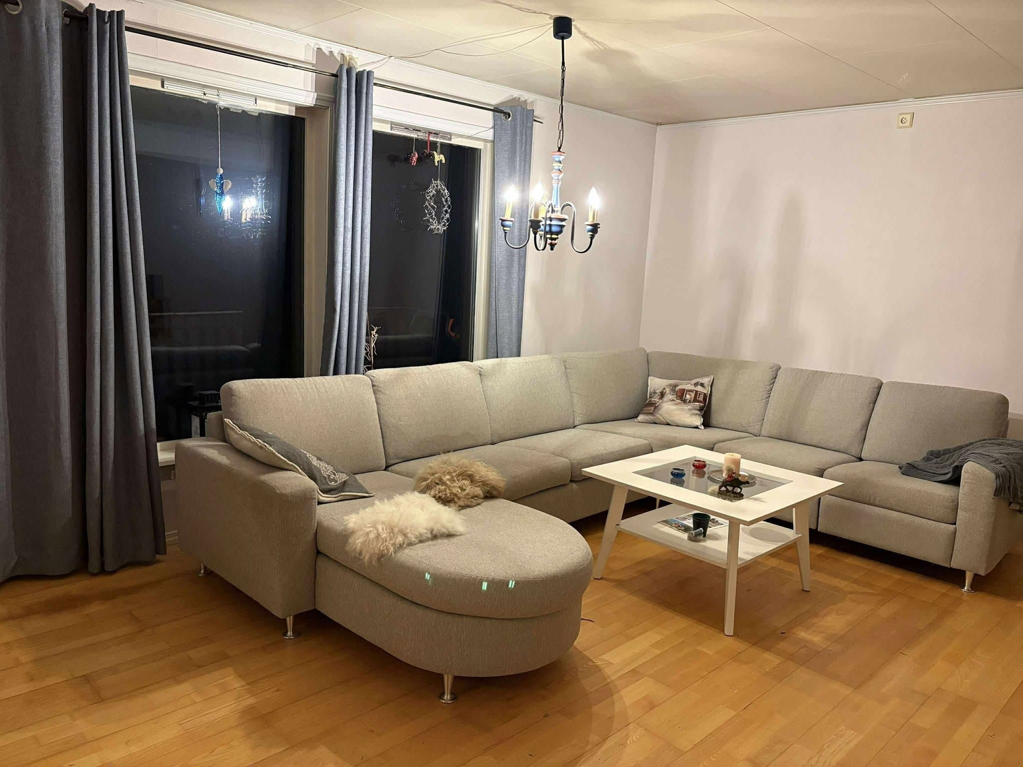 Rekkehus i ende med uthus/bod, balkong og hage. Leiligheten består av: entré, bad, stue, tre soverom og bod. Badet er på hele 18 kvadrat og har stort boblebad i tillegg til dusjhjørne. Gulv består av naturparkett og vinylbelegg. Balkong/terrasse med ettermiddagssol. Hyggelig nabolag og kort vei til kollektivtransport. Parkering på tunet med plass til 2-3 biler.