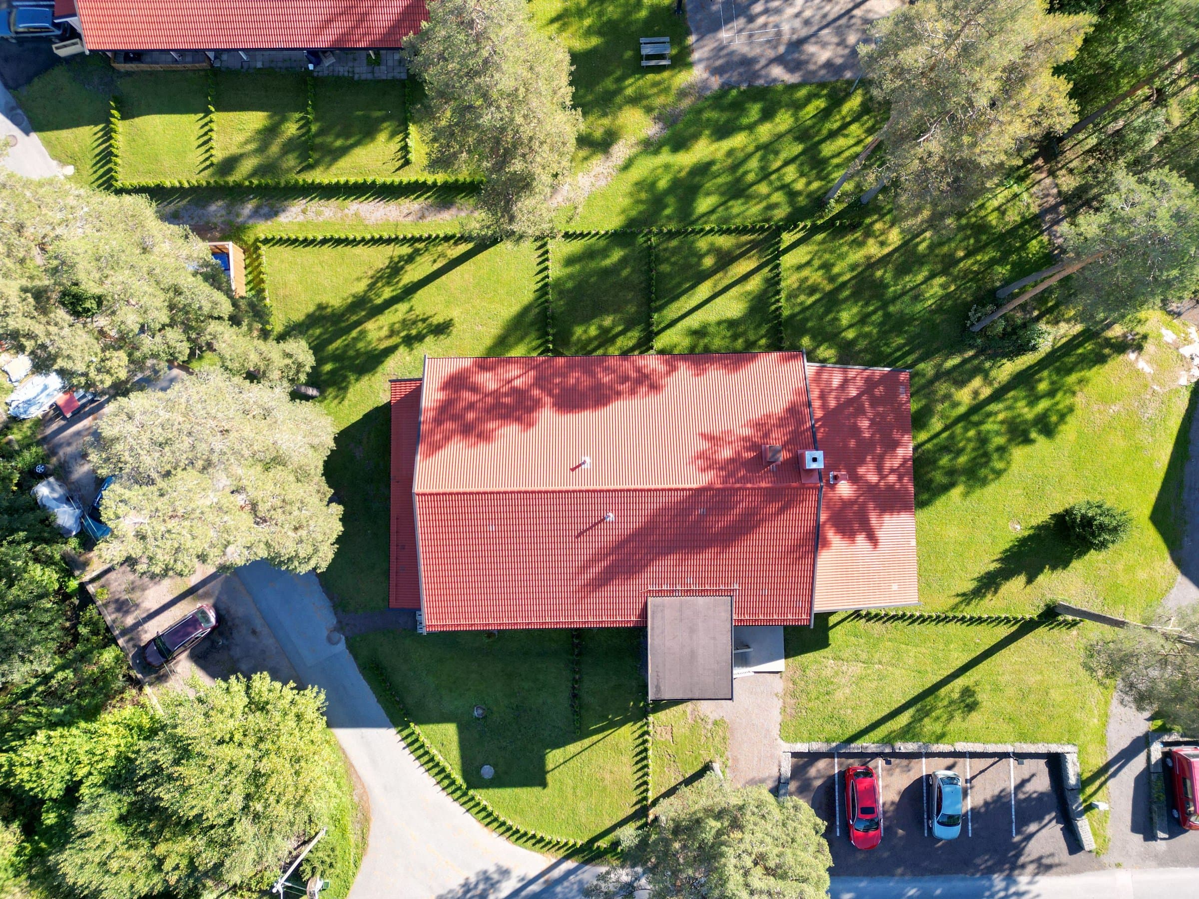 Borettslaget har stor og fin tomt, sort grøntareal med områdets felles lekeplass i midten (eies ikke av borettslaget). Fra privat hage har kan barna løpe ut og leke mens du griller og slapper av.