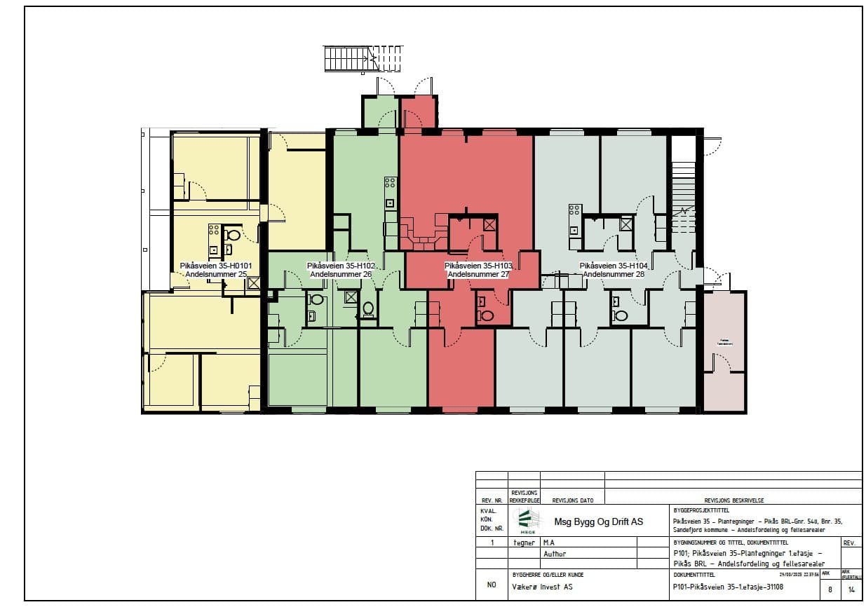 Årlige felleskostnader består av følgende poster: • Sikre et godt HMS-system og drift av datautstyr. 4 000 kr • Løpende vedlikehold av bygget. 5 000 kr • Vedlikehold av rør og VVS. 10 000 kr • Elektrisk vedlikehold og el-kontroll. 5 000 kr • Service og kontroll av brannvernutstyr. 10 000 kr • Revisjon av regnskap. 10 000 kr • Forretningsførsel og administrasjon. 85 000 kr • TV og bredbånd til beboerne. 52 350 kr • Kontingent til boligbyggelag. 4 000 kr • Forsikring av bygg gjennom Nordmegling. 70 000 kr • Sikring av felleskostnader. 25 000 kr • Møter og styredrift. 10 000 kr Totale felleskostnader pr år: 290 350 kr Felleskostnader fordeles etter størrelse på boligen. Totalt 38 boliger deler på kostnadene. For mer info se vedtekter.