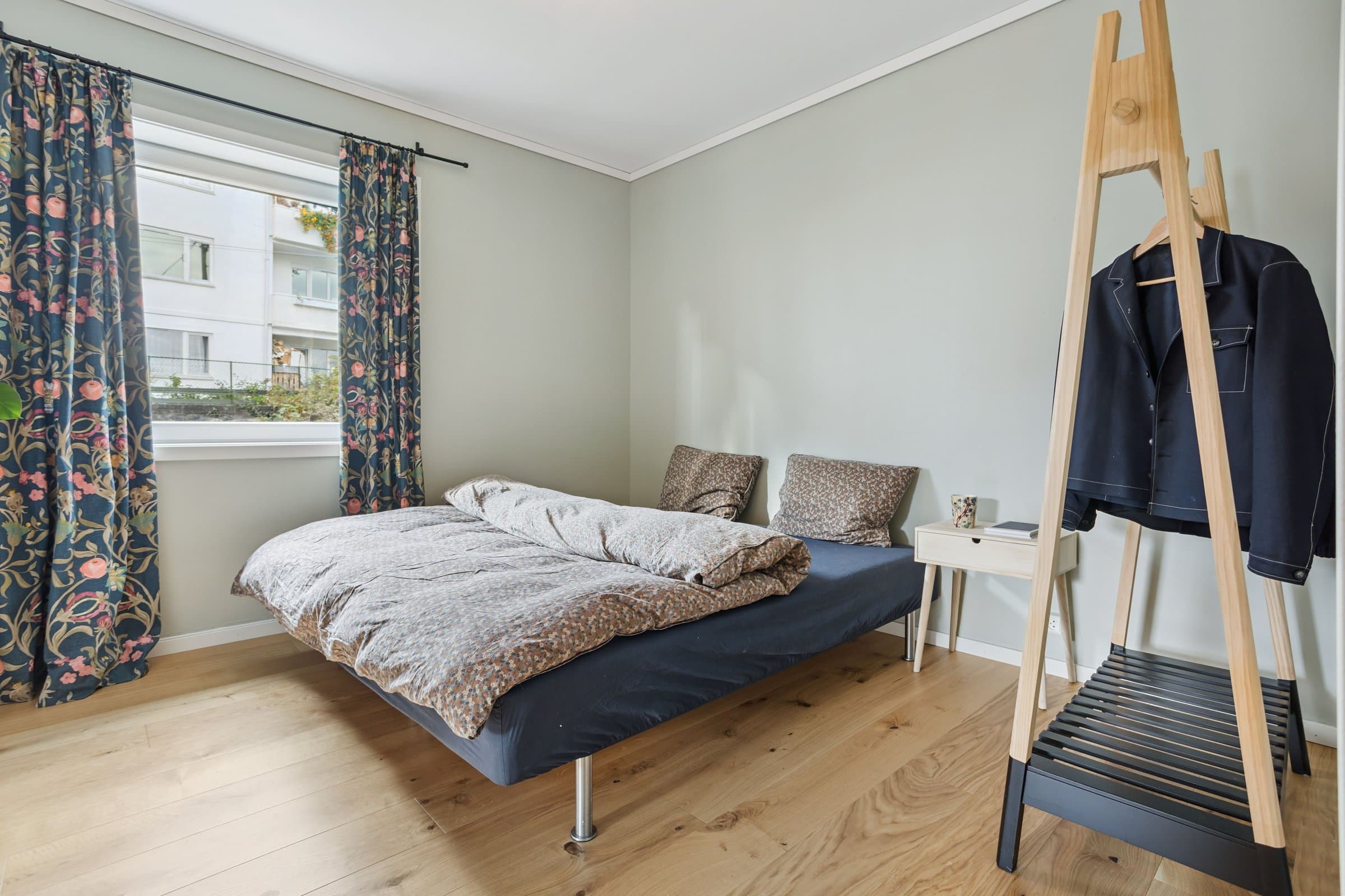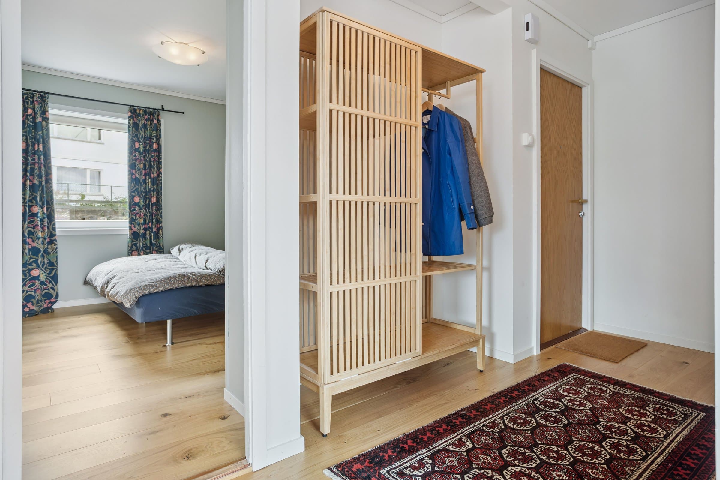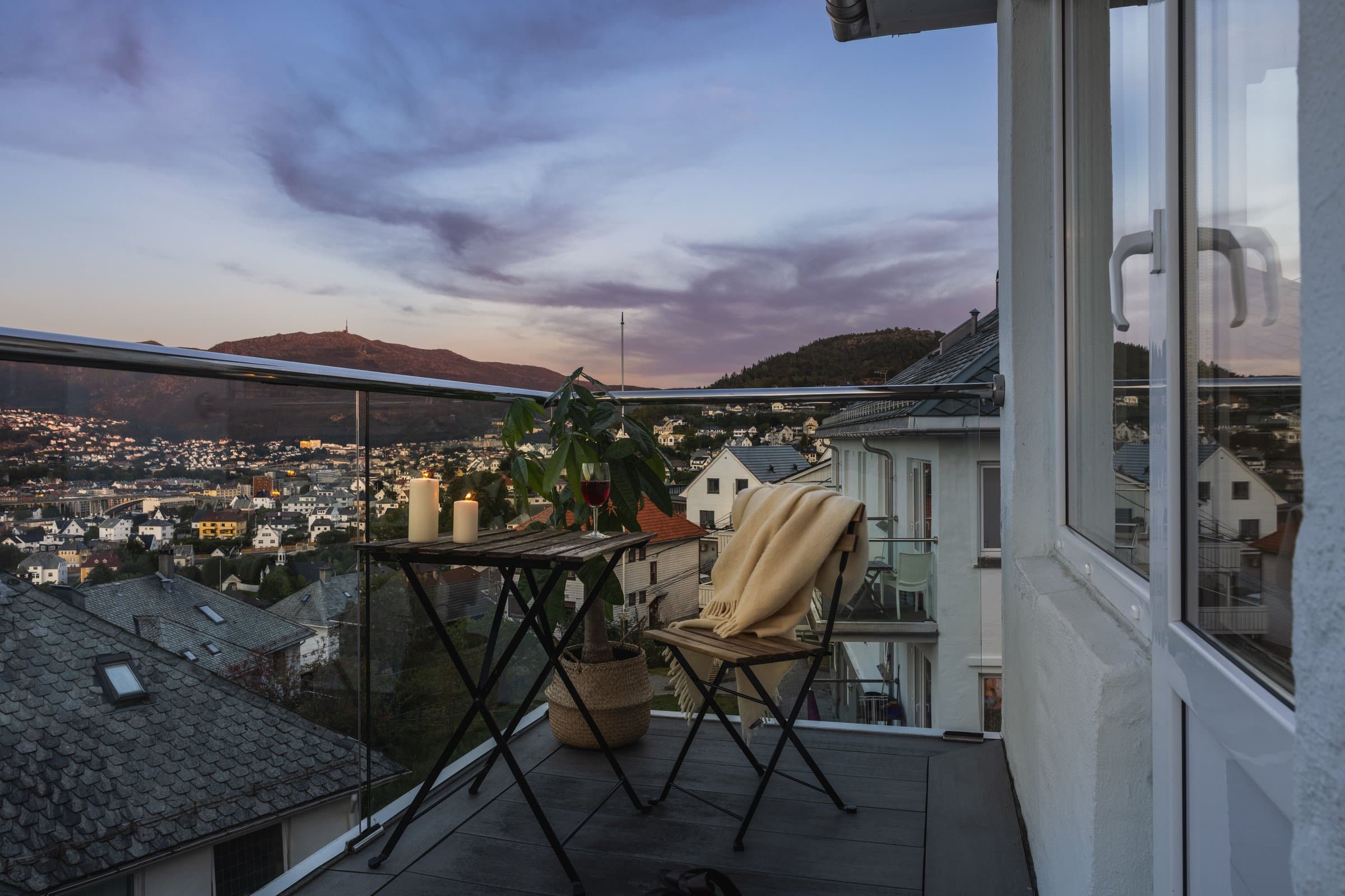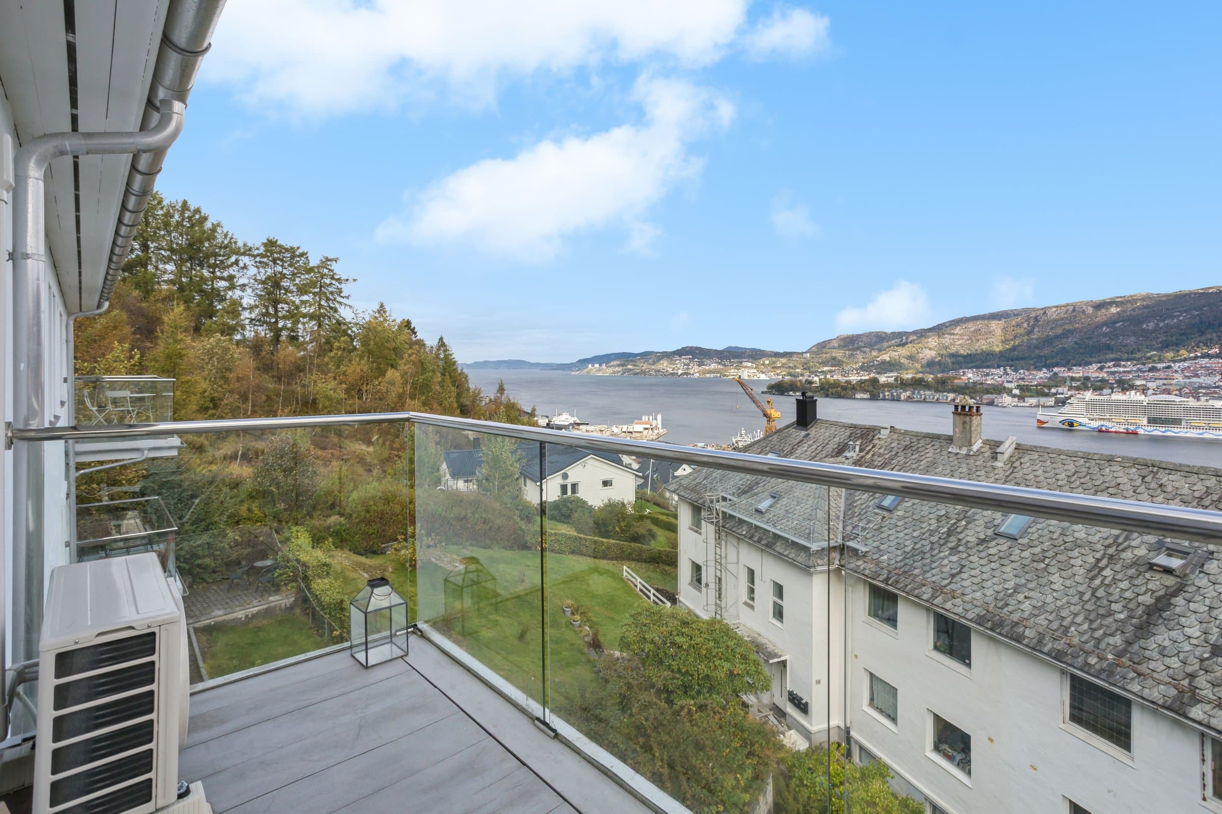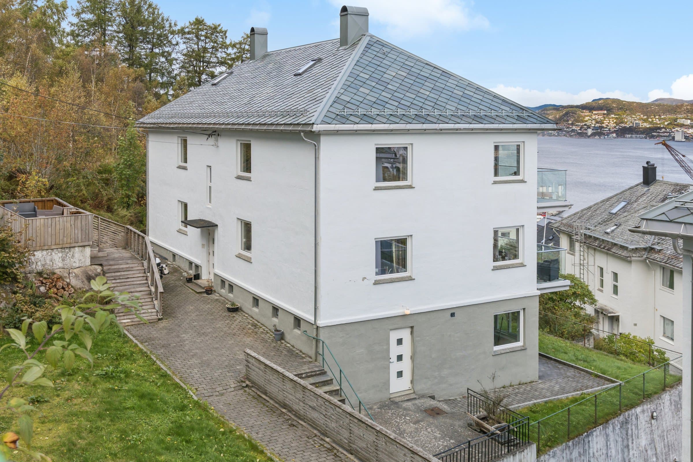Leiligheten ligger attraktivt til i Øvre Stadionveien på Laksevåg – rolig og høytliggende med flott utsikt og fjellet rett bak. Samtidig er det kort vei til sentrum, enten til fots, med sykkel eller kollektivt. Bussforbindelser, dagligvarebutikk, skole og barnehage finnes i nærområdet, og turstier og grøntområder starter like utenfor døren.