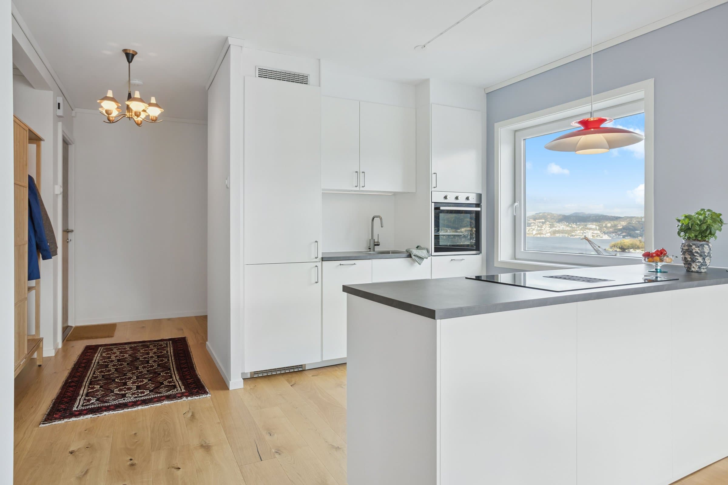 Lys og innbydende leilighet med fantastisk utsikt og høy standard. Boligen ble totalrenovert i 2021 og 2022 med gjennomtenkte materialvalg og arkitekttegnet planløsning. Åpen løsning mellom kjøkken og spisestue, separat soverom og et fleksibelt rom som i dag brukes som TV-stue – med mulighet for gjesterom eller ekstra soverom. Leiligheten har gjennomgående eikeparkett, store vindusflater og rikelig med naturlig lys. Østvendt balkong med morgensol. Svært hyggelig nabolag, kun ti minutters sykkeltur eller en halvtimes spasertur fra sentrum.