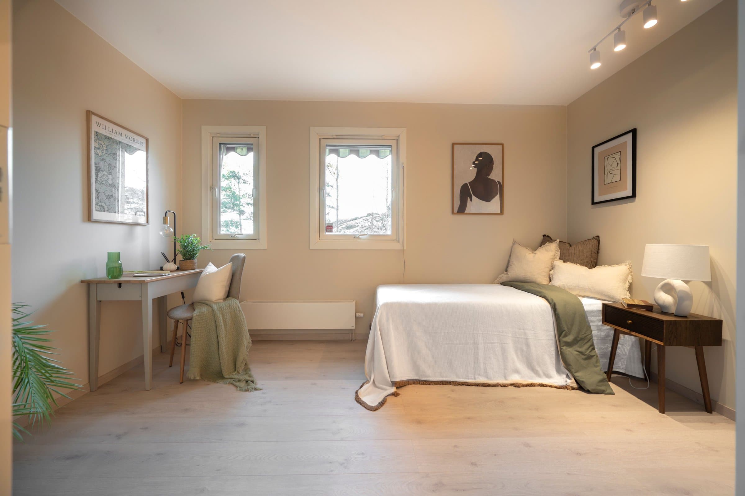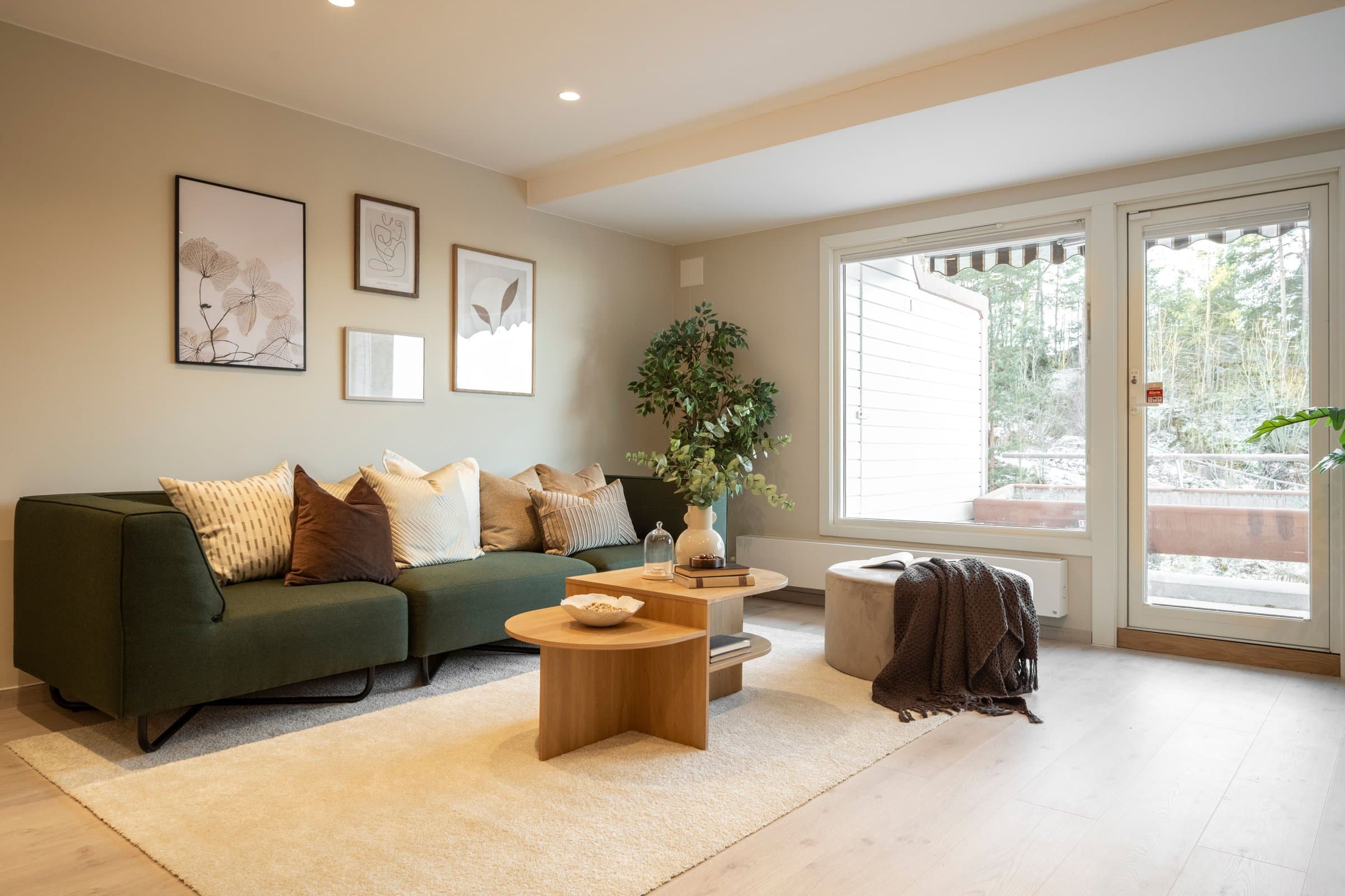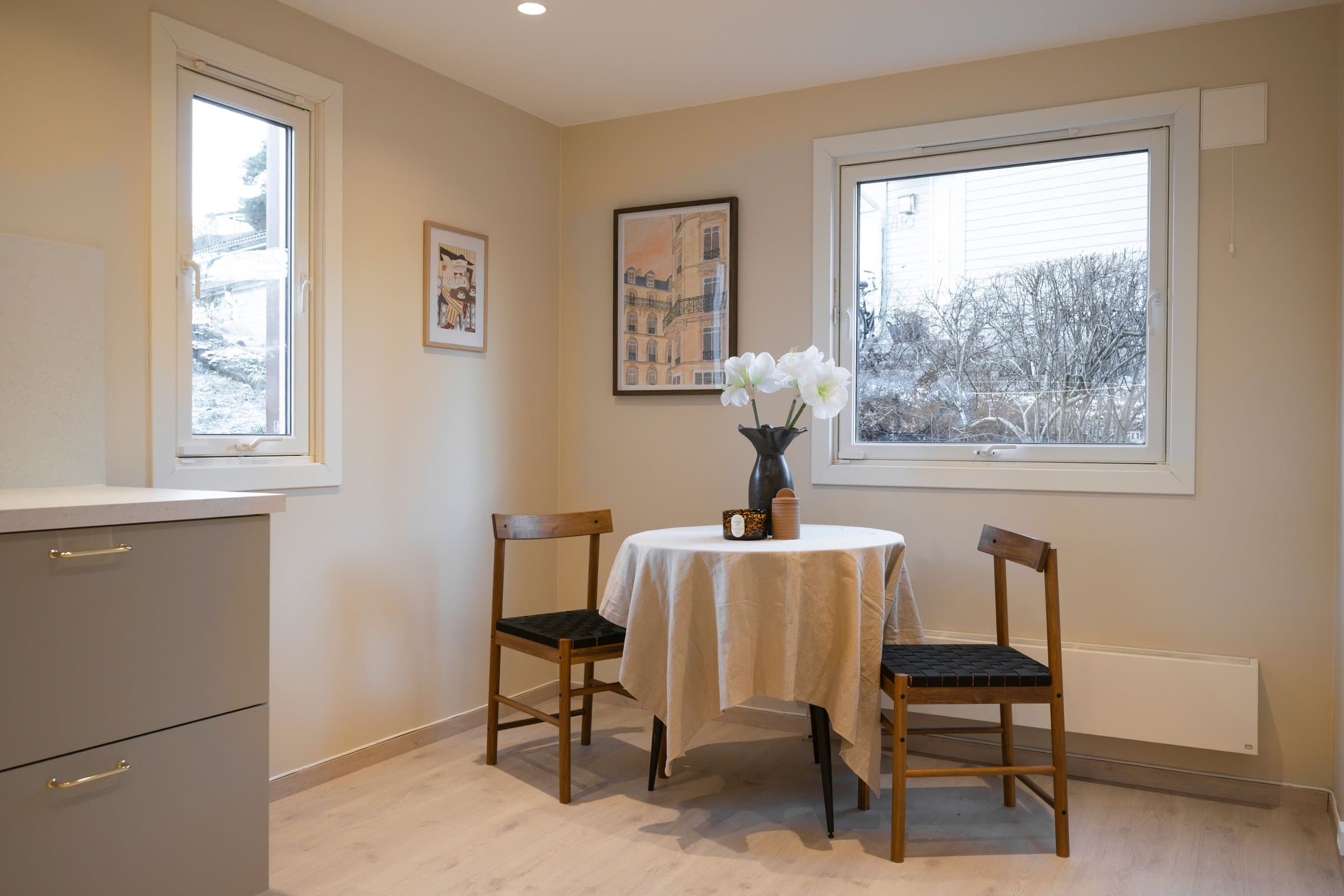 Nøkkelpunkter: - Totalrenovert i 2025 – nytt kjøkken - Bad fra 2025 – stort, lekkert og med dokumentasjon - Praktisk trappefri adkomst – ideelt både for barnefamilier og for dem som ønsker en lettvint hverdag uten trapper - Solrik balkong – perfekt for avslapning og sosiale stunder - Barnevennlig og populært borettslag med flotte fellesområder - Kort vei til strandperlen Hvervenbukta og Fiskevollbukta (10–15 minutters gange) - Lave strømutgifter - Ingen dokumentavgift – lave kjøpsomkostninger - Parkeringsplass i felles garasjer med mulighet for elbillader - Inkludert kabel-TV og bredbånd - Smarthus belysningskontroll fra Plejd Din nye bolig i Sloreåsen 39 C – innflyttingsklar og full av kvaliteter! Her får du en moderne, stilren og gjennomført 4-roms leilighet som er totaloppusset i 2025 – klar til å tas i bruk. Leiligheten har en stor, lys og romslig stue med direkte utgang til solrik vestvendt balkong, tre gode soverom og et lekkert kjøkken med god spiseplass. Alle overflater er nymalte i delikate farger, og det er lagt gulv som gir en lun og innbydende atmosfære. Denne boligen passer perfekt for deg som ønsker en lettstelt bolig av høy standard – uansett livsfase. Her får du god plass til å samle både barn og barnebarn, samtidig som du slipper bekymringer om vedlikehold og hagearbeid. Boligen ligger i et stille og barnevennlig område med kort vei til både skoler, barnehager, kollektivtransport og butikker. Her bor du med grønne omgivelser og populære Hvervenbukta og Fiskevollbukta kun en liten spasertur unna – perfekt for både hverdag og helg. Dette er et borettslag som appellerer til dem som ønsker en balanse mellom by og natur, med solide bomiljø og gode uteområder. Praktisk og økonomisk: innebod, garasjeplass med elbillademulighet og et hjem med lave strømutgifter Grip muligheten – her er det bare å flytte rett inn! Ta kontakt for visning i dag!