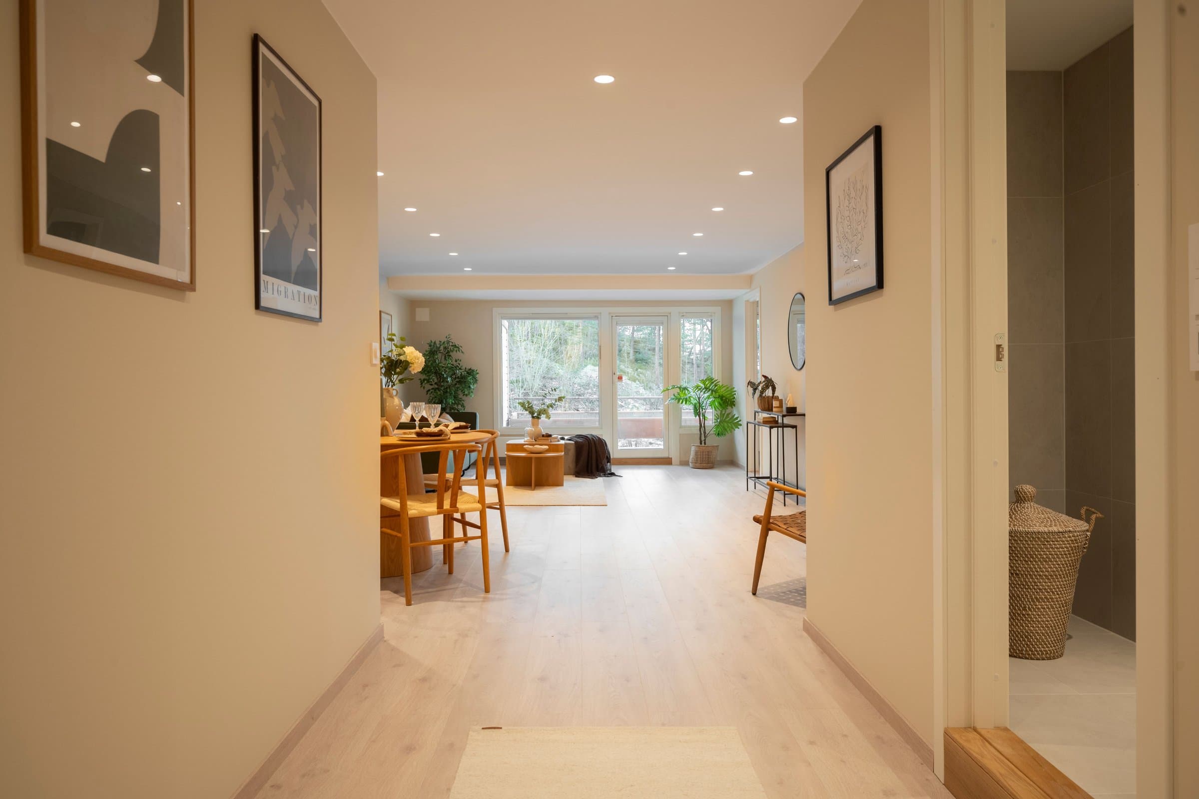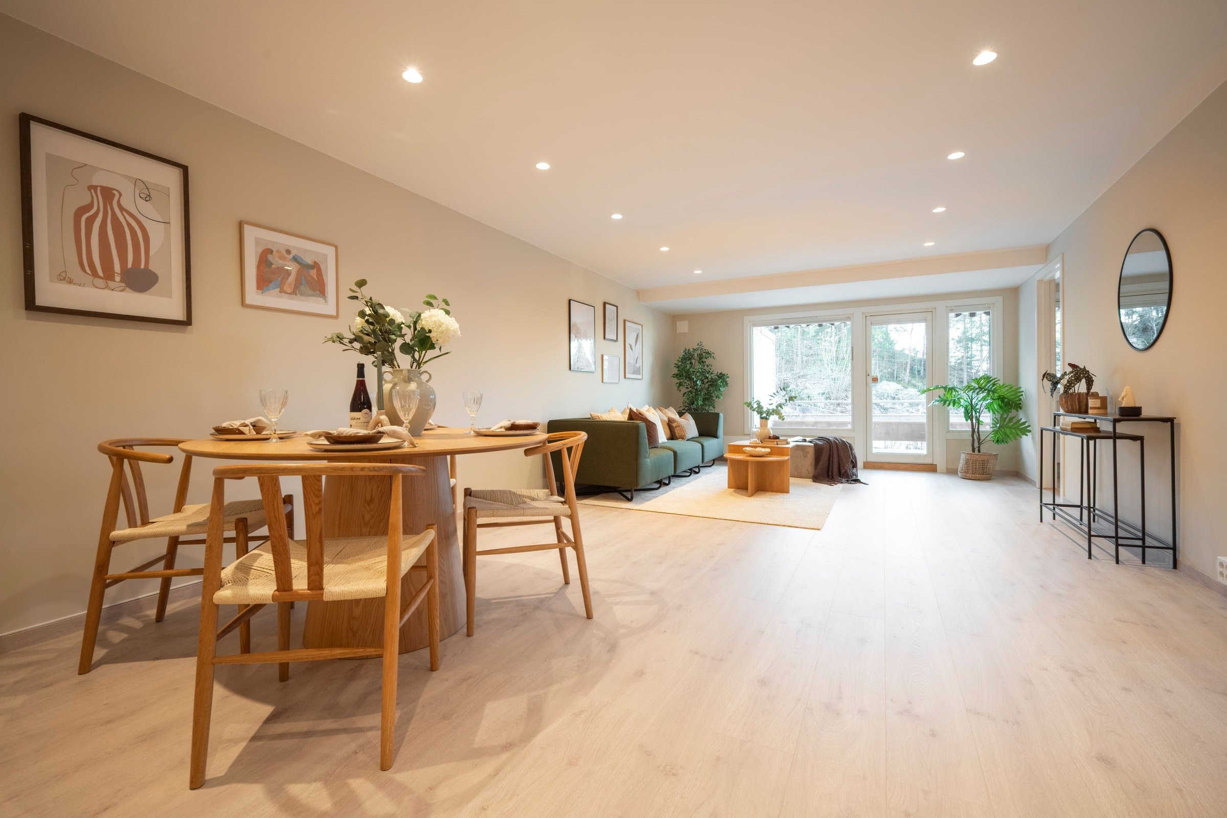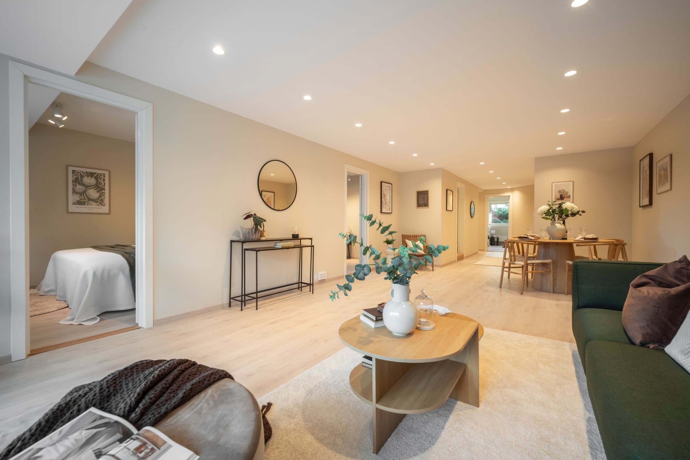 Nøkkelpunkter: - Totalrenovert i 2025 – nytt kjøkken - Bad fra 2025 – stort, lekkert og med dokumentasjon - Praktisk trappefri adkomst – ideelt både for barnefamilier og for dem som ønsker en lettvint hverdag uten trapper - Solrik balkong – perfekt for avslapning og sosiale stunder - Barnevennlig og populært borettslag med flotte fellesområder - Kort vei til strandperlen Hvervenbukta og Fiskevollbukta (10–15 minutters gange) - Lave strømutgifter - Ingen dokumentavgift – lave kjøpsomkostninger - Parkeringsplass i felles garasjer med mulighet for elbillader - Inkludert kabel-TV og bredbånd - Smarthus belysningskontroll fra Plejd Din nye bolig i Sloreåsen 39 C – innflyttingsklar og full av kvaliteter! Her får du en moderne, stilren og gjennomført 4-roms leilighet som er totaloppusset i 2025 – klar til å tas i bruk. Leiligheten har en stor, lys og romslig stue med direkte utgang til solrik vestvendt balkong, tre gode soverom og et lekkert kjøkken med god spiseplass. Alle overflater er nymalte i delikate farger, og det er lagt gulv som gir en lun og innbydende atmosfære. Denne boligen passer perfekt for deg som ønsker en lettstelt bolig av høy standard – uansett livsfase. Her får du god plass til å samle både barn og barnebarn, samtidig som du slipper bekymringer om vedlikehold og hagearbeid. Boligen ligger i et stille og barnevennlig område med kort vei til både skoler, barnehager, kollektivtransport og butikker. Her bor du med grønne omgivelser og populære Hvervenbukta og Fiskevollbukta kun en liten spasertur unna – perfekt for både hverdag og helg. Dette er et borettslag som appellerer til dem som ønsker en balanse mellom by og natur, med solide bomiljø og gode uteområder. Praktisk og økonomisk: innebod, garasjeplass med elbillademulighet og et hjem med lave strømutgifter Grip muligheten – her er det bare å flytte rett inn! Ta kontakt for visning i dag!