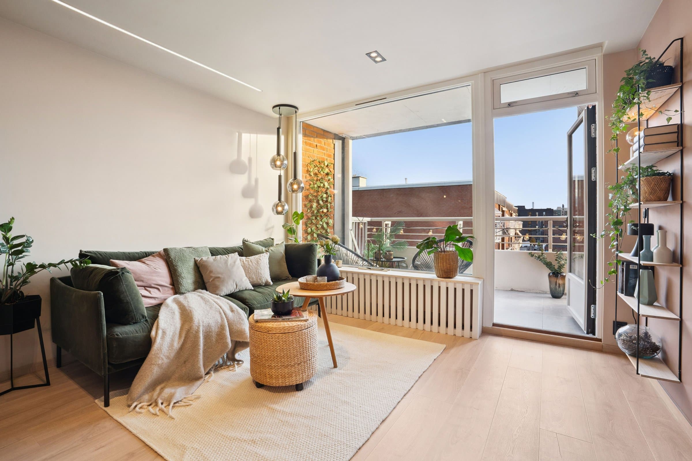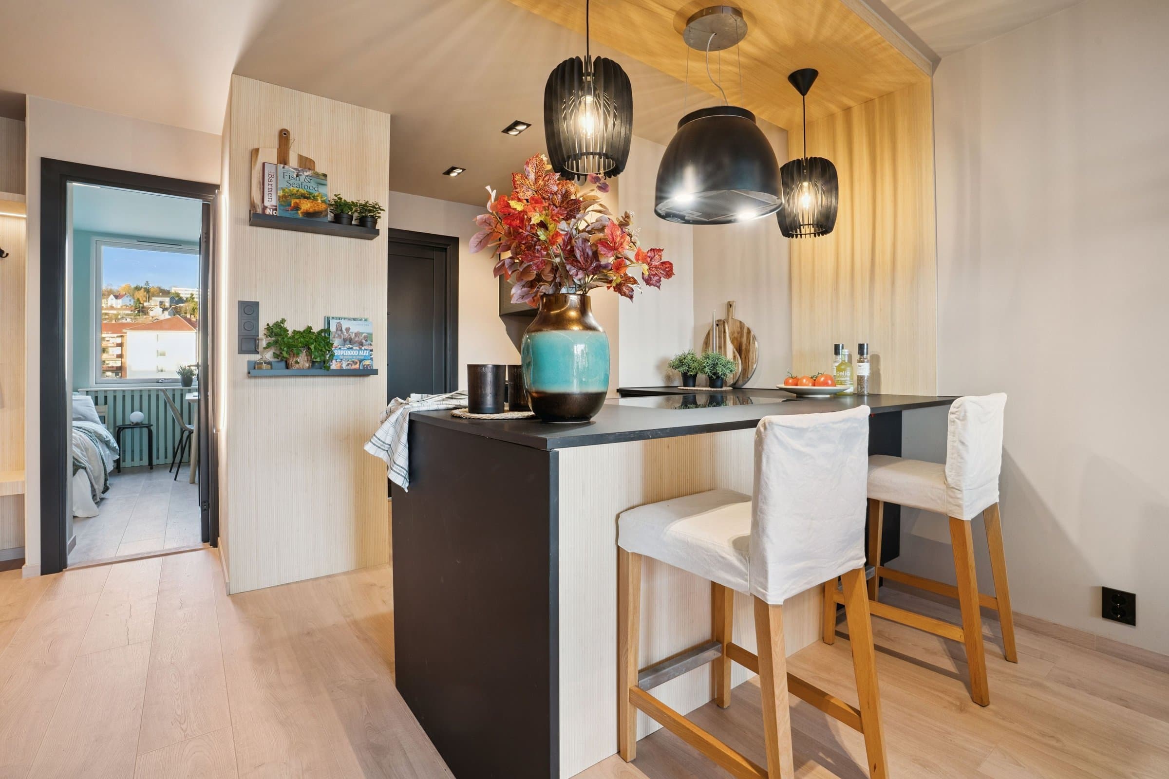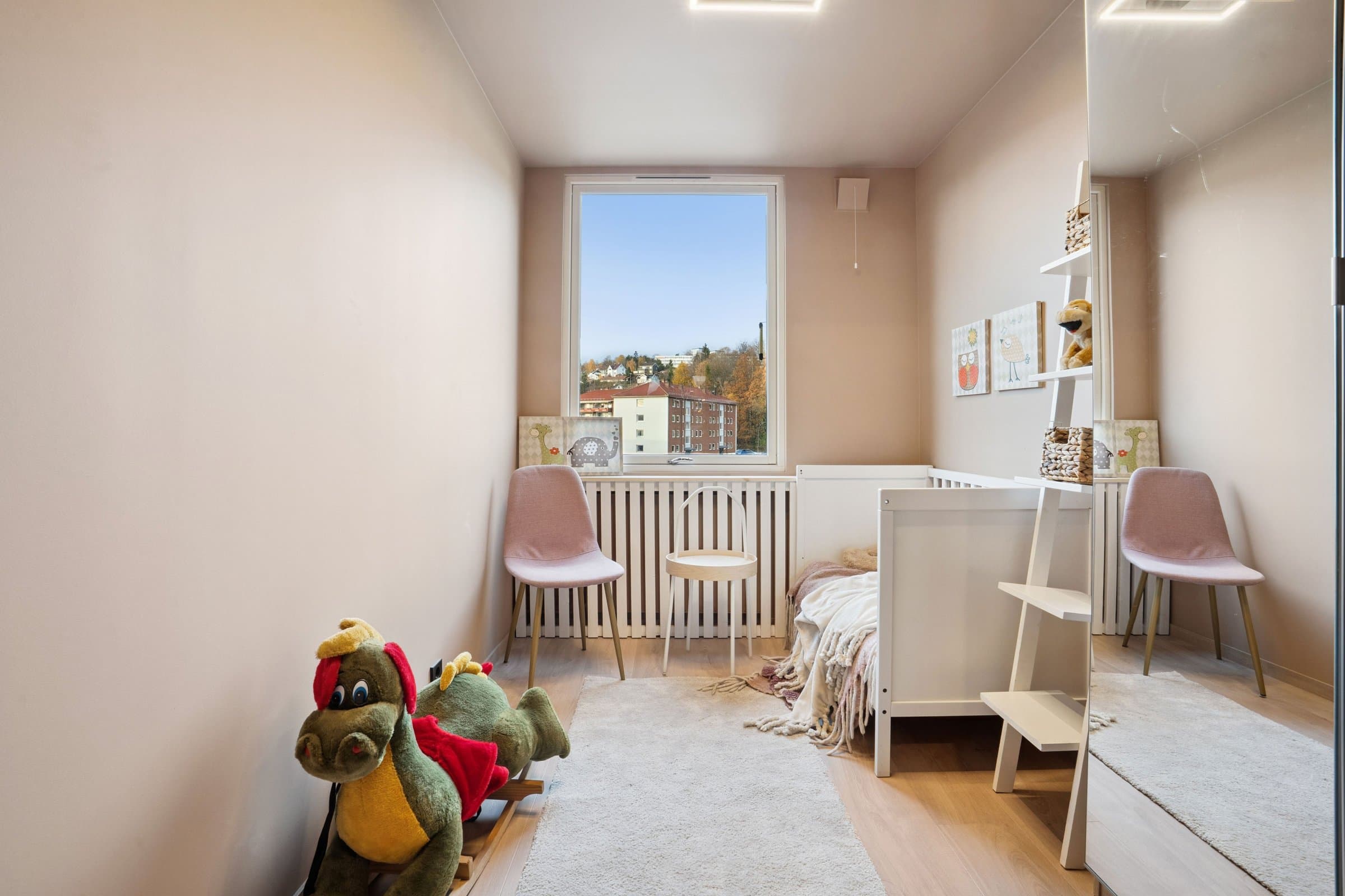 Lekker, stilsikker og gjennomgående 5-roms selveierleilighet. Totaloppusset i 2025. Ubebodd etter oppussing. Arealeffektiv og funksjonell. Perfekt til større barnefamilier/studenter. Flotte løsninger med utvidet bad. Åpen kjøkkenløsning med utgang til solrik balkong. Unike detaljer og materialvalg. * Lys og luftig toppleilighet i 4. etasje * Sydvendt balkong med gode solforhold * Romslig og flott stue * Flott kjøkken med bambusdetaljer * Alt av hvitevarer medfølger * Nytt og flott bad fra 2025 med plass til vaskemaskin/tørketrommel * Vann og fyring inkludert i fellesutgifter * Parkering på fellesområder, gjesteparkering, mulig å leie garasje * Kjellerbod