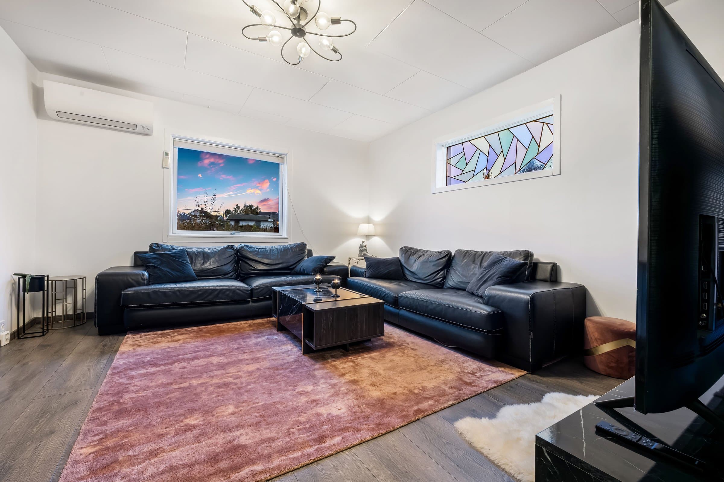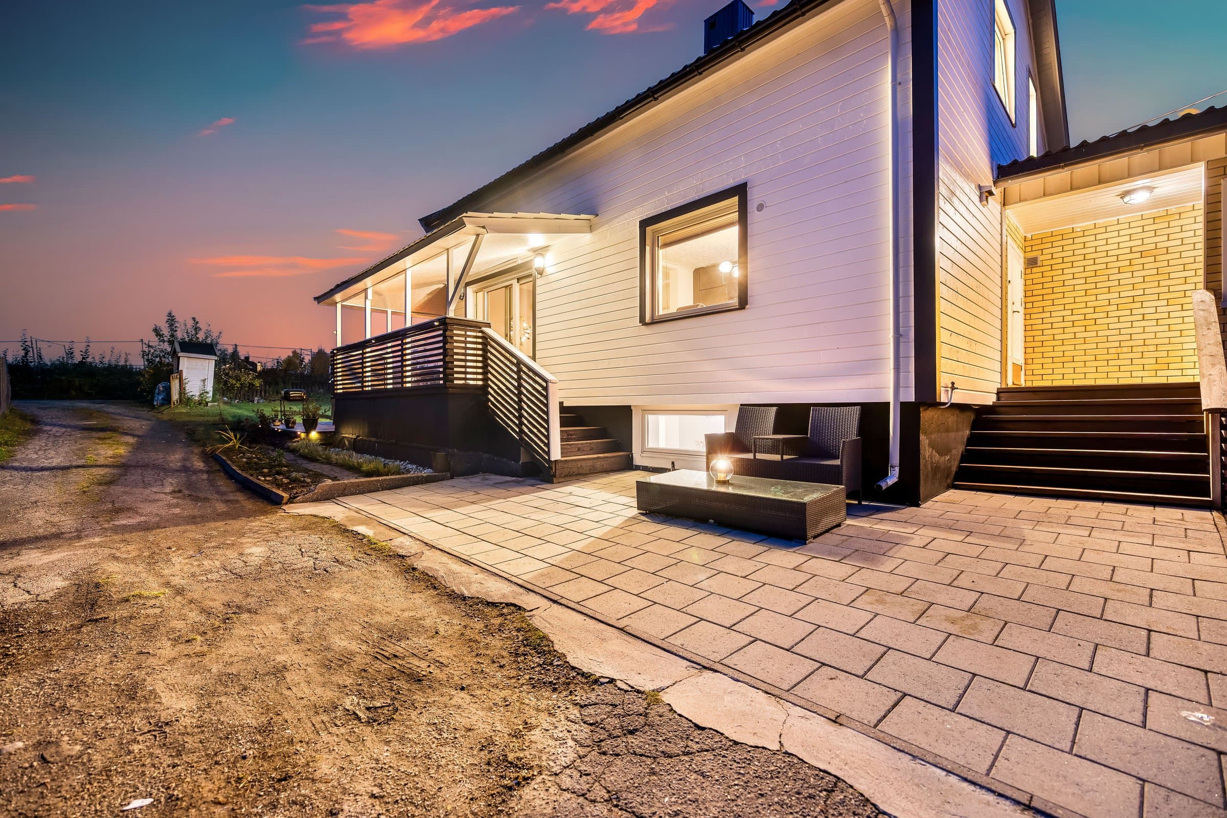 Velkommen til Martin Johansens vei 72A! Moderne og innholdsrik halvpart av tomannsbolig med solrik hage – attraktiv beliggenhet på Råholt Det er med stor glede vi presenterer Martin Johansens vei 72A – en smakfullt modernisert og svært tiltalende vertikaldelt tomannsbolig beliggende i et rolig, etablert og barnevennlig nabolag på populære Råholt. Her bor du i grønne omgivelser med kort vei til både natur og kollektivtransport, kun ca. 2,7 km fra Eidsvoll Verk stasjon – perfekt for pendlere med ca. 30 minutter til Oslo med tog. Boligen er opprinnelig fra 1954, men fremstår i dag som en oppgradert og moderne bolig med flere vesentlige oppgraderinger – blant annet et stilrent IKEA-kjøkken fra 2020, nyere bad, samt oppussede overflater som gir en gjennomgående lys og delikat atmosfære. Hovedpunkter: - Romslig og lys stue med utgang til solrik terrasse på ca. 11 kvm - Åpen og moderne kjøkkenløsning fra IKEA - To pene og oppgraderte baderom - 3 soverom med god størrelse - Fullt innredet og anvendelig kjelleretasje på ca. 68 kvm BRA (2020) – Perfekt som ekstra oppholdsrom, hjemmekontor eller hobbyrom Stor, seksjonert hage med gode solforhold – ideell for både lek og sosiale sammenkomster Med kort vei til skole, barnehager, dagligvare og flotte turområder, samt enkel adkomst til buss og tog, er dette en bolig som passer perfekt for både unge par, småbarnsfamilier og pendlere. Dette er en sjelden mulighet til å sikre seg en moderne, innflyttingsklar bolig i et populært og voksende boligområde – velkommen hjem til en visning!