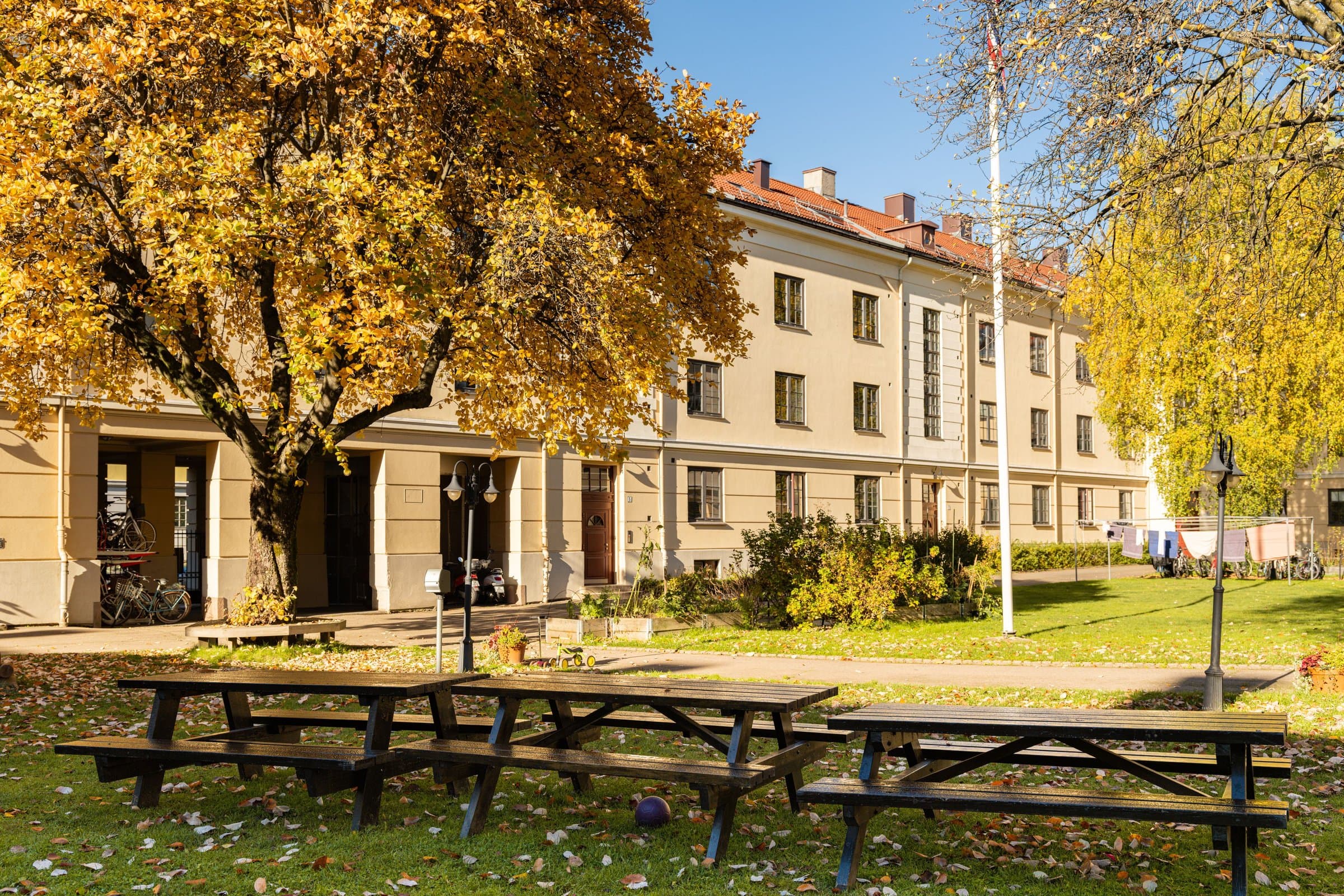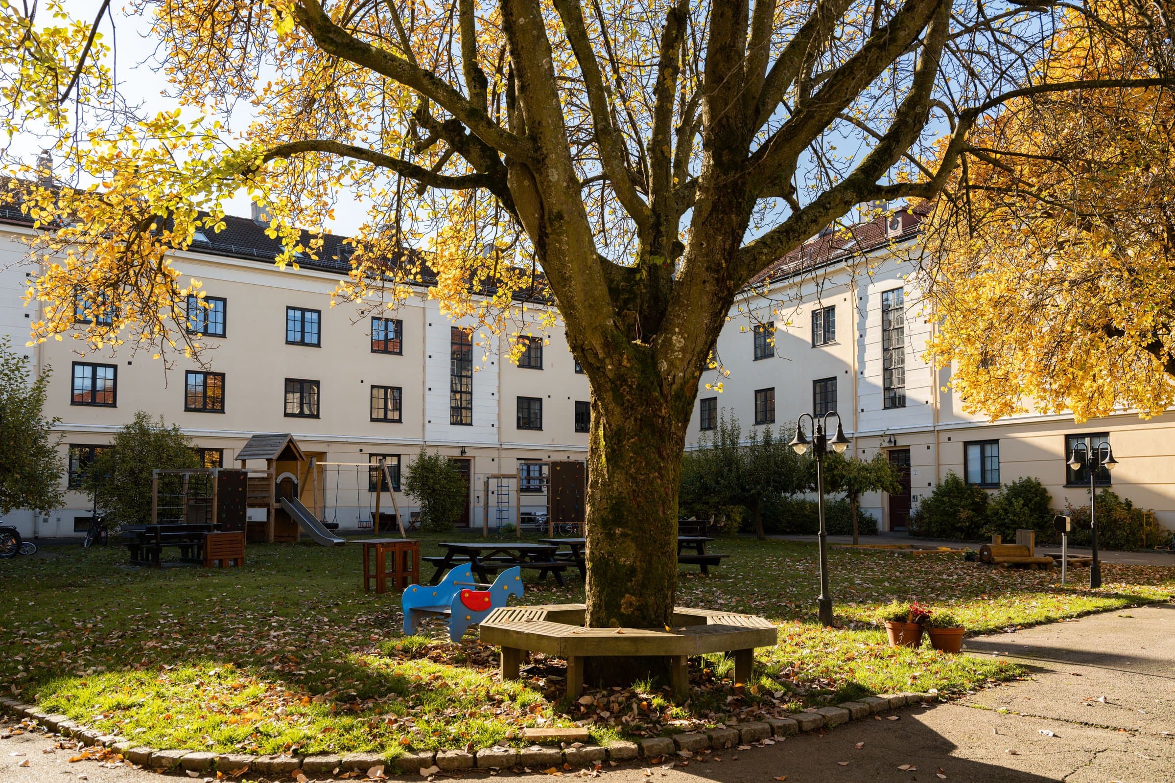 Leiligheten har en ettertraktet og rolig beliggenhet i vakre Søylegården, øverst på Torshov. Dette er et populært område som kombinerer urbant byliv og grønne omgivelser. Her bor man tilbaketrukket fra trafikk og støy, men med kort vei til alt man trenger i hverdagen. Området er kjent for sine mange og frodige parker – blant annet Torshovparken, Torshovdalen og den hyggelige Torshov kirkepark – alle innen få minutters gange. For den som liker turer og friluftsliv, er det kort vei til Akerselva med sine idylliske turstier, kulturminner og spennende innslag av byens industrihistorie. Søylegården byr i tillegg på et stort, velholdt og solrikt gårdsrom. Her finner man sittegrupper, kullgrill, en vedfyrt pizzaovn og lekeplass – et perfekt sted å nyte rolige dager for både store og små. Kiwi, Rema 1000, søndagsåpen Joker i Brettevilles gate og Coop Mega på Sandaker Senter er få minutter unna. Rett over gaten ligger populære Åpent Bakeri, som på kveldstid blir til Lofthus Samvirkelag – kjent for å ha en av byens beste pizzaer. Rett ved Lillo Gård ligger et trivelig nærsenter med blant annet Kompis, Albertino Sandwich, Meny, Mester Grønn og apotek. Torshov byr også på et rikt kulturtilbud med blant annet Torshovteatret, Nieu Scene (Soria Moria) og Trikkestallen med teater, konserter og uteservering om sommeren. Området har gode kollektivforbindelser. Trikkelinjene 12, 15 og 18 går fra Grefsenveien, kun få minutters gange fra leiligheten, og T-banelinje 4 og 5 fra Sinsen stasjon. Buss nr. 30 går like ved, og Grefsen togstasjon gir enkel adkomst til sentrum og marka. For den som reiser mye, stopper Flybussen på Grefsen stasjon/Storokrysset – kun 8–10 minutters gange fra boligen.