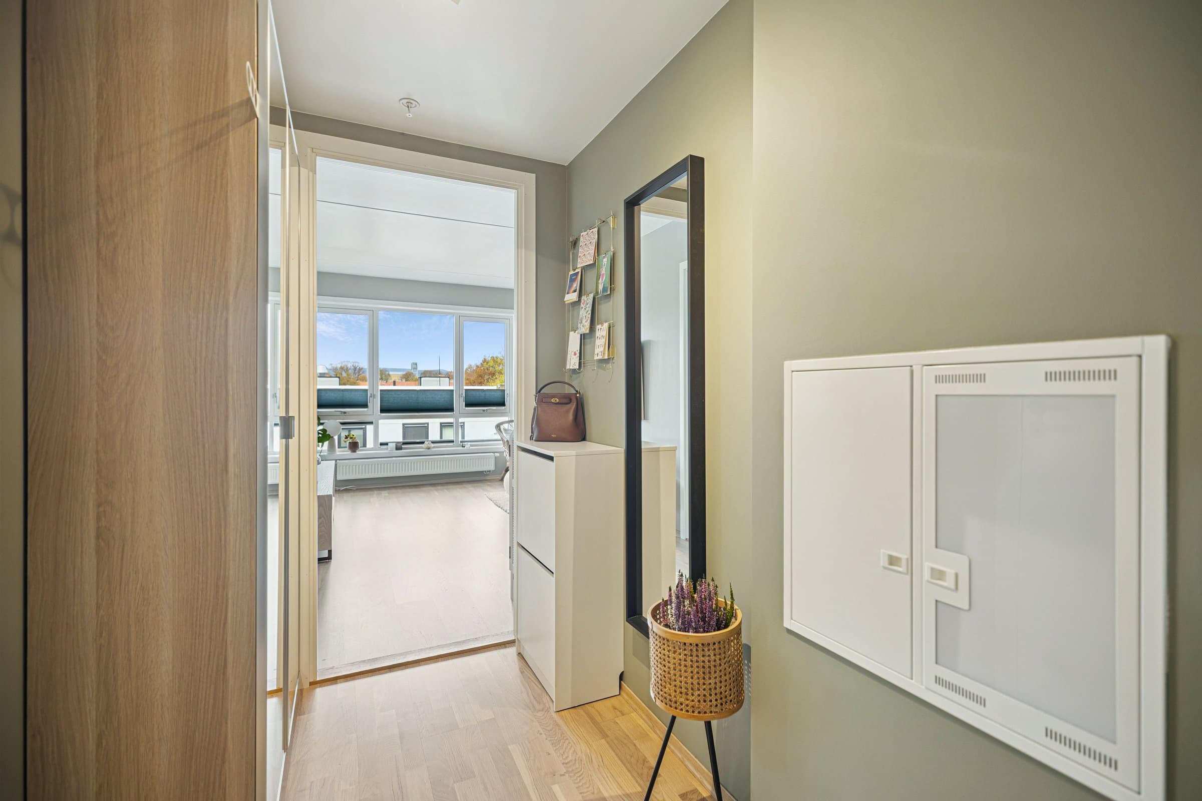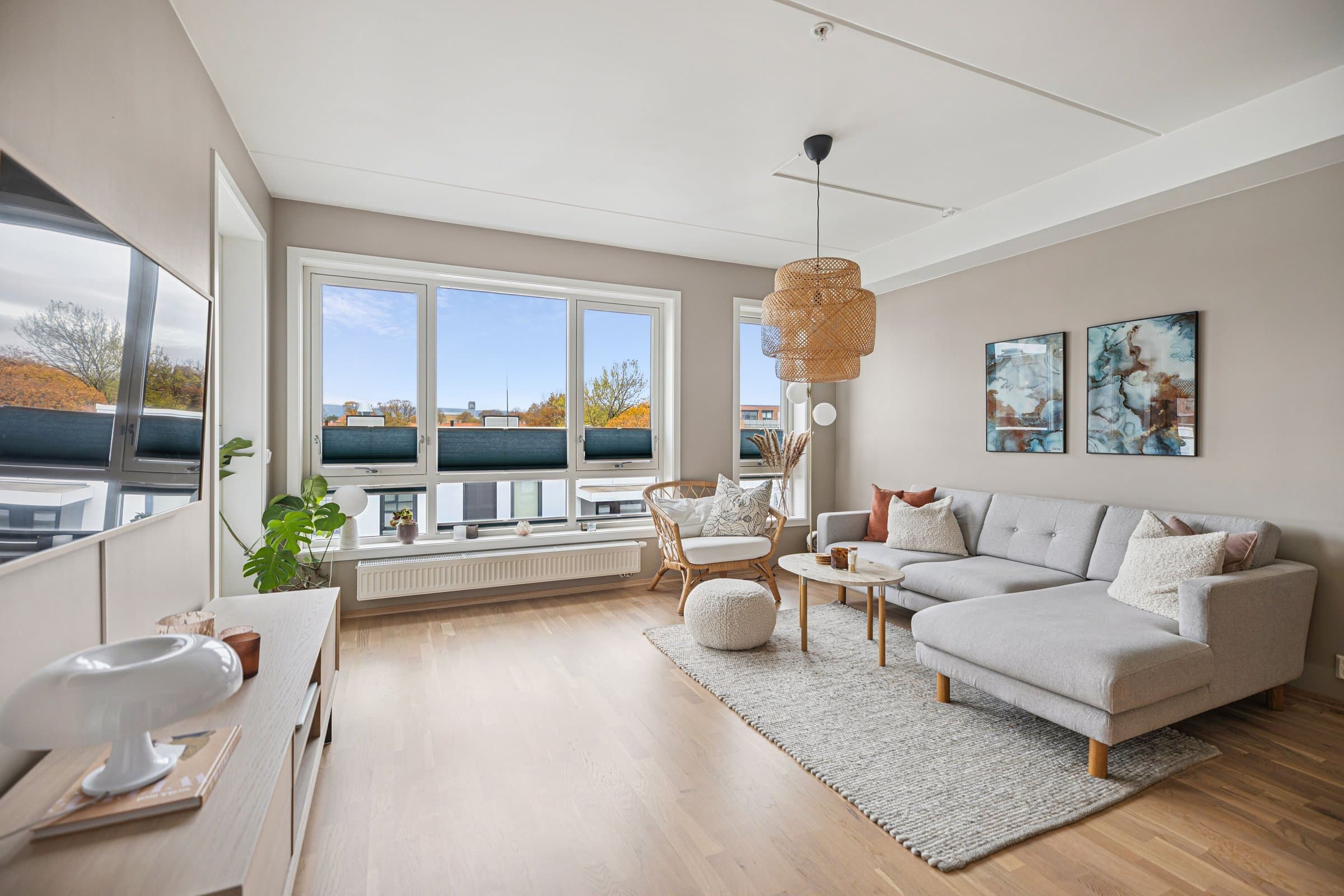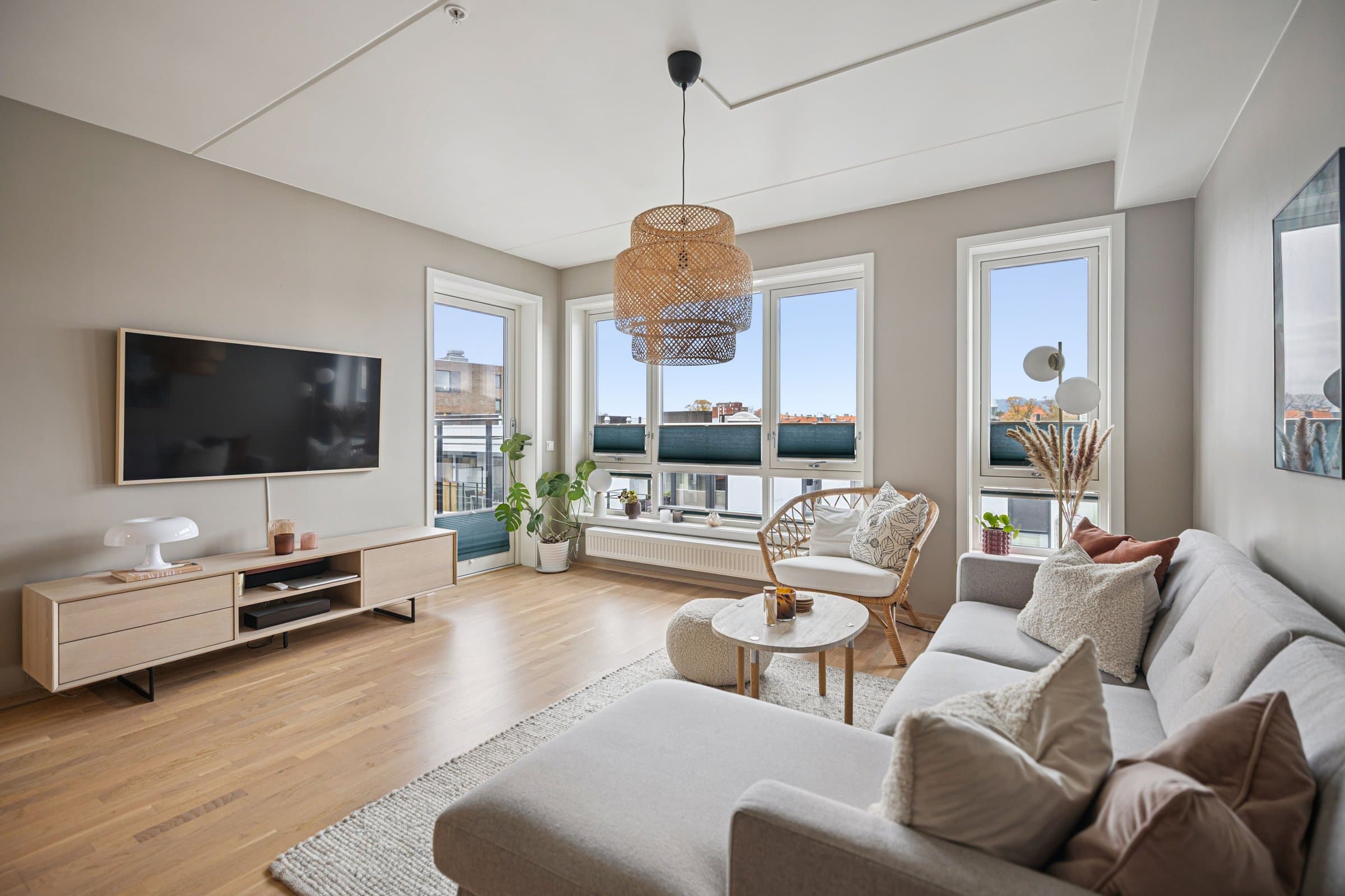 Lys og moderne 2-roms toppleilighet, med vestvendt balkong. God planløsning og lave felleskostnader - fyring og vv inkl.