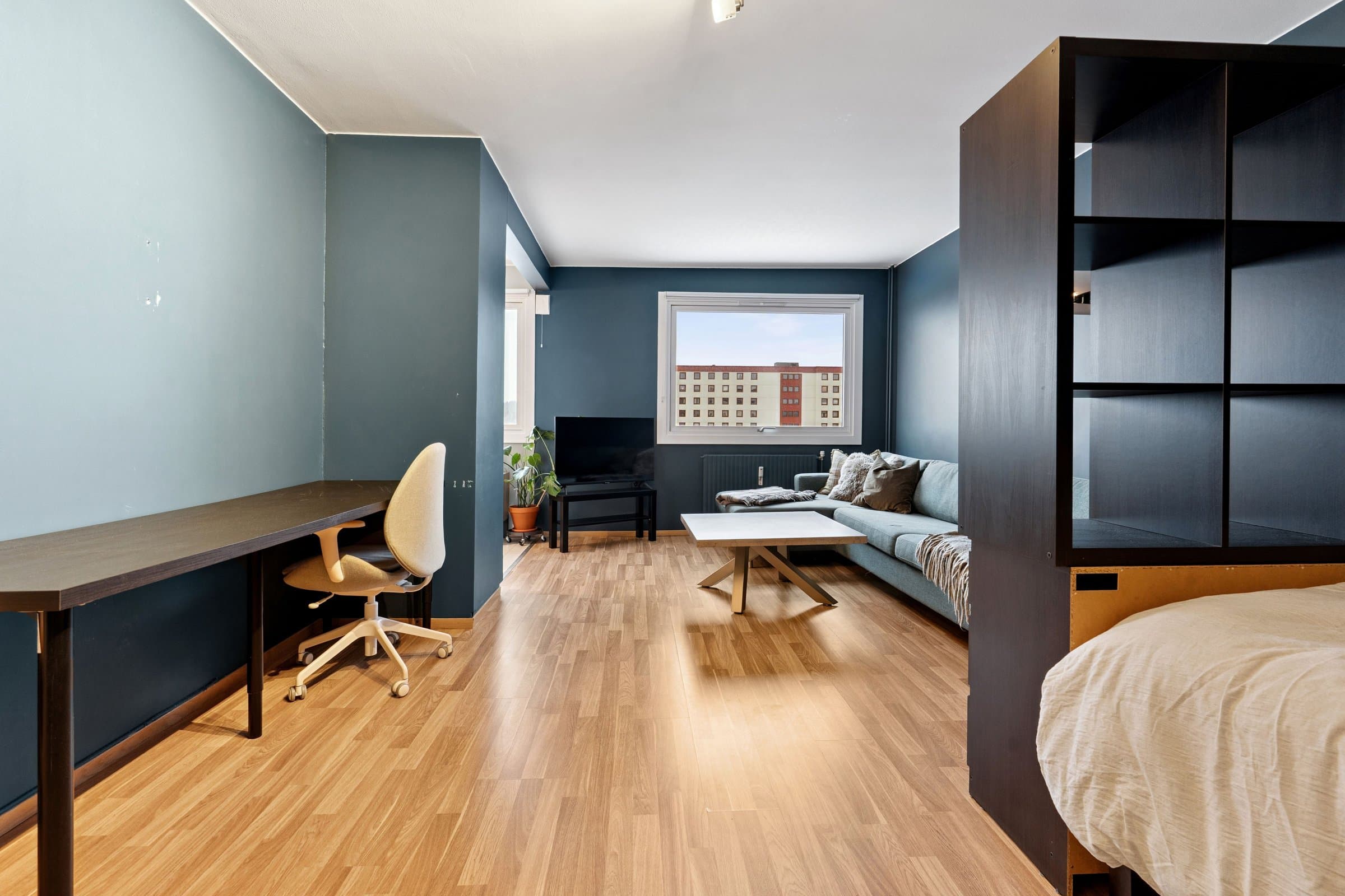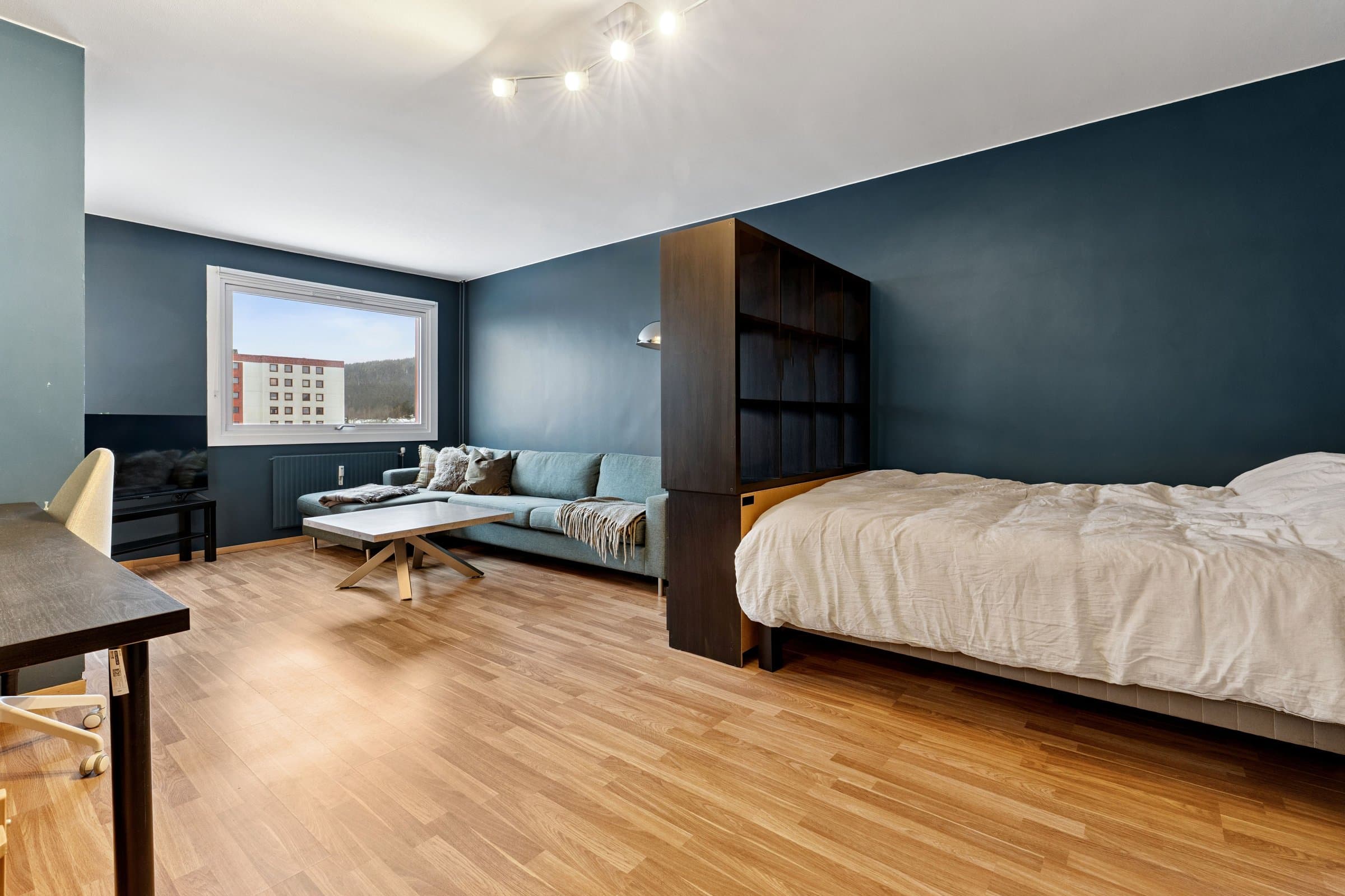 Velkommen til en arealeffektiv og hyggelig 1-roms leilighet på 39 kvm, beliggende i 8. etasje i et veldrevet borettslag på Kalbakken. Leiligheten passer perfekt for førstegangskjøpere, studenter eller enslige som ønsker en lettstelt bolig med sentral beliggenhet og gode kollektivforbindelser. Boligen fremstår som delvis oppusset, med nyoppusset bad i moderne utførelse. Leiligheten har en smart planløsning med plass til både sone for sofa, seng og spisebord. Store vindusflater gir rikelig med lys og en fin utsikt mot Oslo sentrum. Det er heis i bygget, og det er mulighet for å leie parkeringsplass eller garasje.