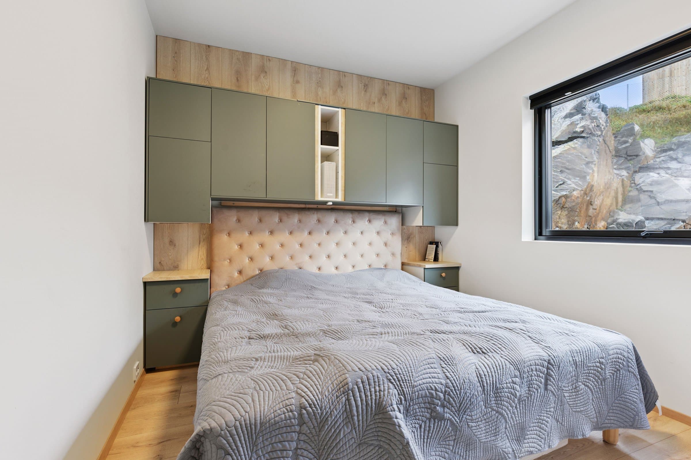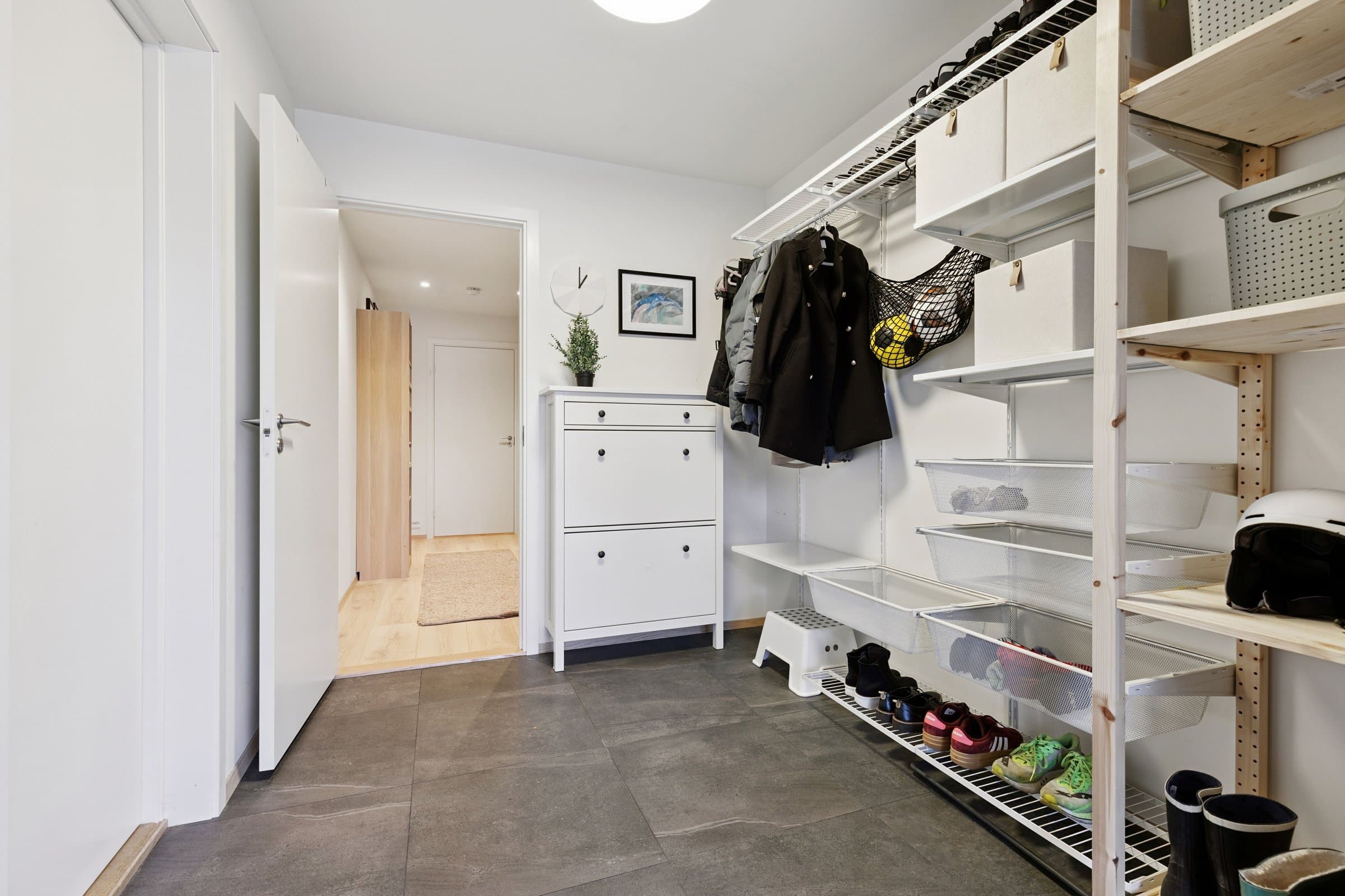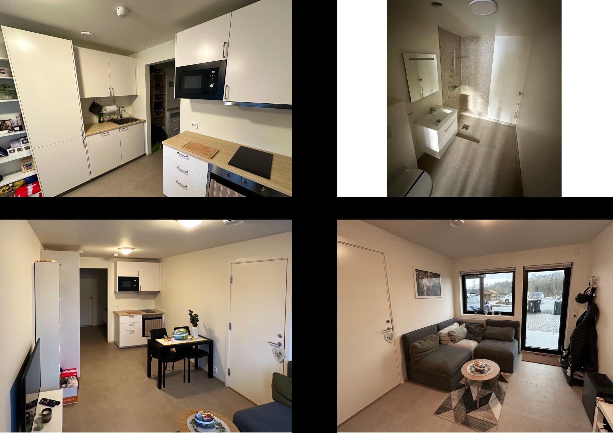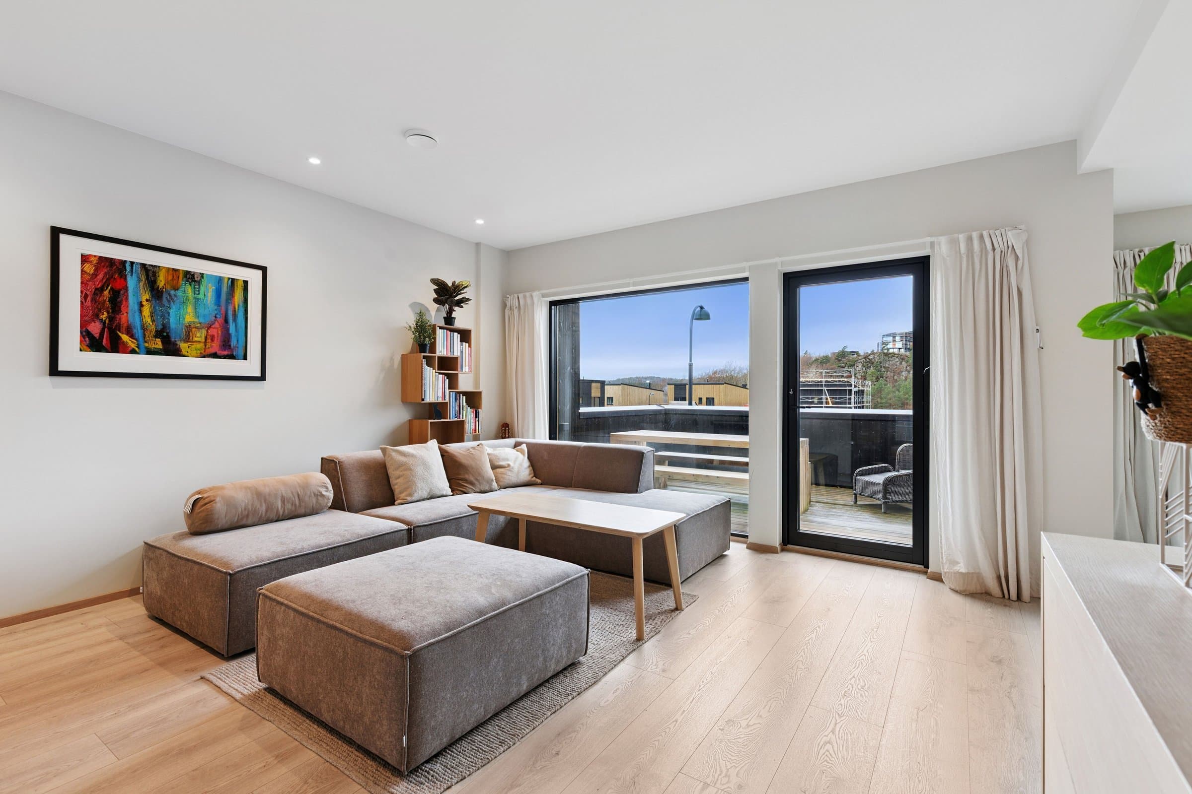 Moderne enderekkehus på 200 m² over tre etasjer, ferdigstilt i august 2024 av Roger Aamodt AS. Boligen har fire soverom i hoveddelen, med mulighet for et femte, to balkonger og en praktisk hybel på 27 m² med eget kjøkken, bad og alkove. Lys og åpen planløsning med peis (Contura 810) og diskre varmepumpe i midtetasjen. Boligen har eikelaminat på gulvene, fliser i bad og entré, og varmekabler i underetasjen og hybelen. Trappen mellom etasjene er laget i eik med tette trinn – ideell for småbarnslivet. Huset er kledd i sort, royalimpregnert kledning, med sort papptak og matchende takrenner. Carport for to biler med elbillader, i tillegg til gjesteparkeringsplass rett utenfor hybelen. Uteområdet består av to nivåer: plen på bakkenivå, perfekt for lek og aktivitet, og en bakhage på nivå med midtetasjen med belegningsstein.