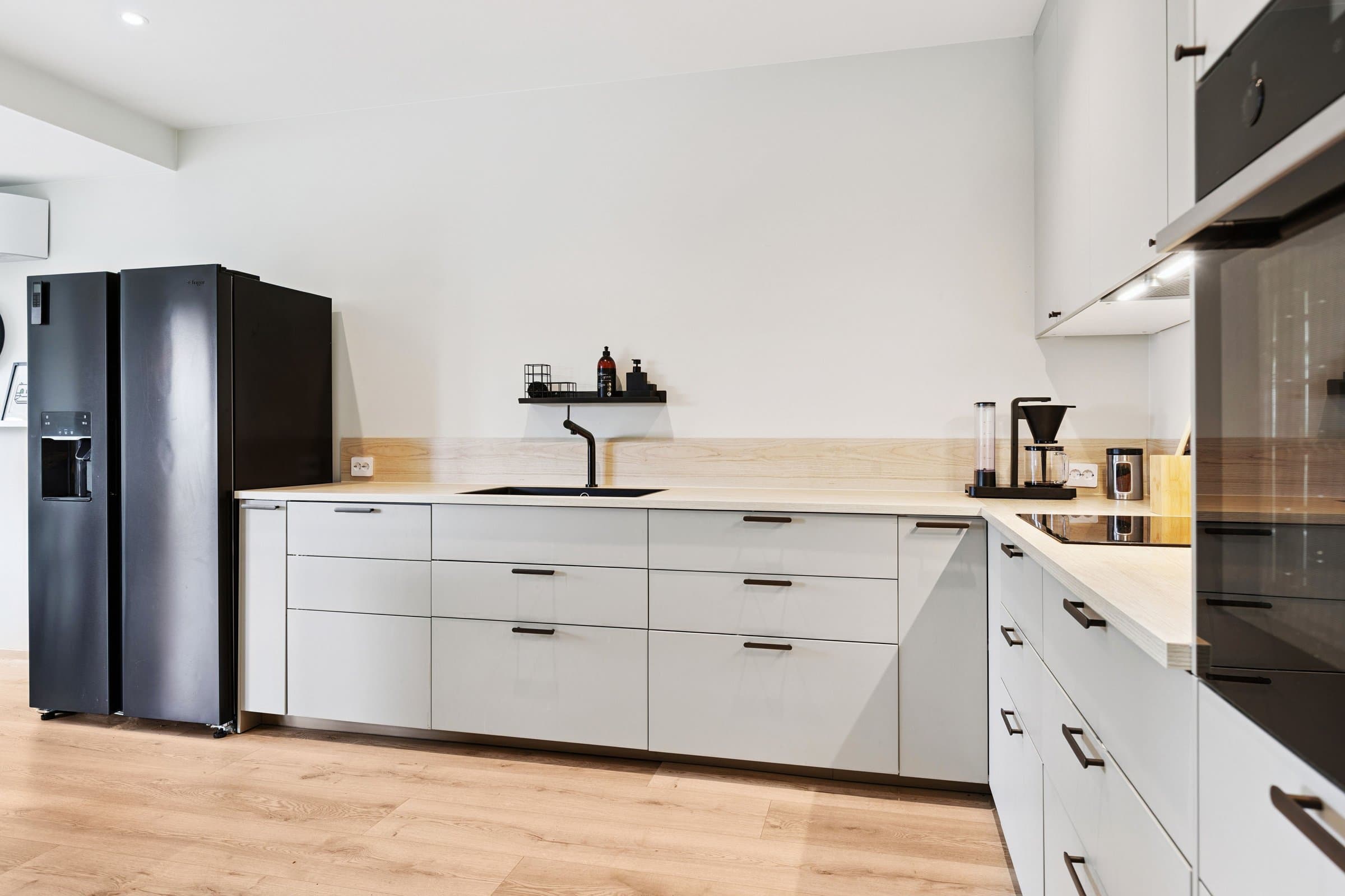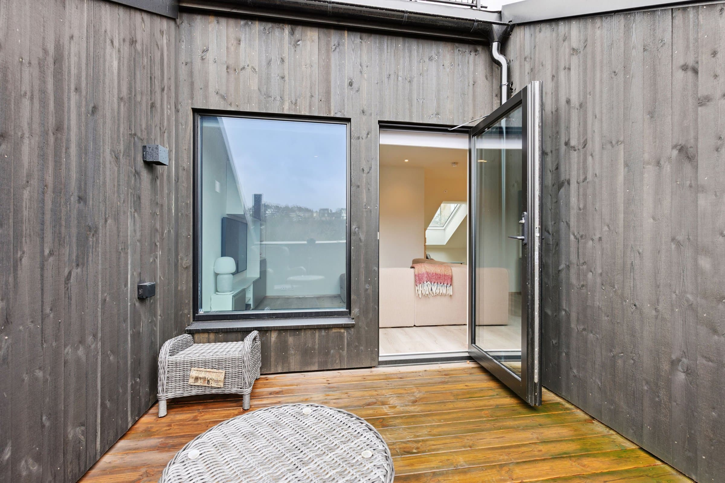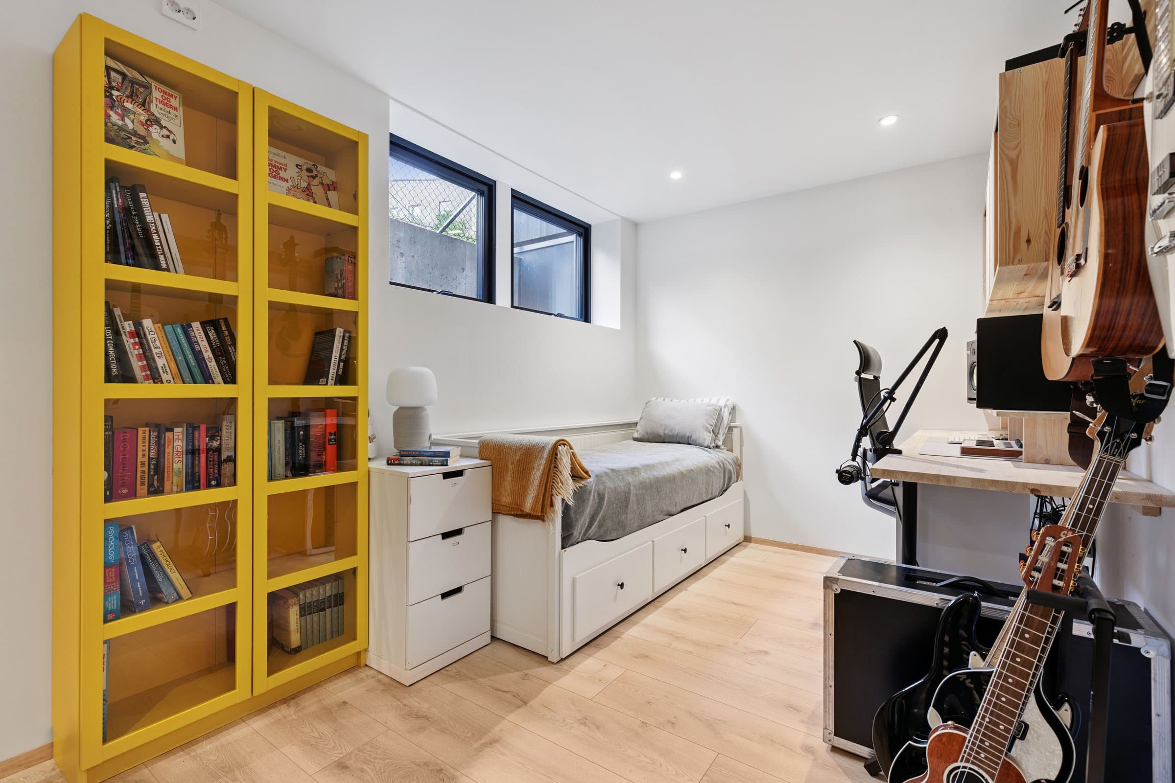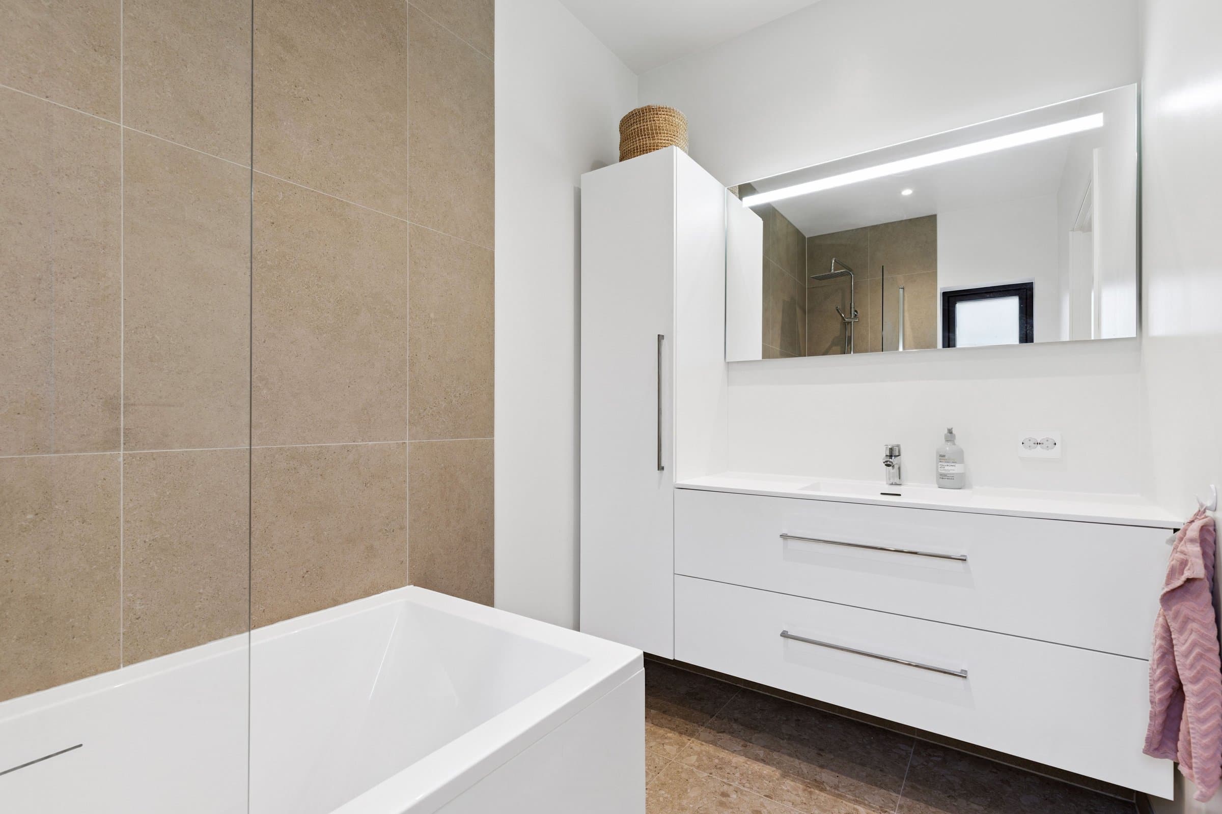 Moderne enderekkehus på 200 m² over tre etasjer, ferdigstilt i august 2024 av Roger Aamodt AS. Boligen har fire soverom i hoveddelen, med mulighet for et femte, to balkonger og en praktisk hybel på 27 m² med eget kjøkken, bad og alkove. Lys og åpen planløsning med peis (Contura 810) og diskre varmepumpe i midtetasjen. Boligen har eikelaminat på gulvene, fliser i bad og entré, og varmekabler i underetasjen og hybelen. Trappen mellom etasjene er laget i eik med tette trinn – ideell for småbarnslivet. Huset er kledd i sort, royalimpregnert kledning, med sort papptak og matchende takrenner. Carport for to biler med elbillader, i tillegg til gjesteparkeringsplass rett utenfor hybelen. Uteområdet består av to nivåer: plen på bakkenivå, perfekt for lek og aktivitet, og en bakhage på nivå med midtetasjen med belegningsstein.