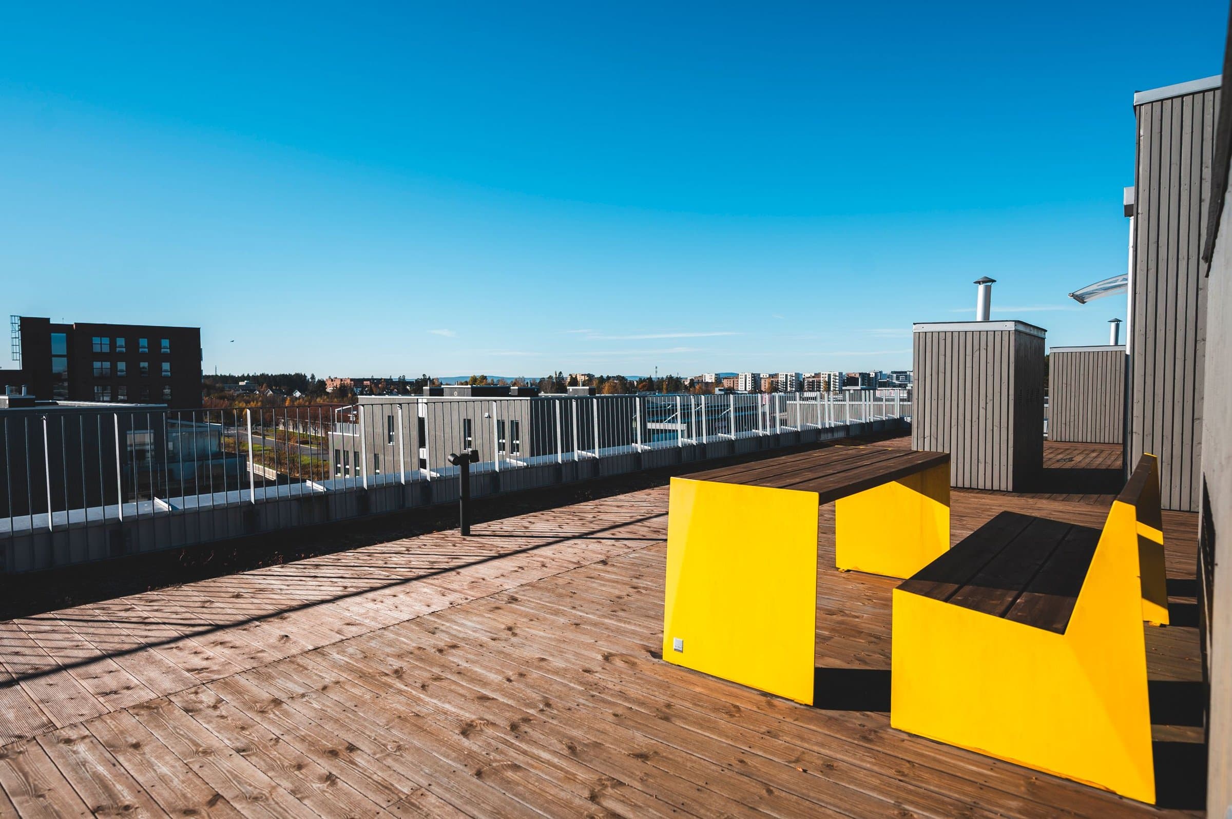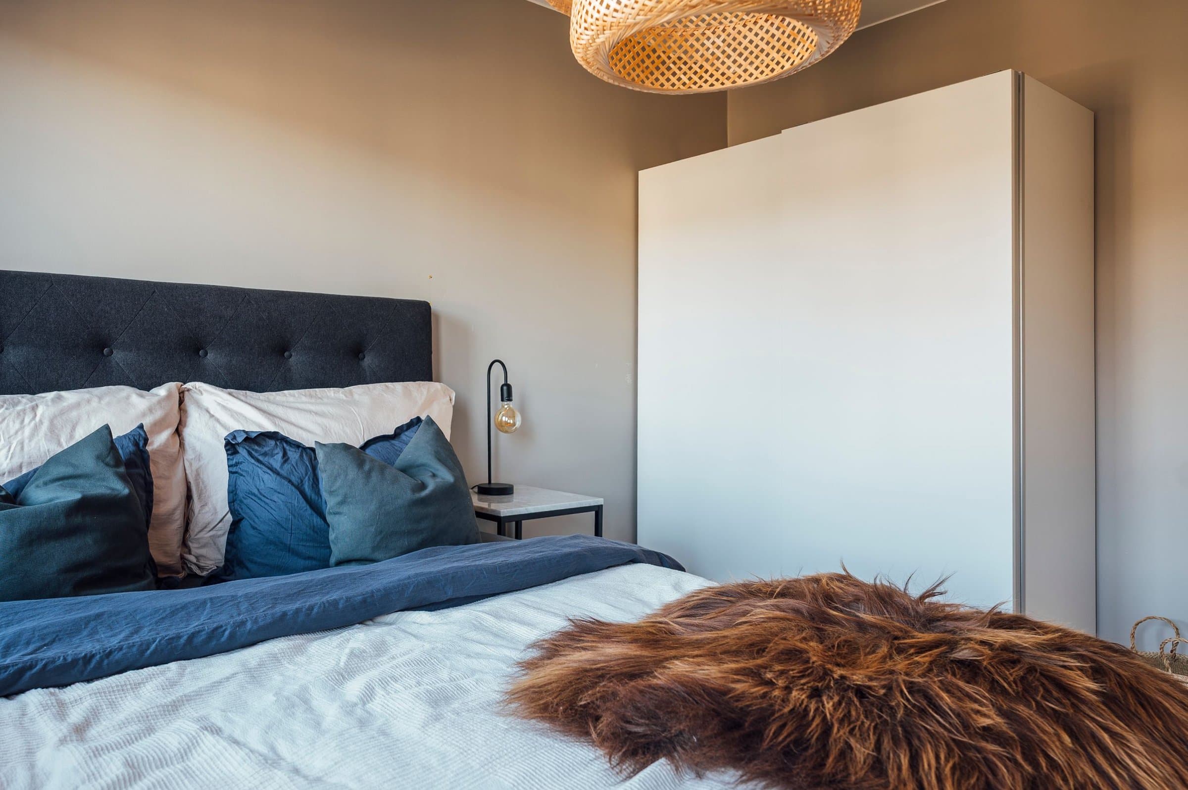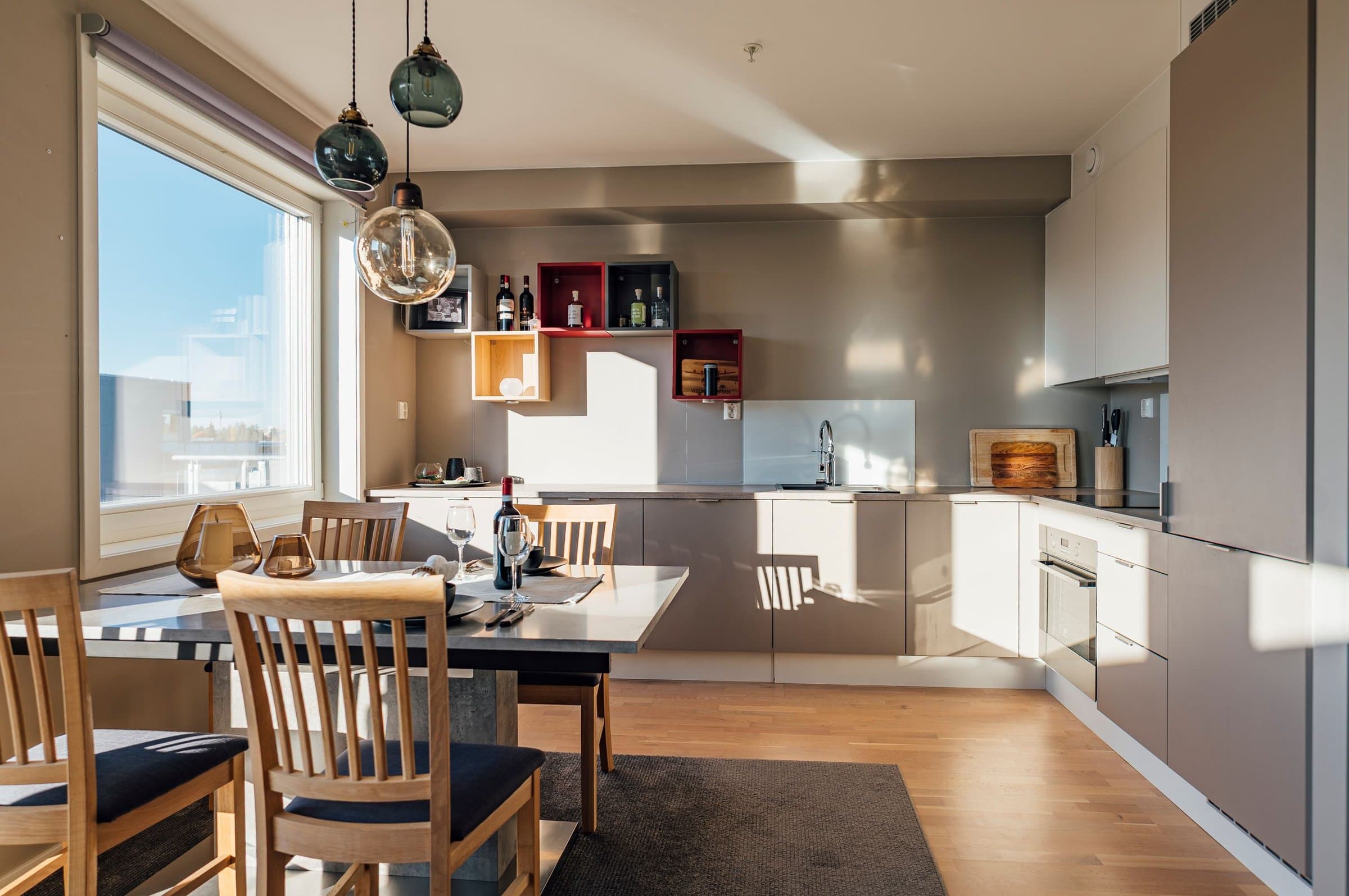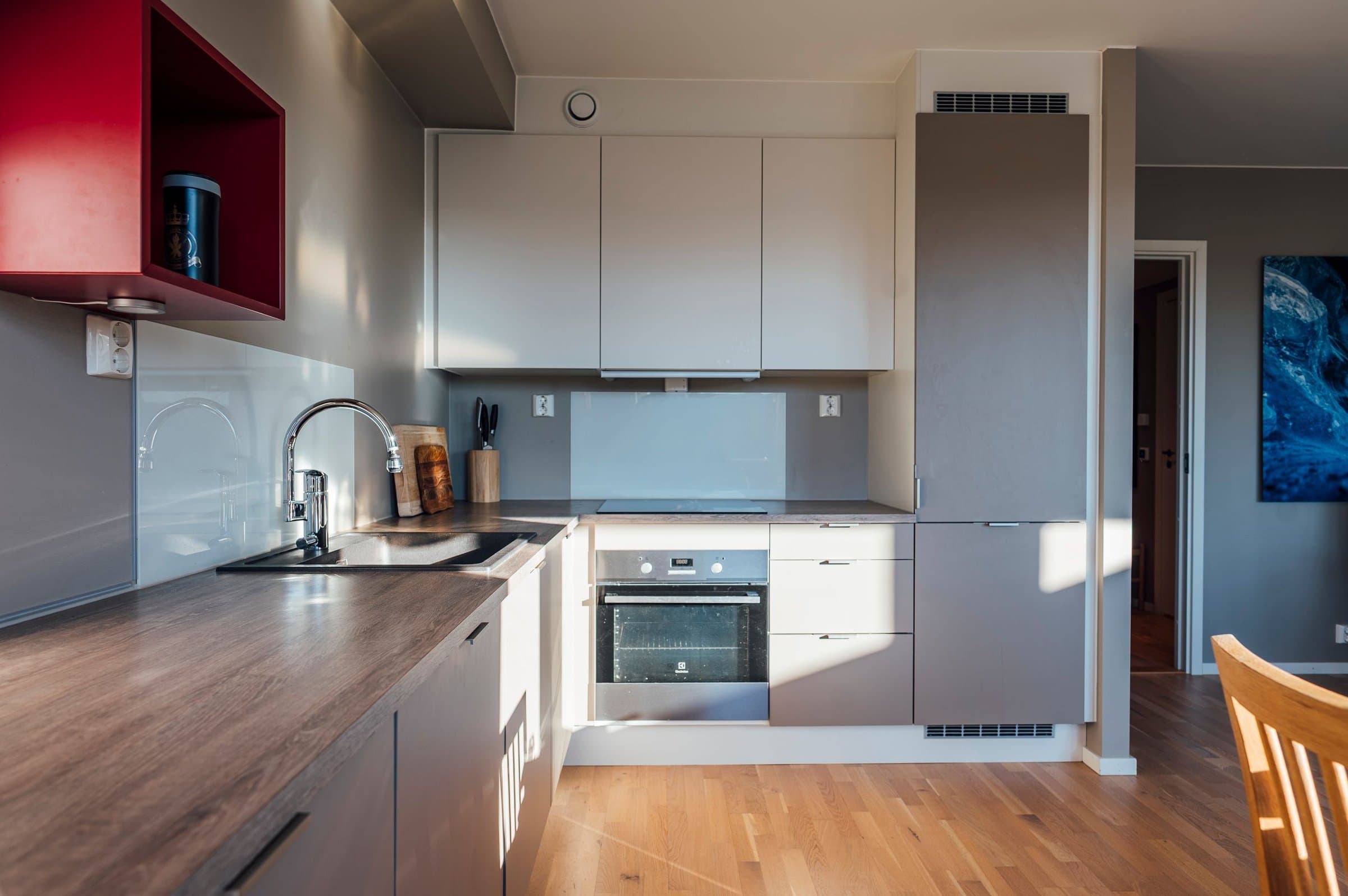 Pen 2-roms toppleilighet i 4. etasje fra 2018 med sørvendt balkong og ekstremt gode solforhold fra morgen til kveld! Store vinduer i kjøkken og stue som gir godt med naturlig lys. Leiligheten er utstyrt med solskjerming på alle vinduer i stue/kjøkken og markise på balkongen - styres med fjernkontroll. Kjøkkenet har god benkeplass og integrert kjøleskap, fryser og komfyr. Soverommet har god plass til dobbeltseng og klesskap. 2 boder leiligheten, derav 1 som i dag brukes som kontor. 1 ekstra bod i kjelleren.