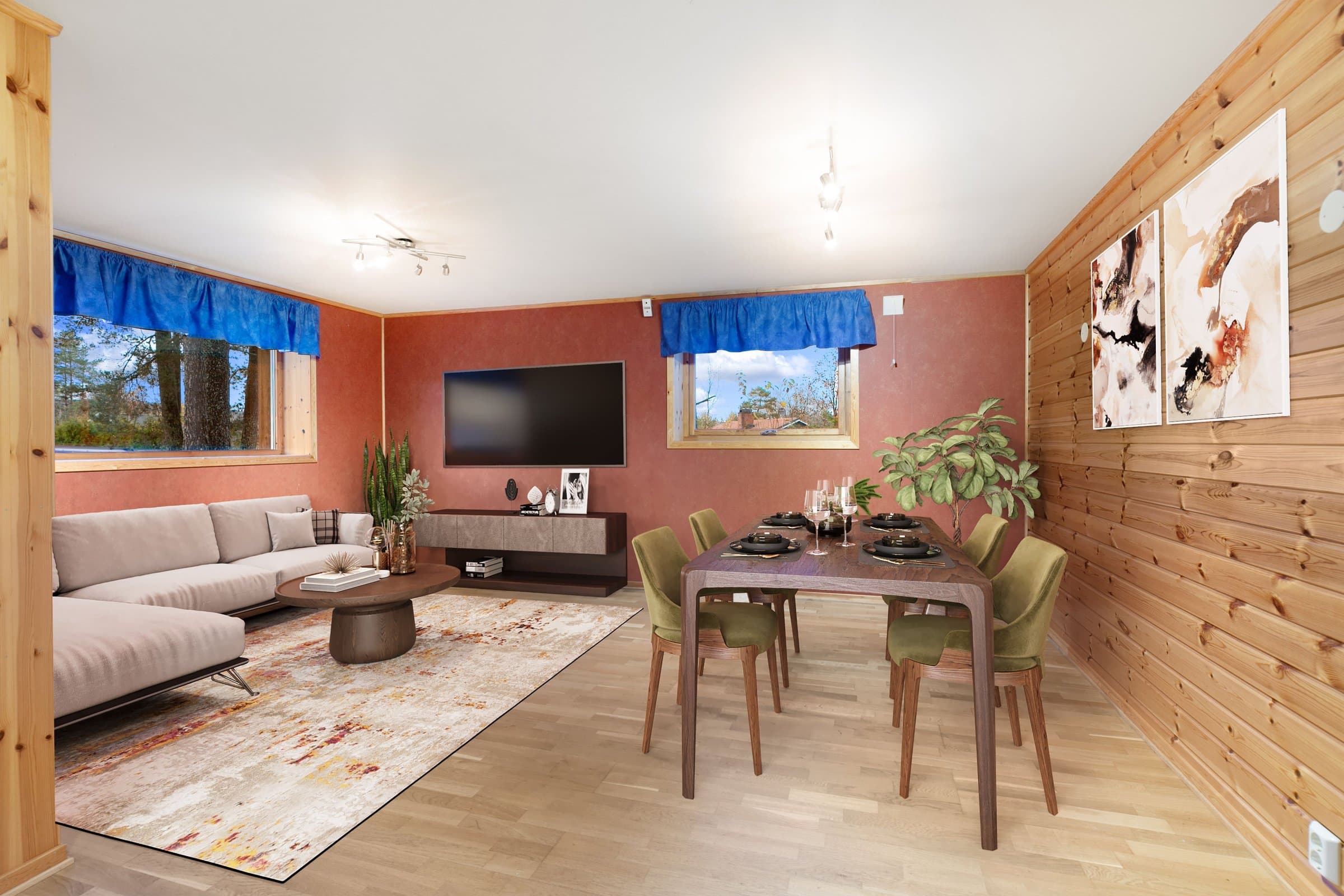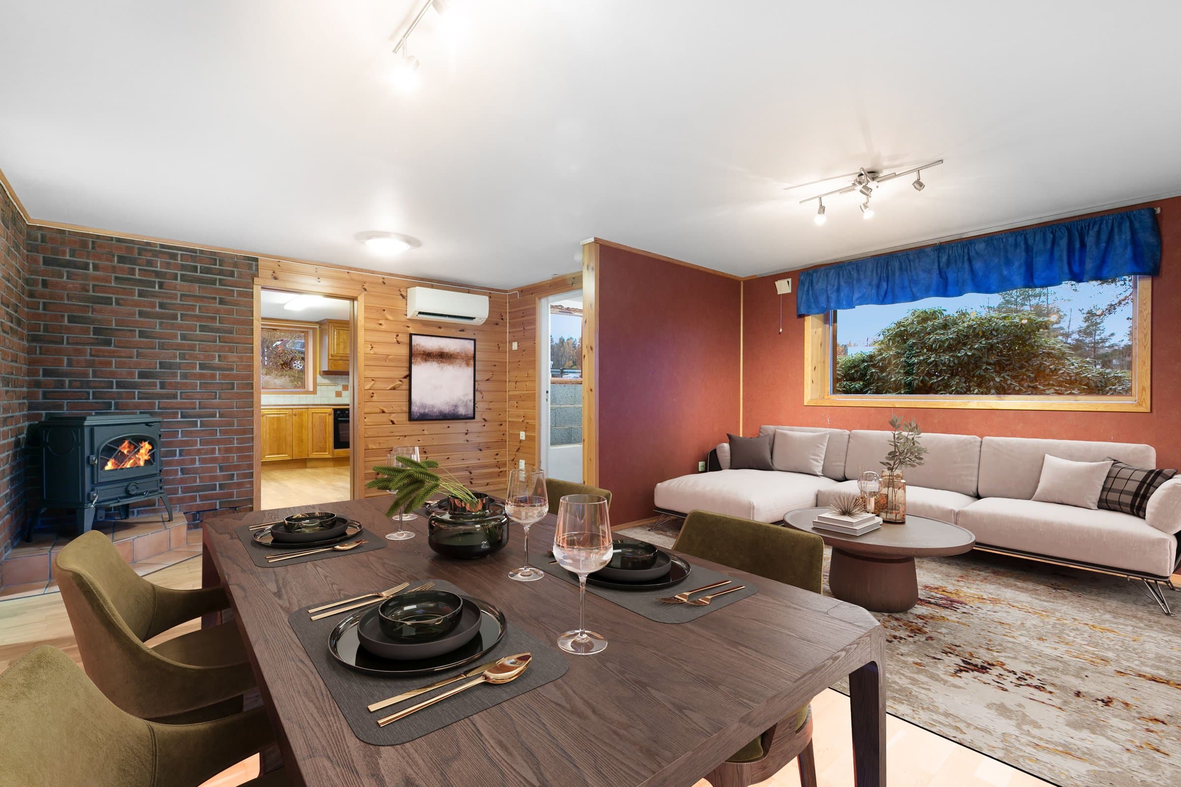 Denne eiendommen fremstår som en sjelden mulighet for de som søker et usjenert og idyllisk hjem. Med en stor og solrik tomt tilbyr den rikelig med plass og natur rundt seg. Boligen er fordelt over tre plan og ligger i de landlige omgivelsene i Nordre Frogn, nær Nesodden. Interiøret er innbydende med en lys entré, et stort kjøkken og flere romslige oppholdsrom. Aupair-leilighet har tidligere vært utleid for 12.000/mnd. Garasjeanlegg har vært utleid for ca 15.000/mnd. Send melding for å avtale visning.