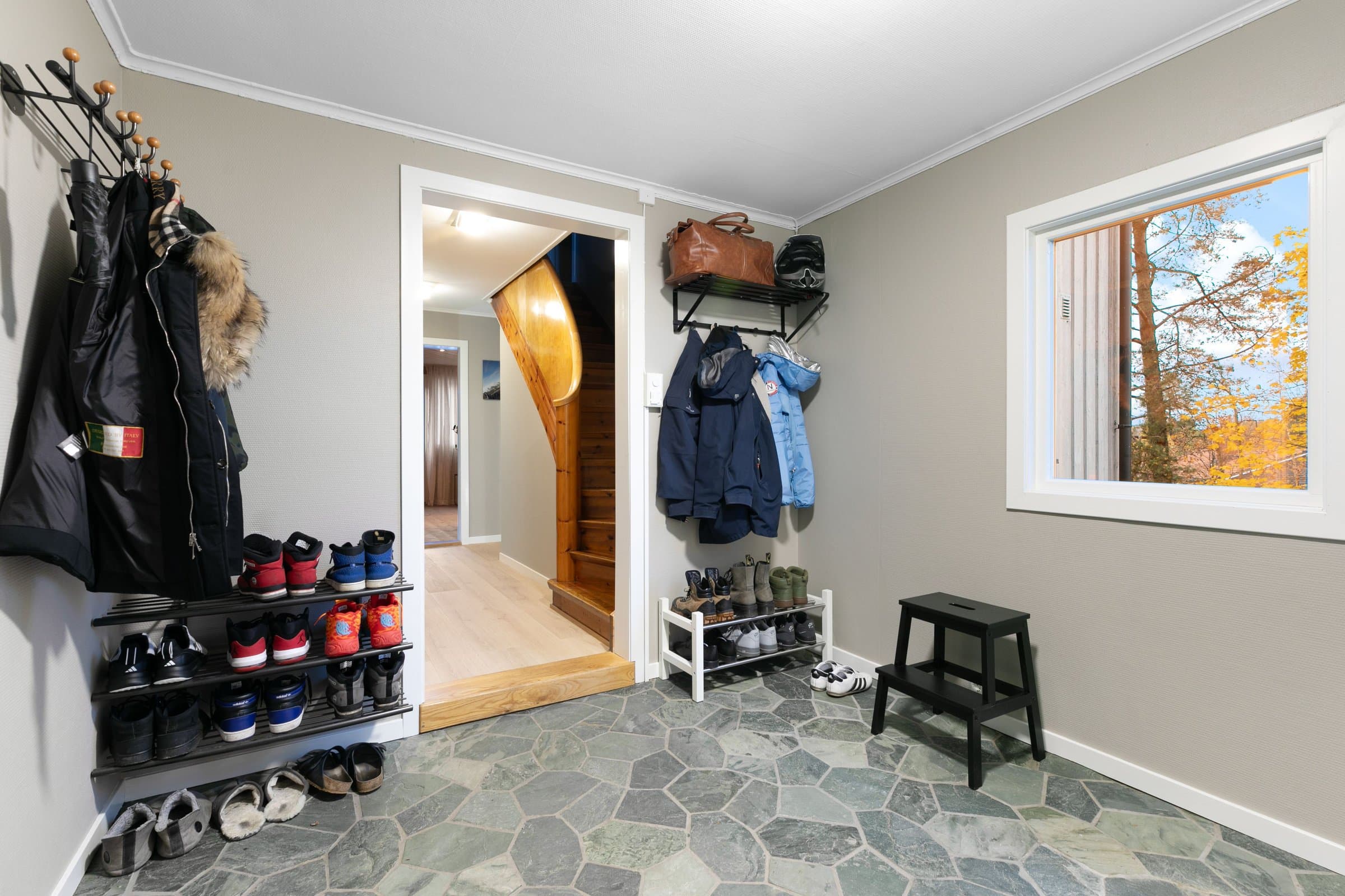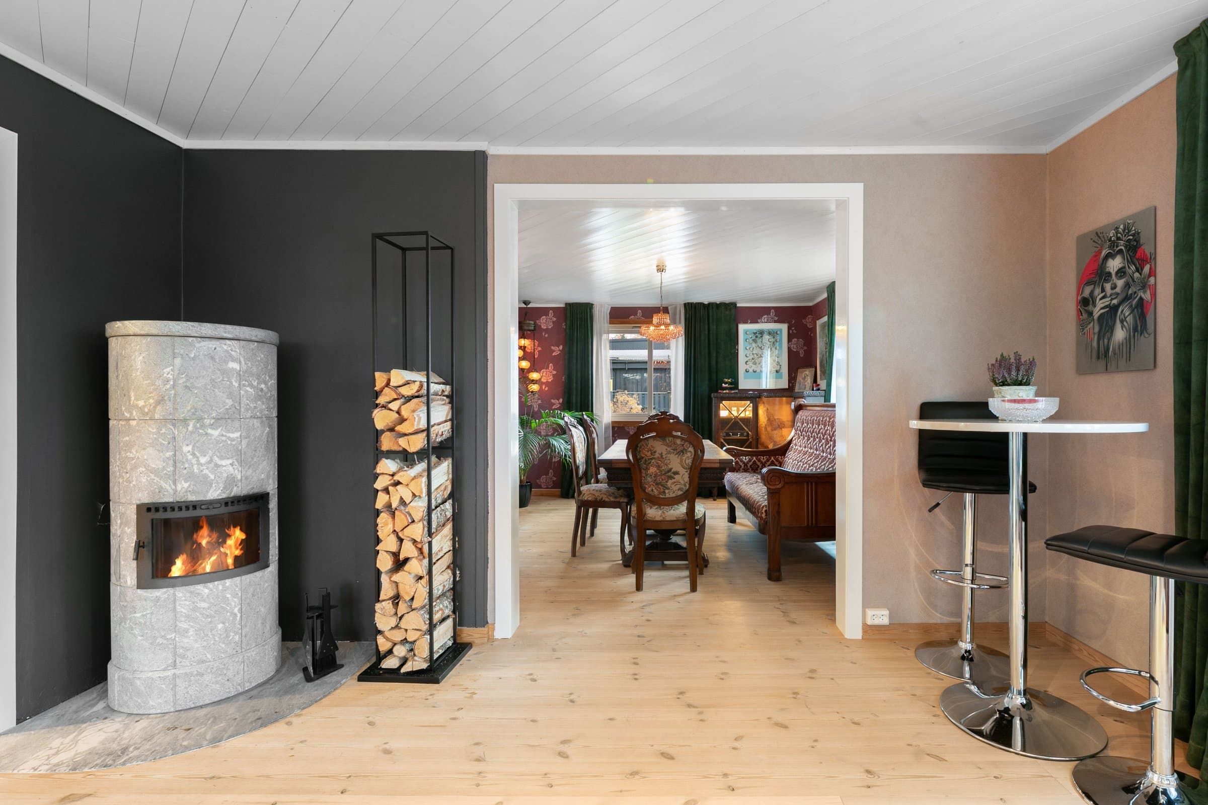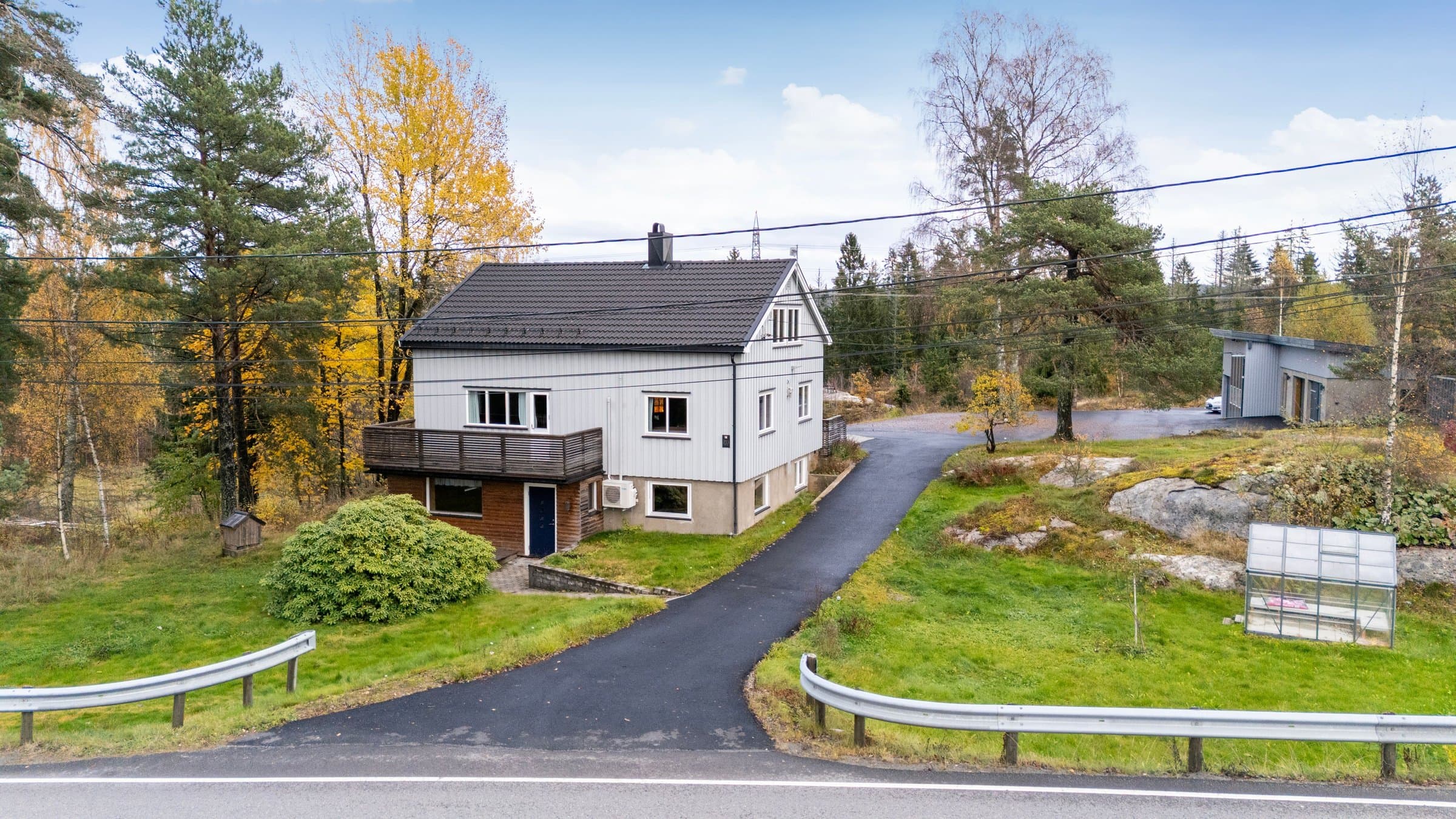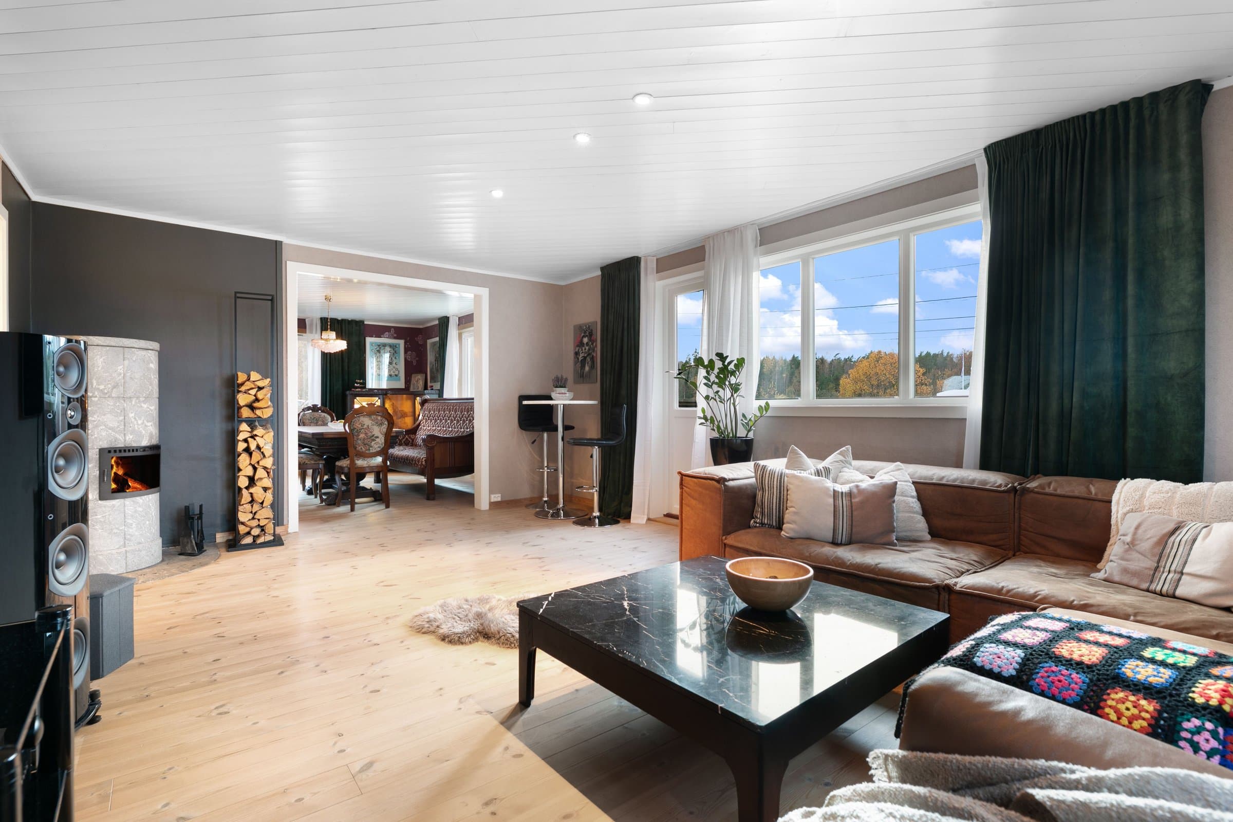Familievennlig enebolig. 3591kvm solrik tomt i landlige omgivelser. Kjellerleilighet. Stort garasjeanlegg.