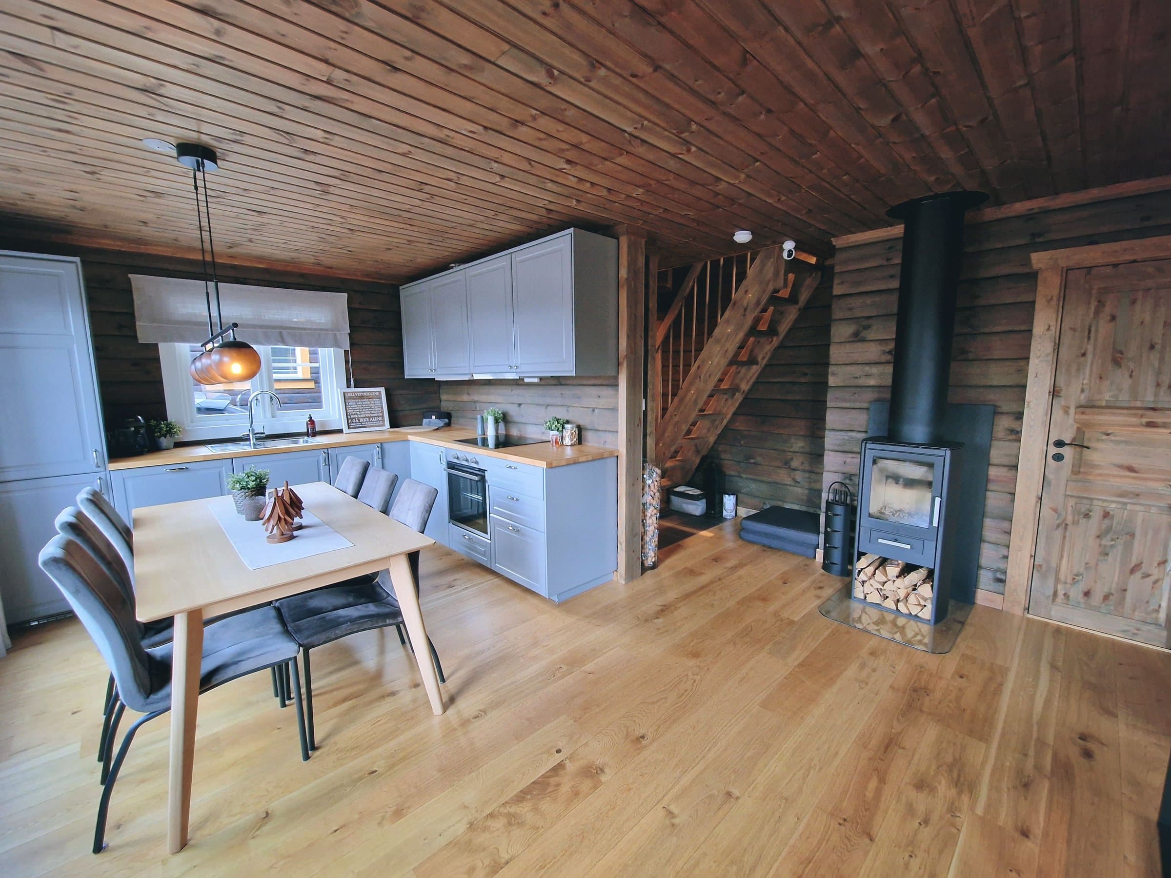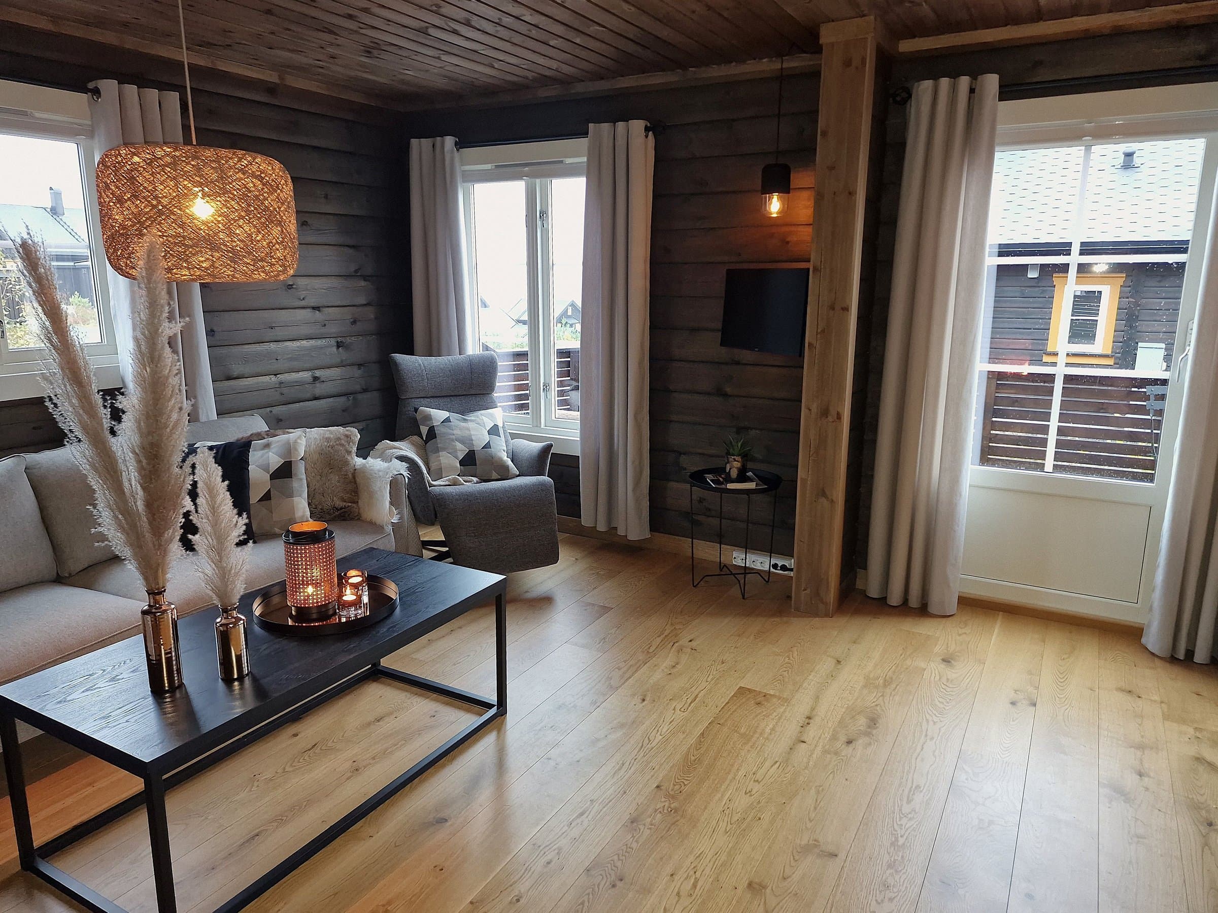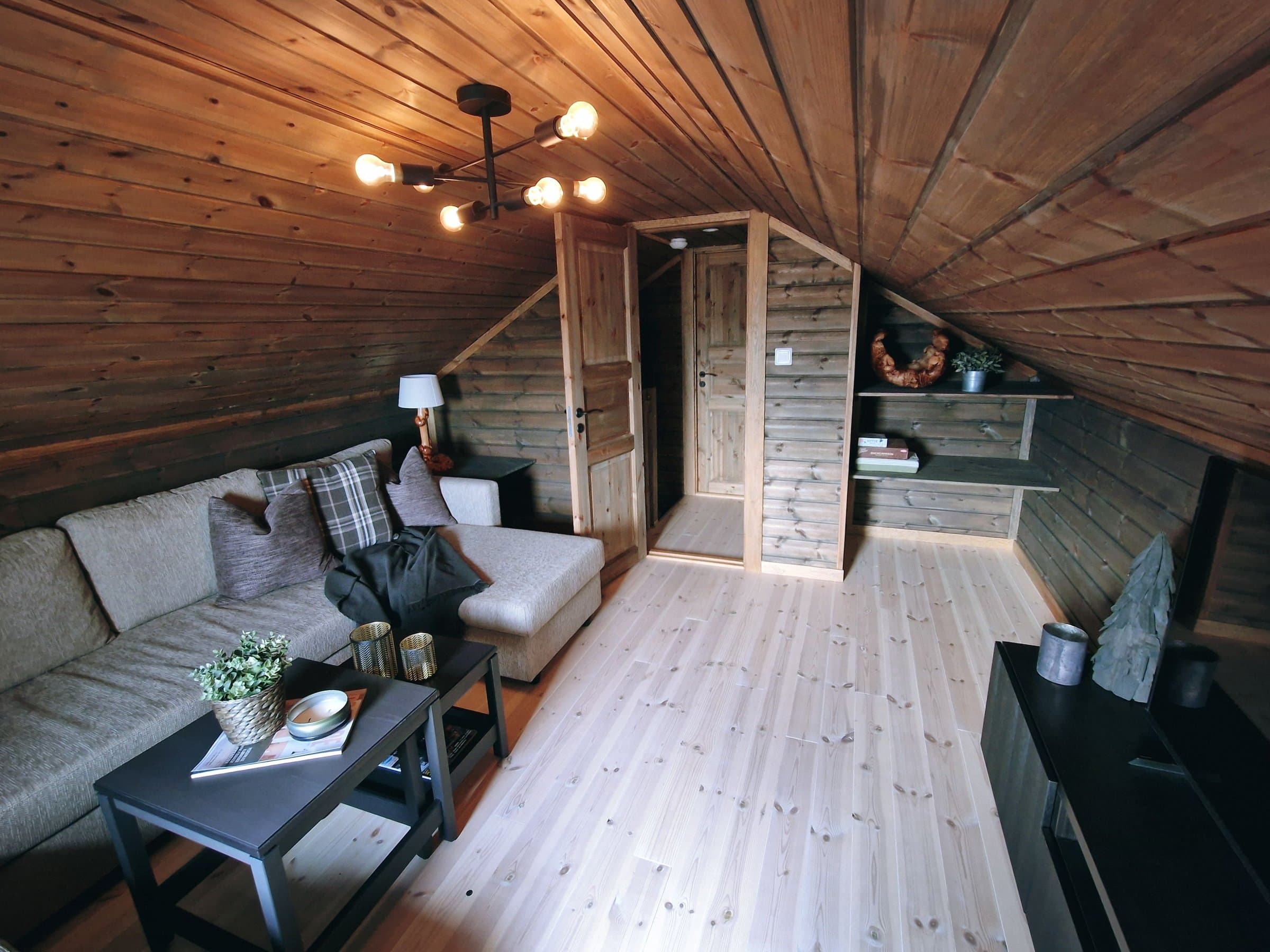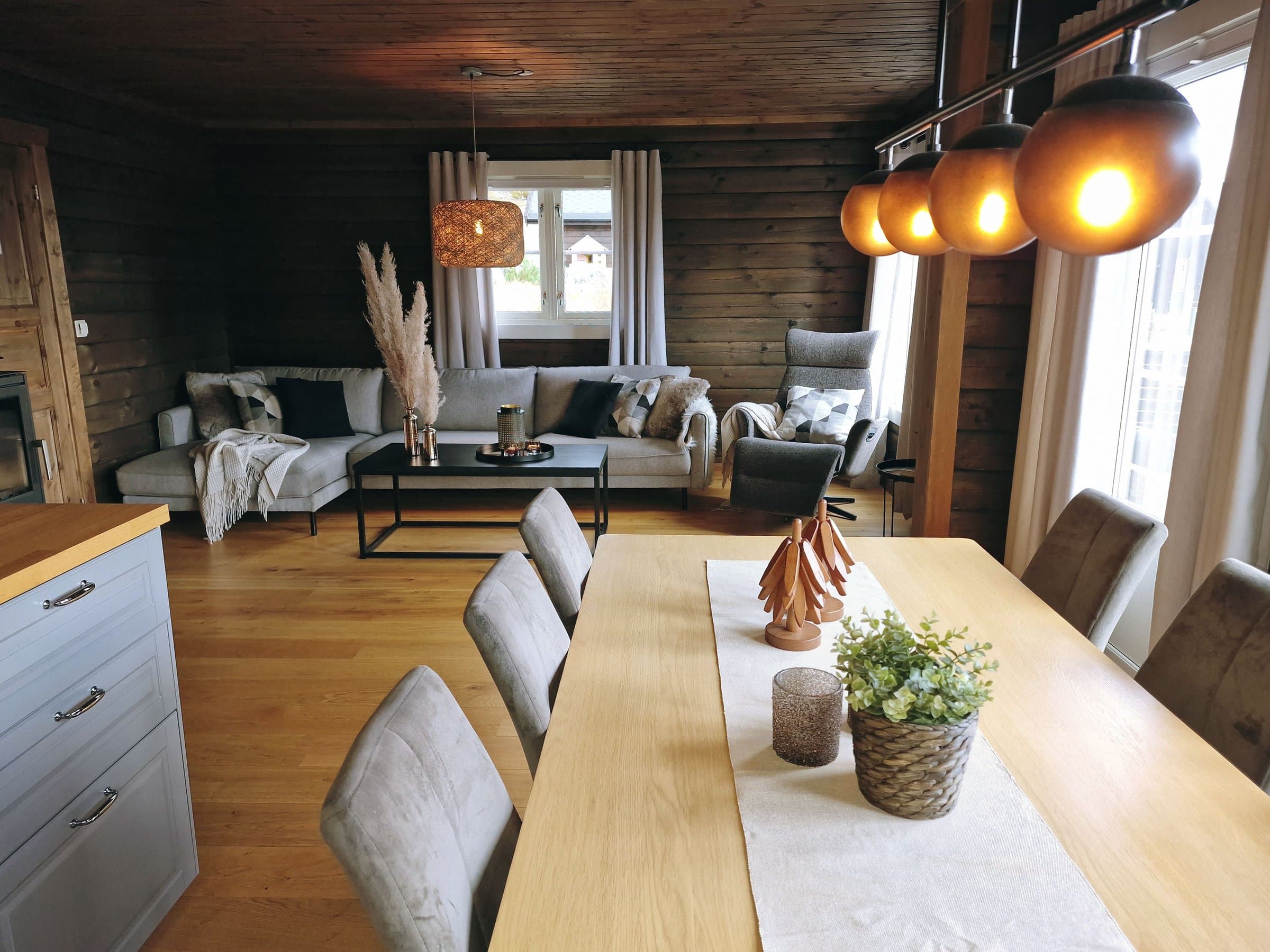 Innholdsrik hytte med badstue og terrasse. 7 sengeplasser. 75 kvm gulvflate. Umiddelbar nærhet til Skimore Kongsberg.