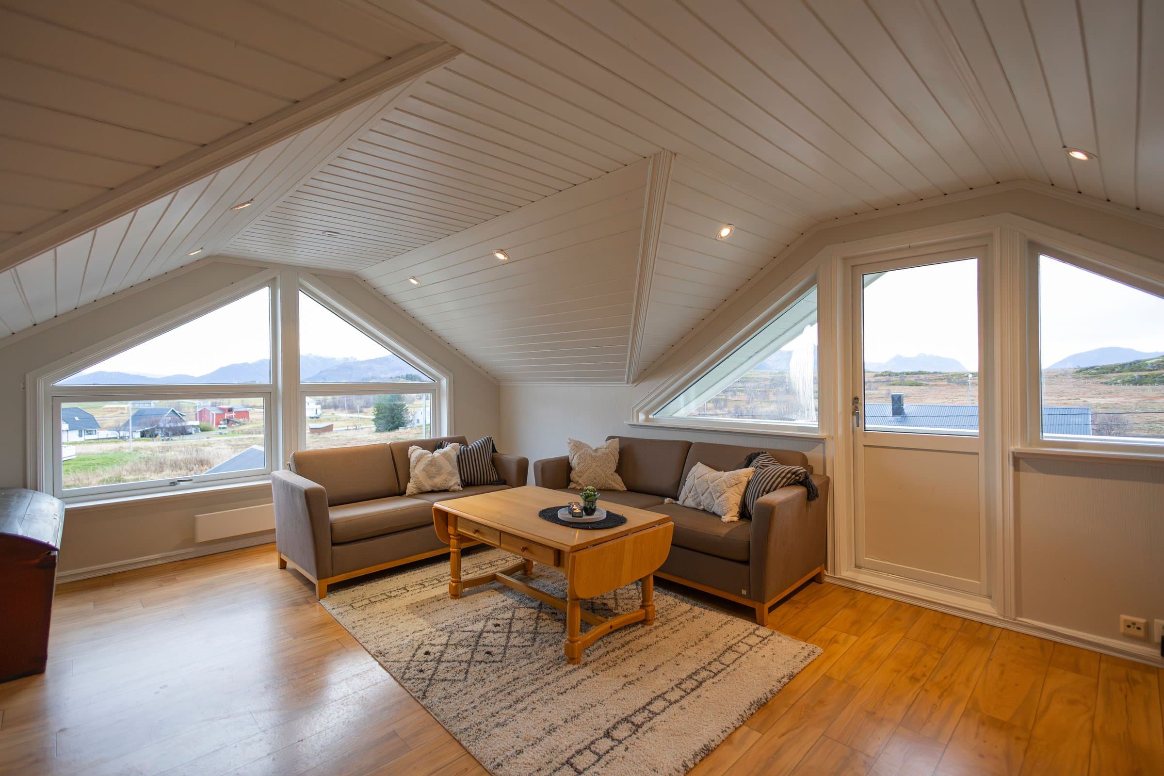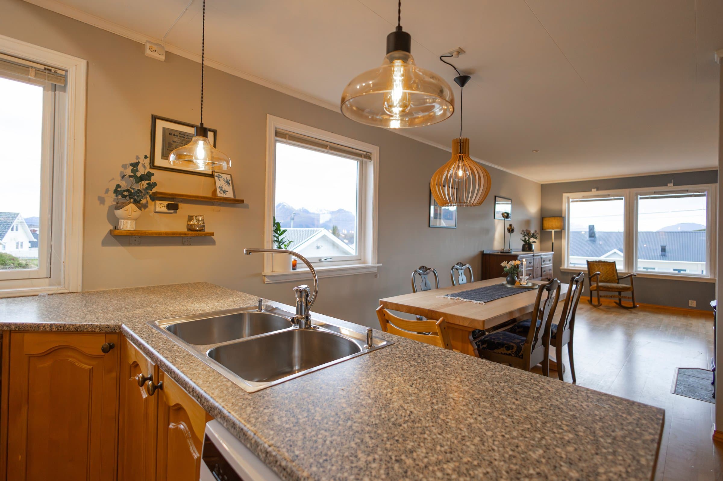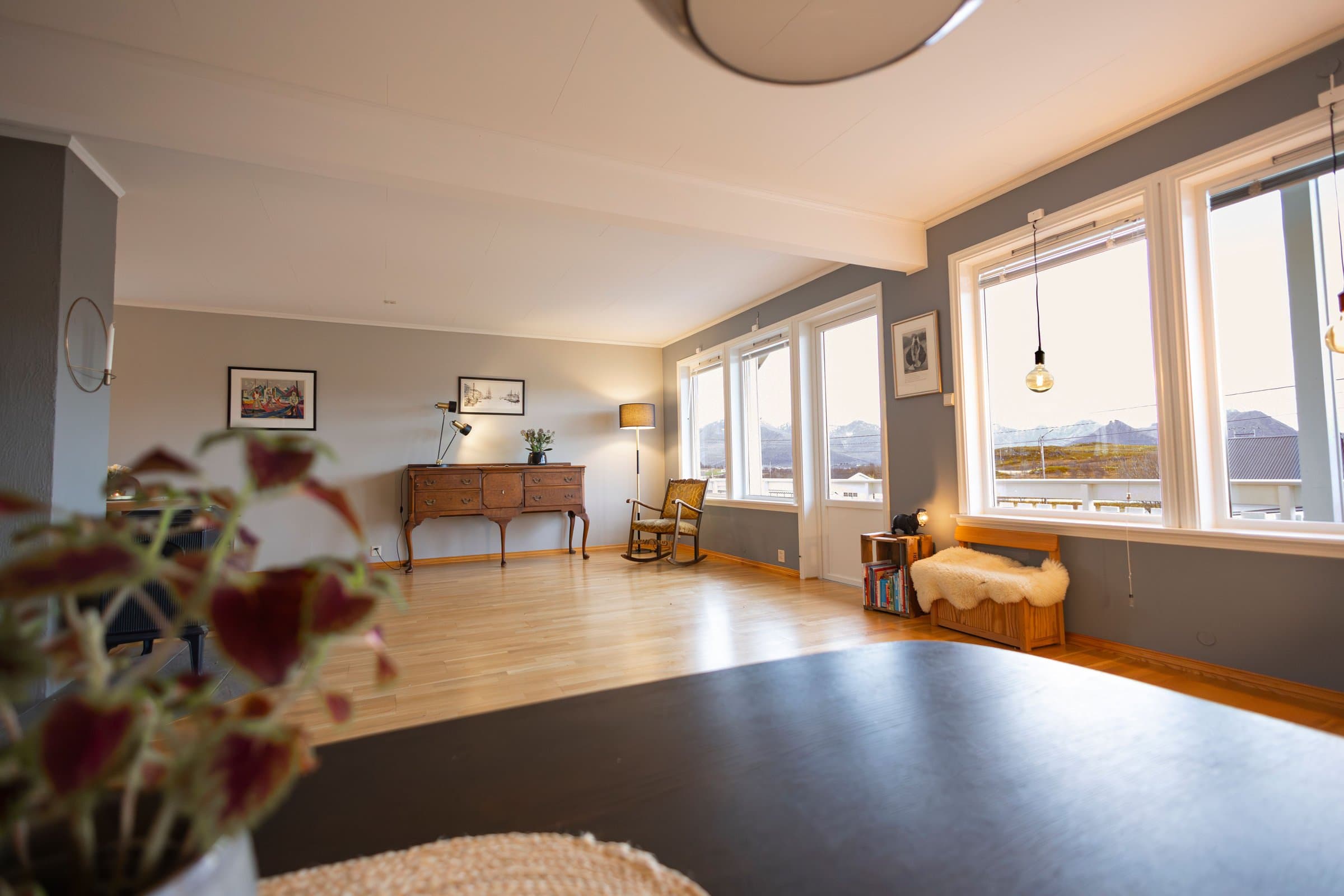 Eneboligen på Gisløy, ligger i et rolig og naturskjønt nabolag. Nært badestrand og med flott turterreng på alle sider. Nærmiljøet er vennlig og trygt, med en blanding av eldre og yngre beboere. Det er 12 minutters kjøretur til sentrum av Myre.