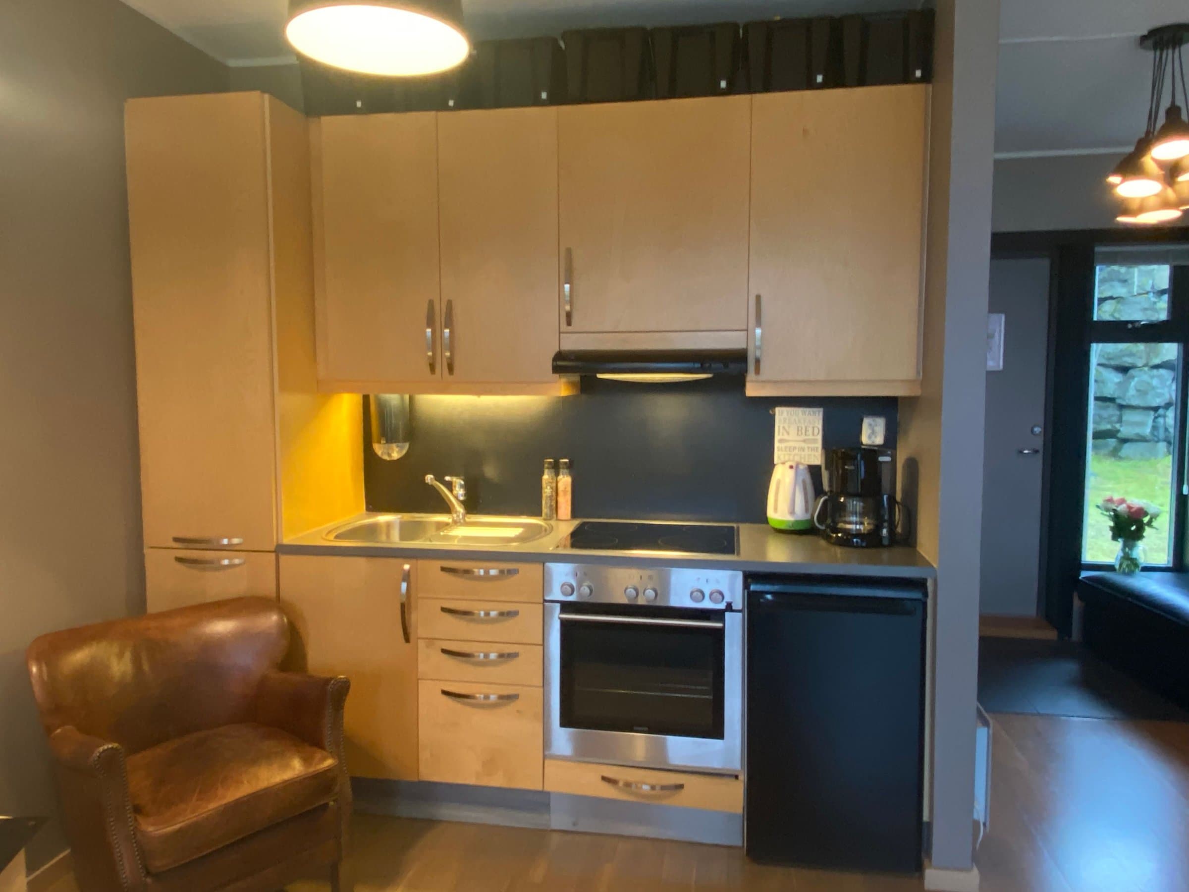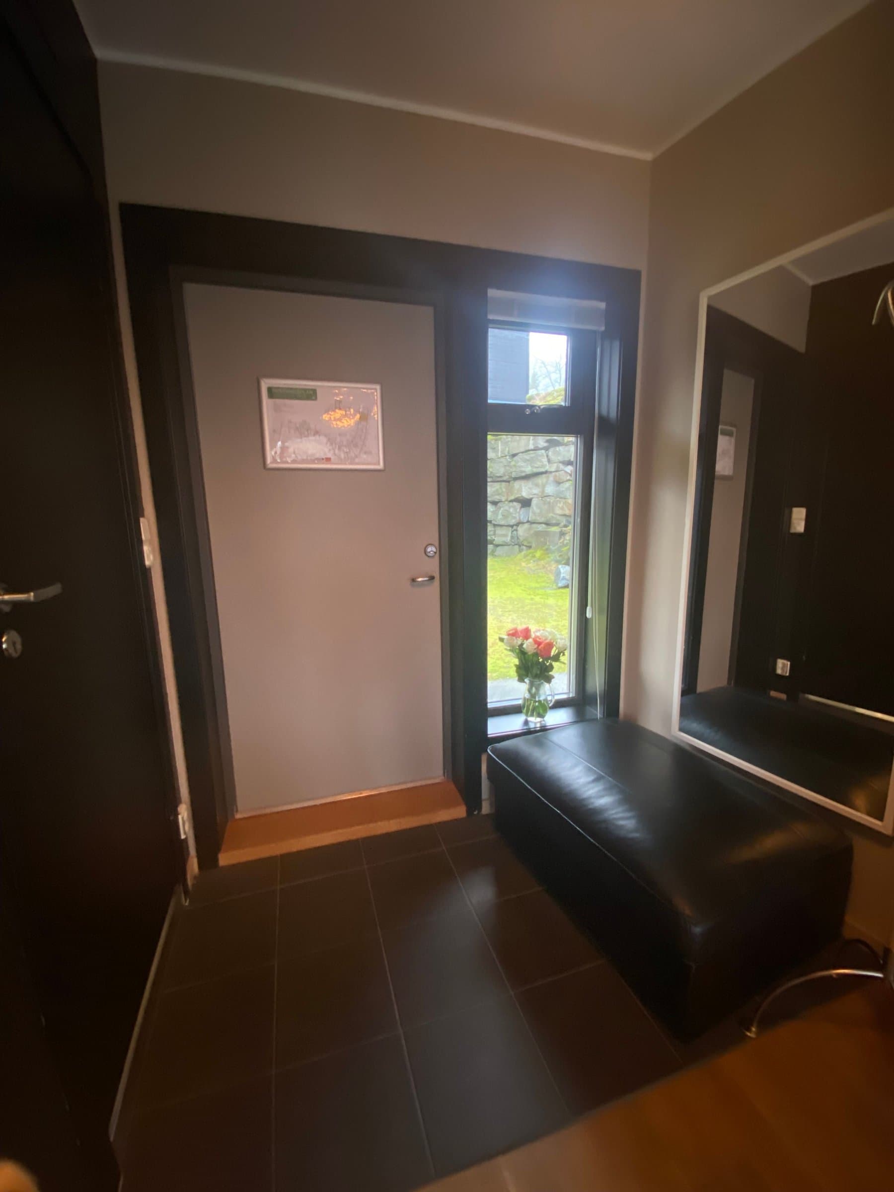 Leiligheten har gjennomgående god standard med parkett og helfliset bad. Leiligheten fremstår lys og fin med vegger malt i moderne farger. Rolig og fin beliggenhet bort fra hovedveien, med flott utsikt mot Røldalsvatnet. Flott balkong perfekt til å nyte morgensolen. I slutten av 2019 ble leiligheten oppusset. Vegger og lister ble malt i moderne og tidsriktige farger. Gulvet ble slipt og lakket Leiligheten selges møblert og med det utstyret som befinner seg der. Alle møblene ble i følge selger kjøpt nye i 2019. Pynteting og personlige eiendeler vil bli fjernet før overtagelse. Man kommer inn i gangen med fliser og varme i gulvet. Stor skyvedørsgarderobe som gir godt med oppbevaringsplass. Flott kjøkken med komfyr, koketopp, kjøleskap og oppvaskmaskin. Praktisk kjøkkenøy som gir ekstra oppbevarings- og benkeplass. Det er plassert en vaskemaskin i kjøkkenøyen, som selger opplyser at det ikke er godkjenning for. Kjøkkenøyen fungerer veldig bra som en naturlig romdeler. Lyst og fint helfliset bad med varme i gulvet. Badet inneholder veggmontert toalett, vask, speil og dusjløsning med garnityr.