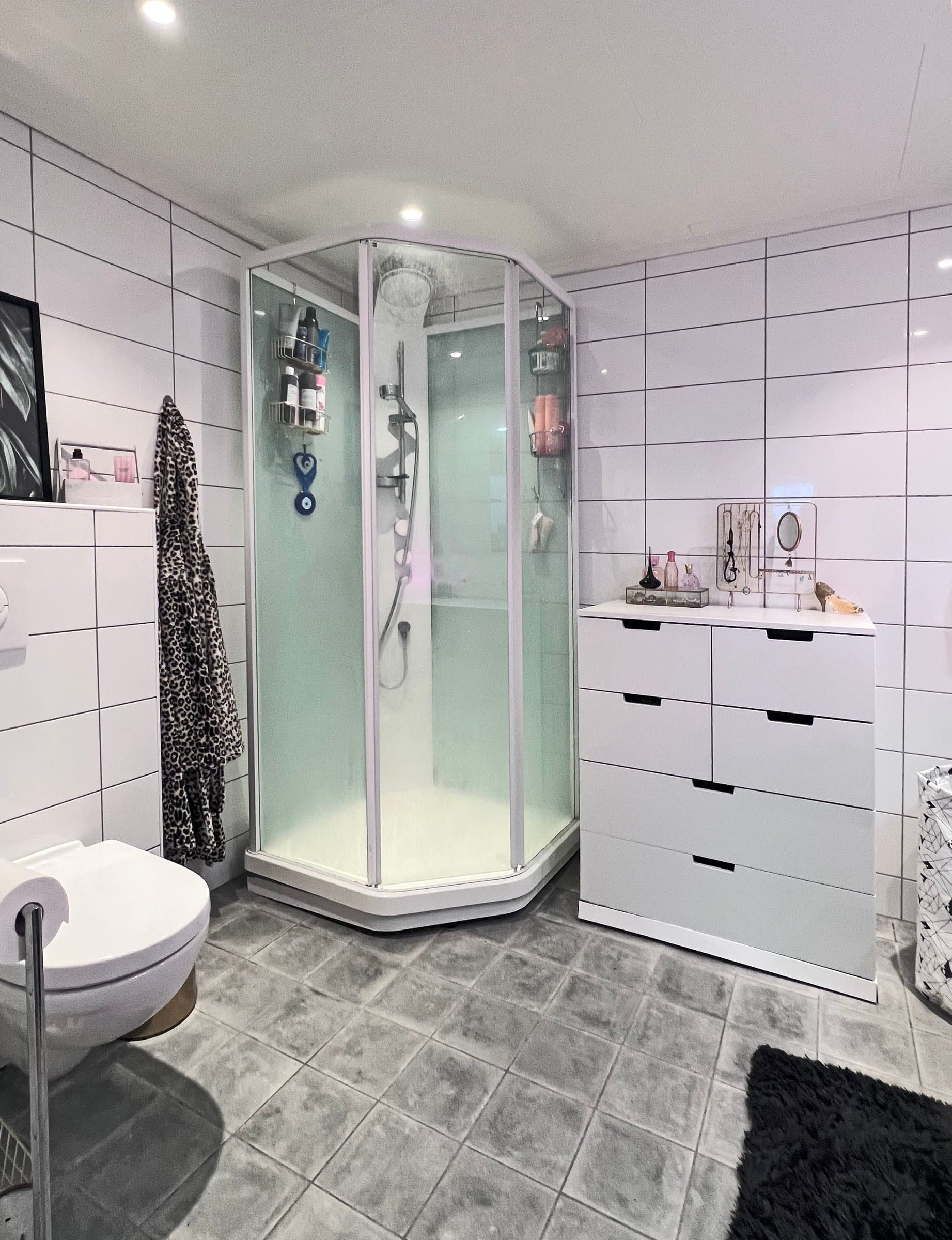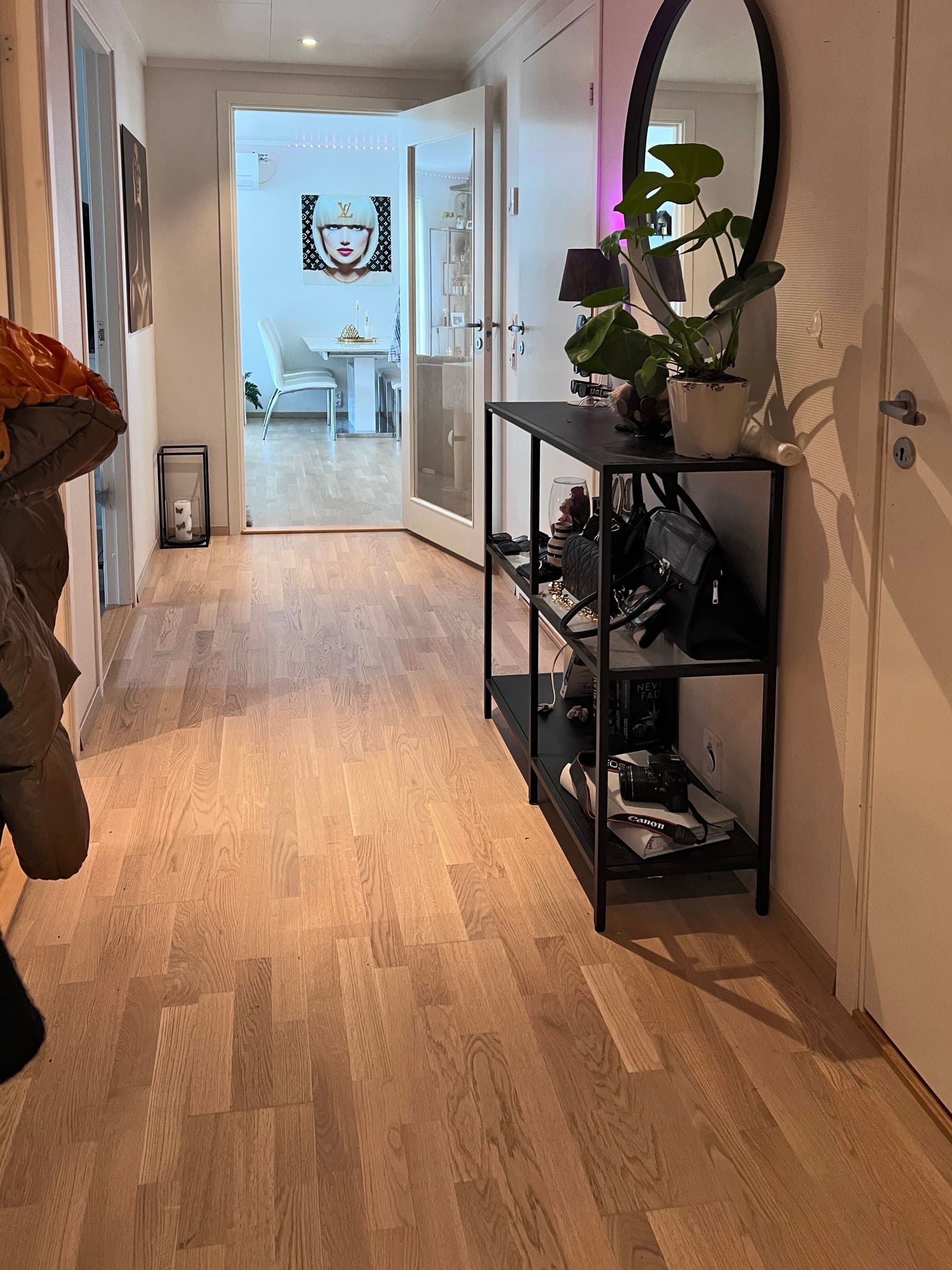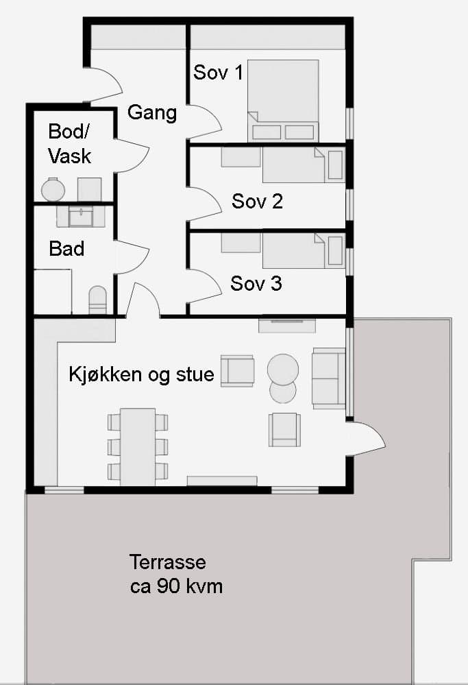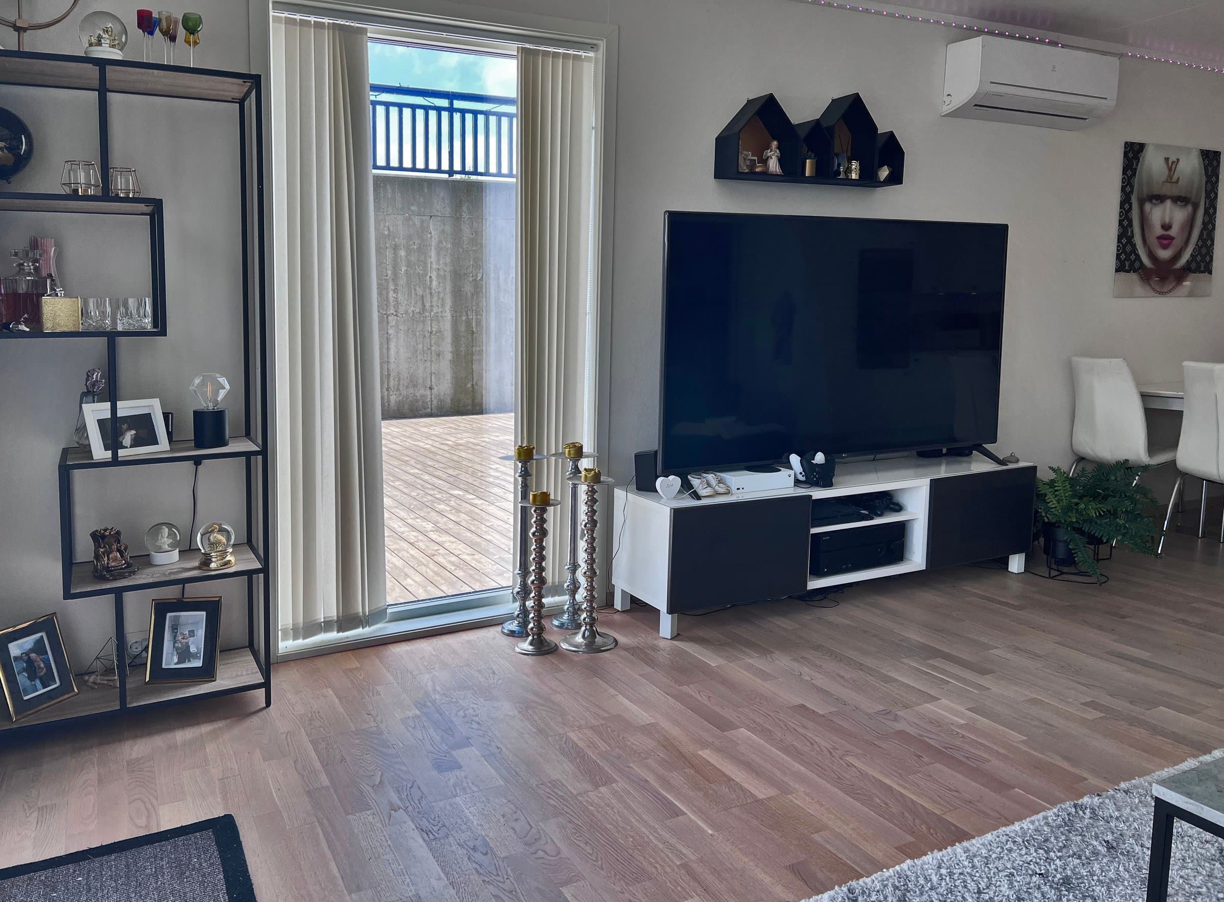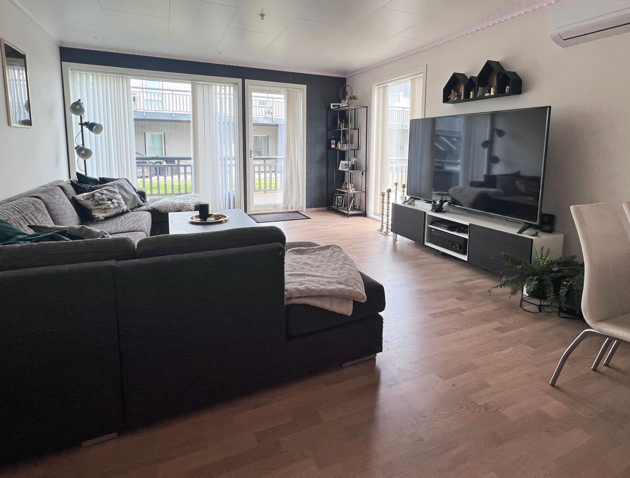 Denne flotte og praktiske leiligheten ligger i 1. etasje i bygget og inneholder: Gang, vaskerom, bad, stue/kjøkken og 3 soverom. Terrasse på 90 kvm som benyttes av eier, men er i utgpkt fellesareal. Rett til fast parkeringsplass i carport medfølger. I tillegg er det flere parkeringsplasser som er felles i området. Leiligheten er godt og fornuftig utnyttet med praktiske løsninger og mye skapplass. Integrerte hvitevarer med microbølgeovn, komfyr, integrert kjøleskap, oppvaskmaskin, platetopp og ventilator. I den innvendige boden/vaskerommet er det plass til for eksempel vaskemaskin, tørketrommel og ekstra kjøl/frys. Her er også varmtvannstanken plassert. Boligen holder en moderne, normal standard: - Stue med arealeffektiv og sosial åpen kjøkkenløsning. God plass til både sofa og spisegruppe. Store vindusflater slipper inn rikelig med naturlig lys i rommet. -Varmepumpe og utgang til stor, herlig terrasse. Her er god plass til lounge, spisebord etc. - Lekker, tidløs kjøkkeninnredning med mye oppbevarings- og benkeplass. Alle hvitevarer er integrert. - Romslig hovedsoverom med stor og flott garderobeløsning. - Leiligheten har ytterligere 2 soverom, begge med garderobeskap. - Helfliset, moderne bad med dusjkabinett, veggmontert klosett og servant nedfelt i baderomsinnredning. Varmekabler i gulv. - Separat vaskerom som inneholder varmtvannsbereder, opplegg for vaskemaskin og sprinklersentral. Det er i tillegg fordelerskap for rør-i-rør for tappevann. - Gang/entré med stor skyvedørsgarderobe. Overflater: Gulv: Parkett, fliser og belegg. Vegger: Tapetserte flater, malt glassfibervev, malte flater og fliser Himlinger: Malte bygningsplater. I forhold til tilstandsrapport er den lille vannskaden som oppsto nå utbedret med ny parkett i hele stue/kjøkkenområdet, samt nytt høyskap til integrert kjøleskap. Frontene på vasken på badet vil også bli skiftet før salg. Med forbehold om feil og endringer i annonsen.