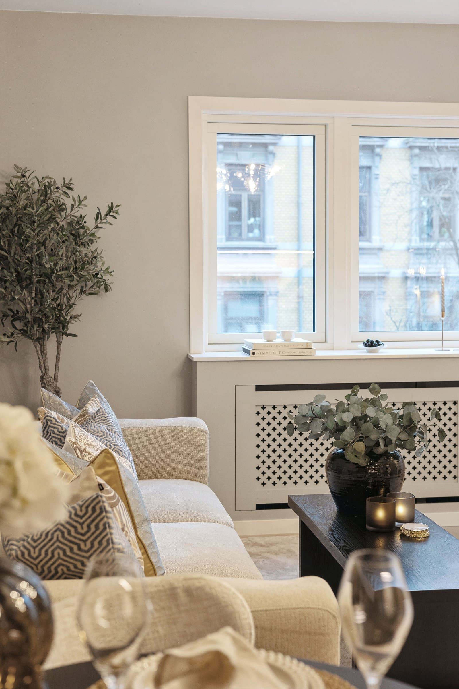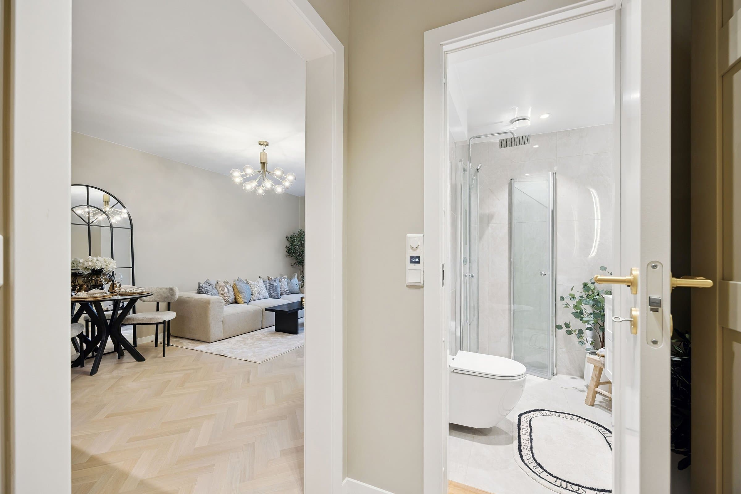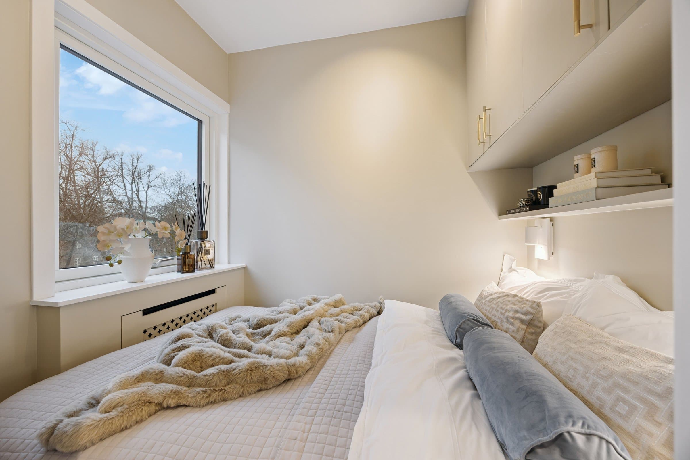 En moderne og stilfull leilighet med beliggenhet i hjerte av Frogner, et veletablert område preget av elegante bygårder, ambassader og vakker arkitektur. I nærområdet finner du blant annet Gimle parfymeri, Gimle kino, dagligvarebutikker som Coop Prix og Kiwi, hyggelige cafeer og en bensinstasjon - alt like utenfor døren.