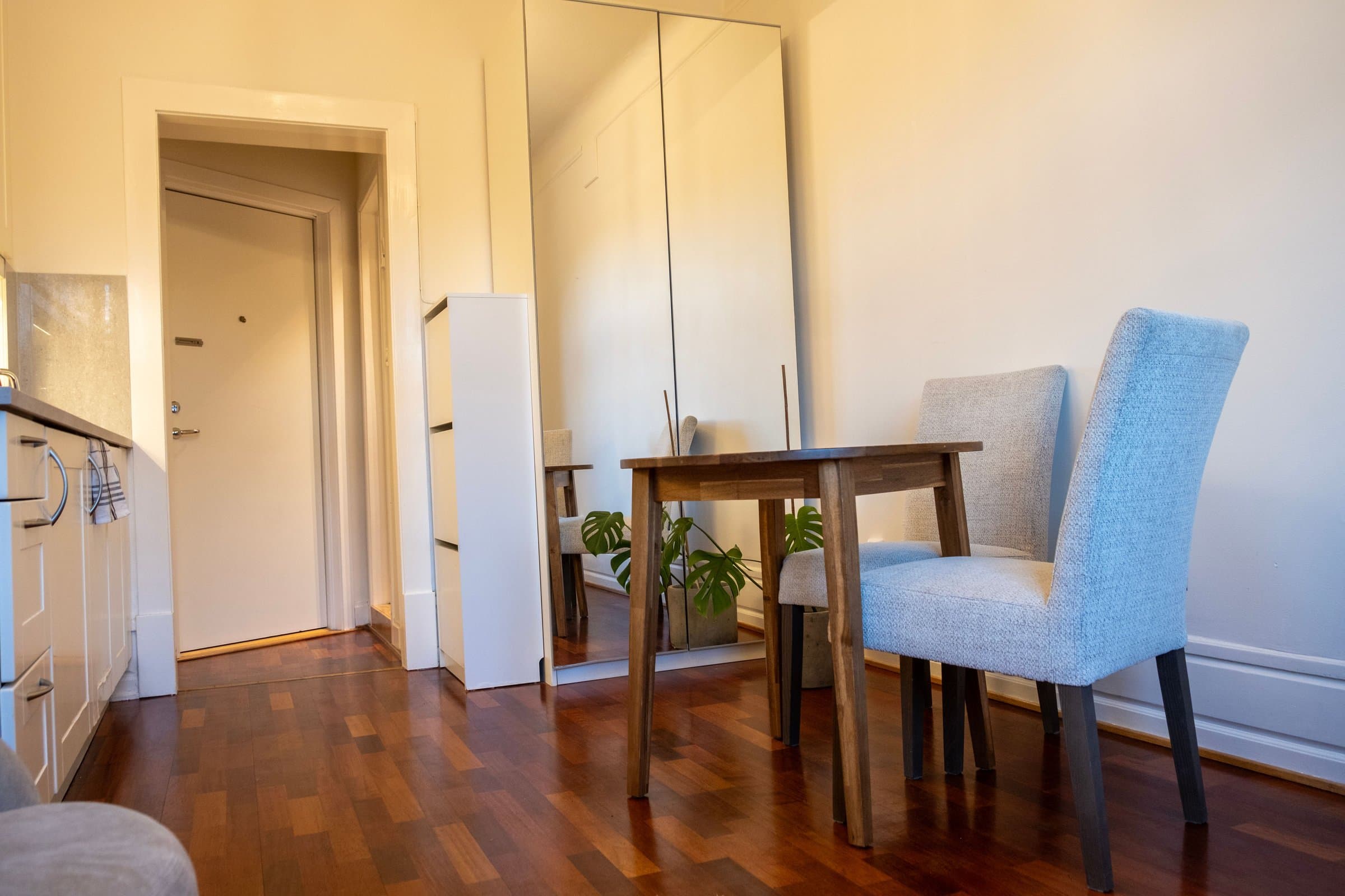 Leiligheten ligger på en av Oslos mest attraktive adresser, på Uranienborg/Frogner, med kort vei til byens beste fasiliteter. Nærområdet byr på et variert utvalg av caféer, restauranter, butikker, barnehager og skoler, i tillegg til hotell og servicetilbud. For den som ønsker grøntområder og rekreasjon, ligger Uranienborgparken rett ved døren, og både Slottsparken og Frognerparken er kun en kort spasertur unna. De populære handlegatene Bogstadveien og Hegdehaugsveien ligger også i nærheten, med et bredt utvalg av butikker, spisesteder og caféer. Camilla Colletts vei strekker seg som en forlengelse av Skovveien fra Riddervolds plass, hvor du finner lokale klesbutikker, caféer, frisører og salonger. Veien og området preges av elegante bygårder med vakre fasader og små, velstelte forhager, og Camilla Colletts vei regnes som en av byens mest fasjonable adresser. Gode kollektivforbindelser gjør det enkelt å komme seg rundt i Oslo, med buss, trikk og T-bane like i nærheten. Kort vei til Nationaltheatret, Aker Brygge og Oslo sentrum (ca. 2 km) gjør beliggenheten både sentral og attraktiv.