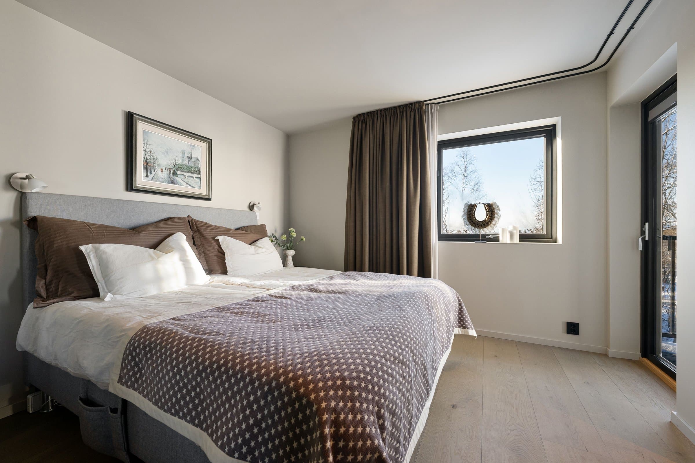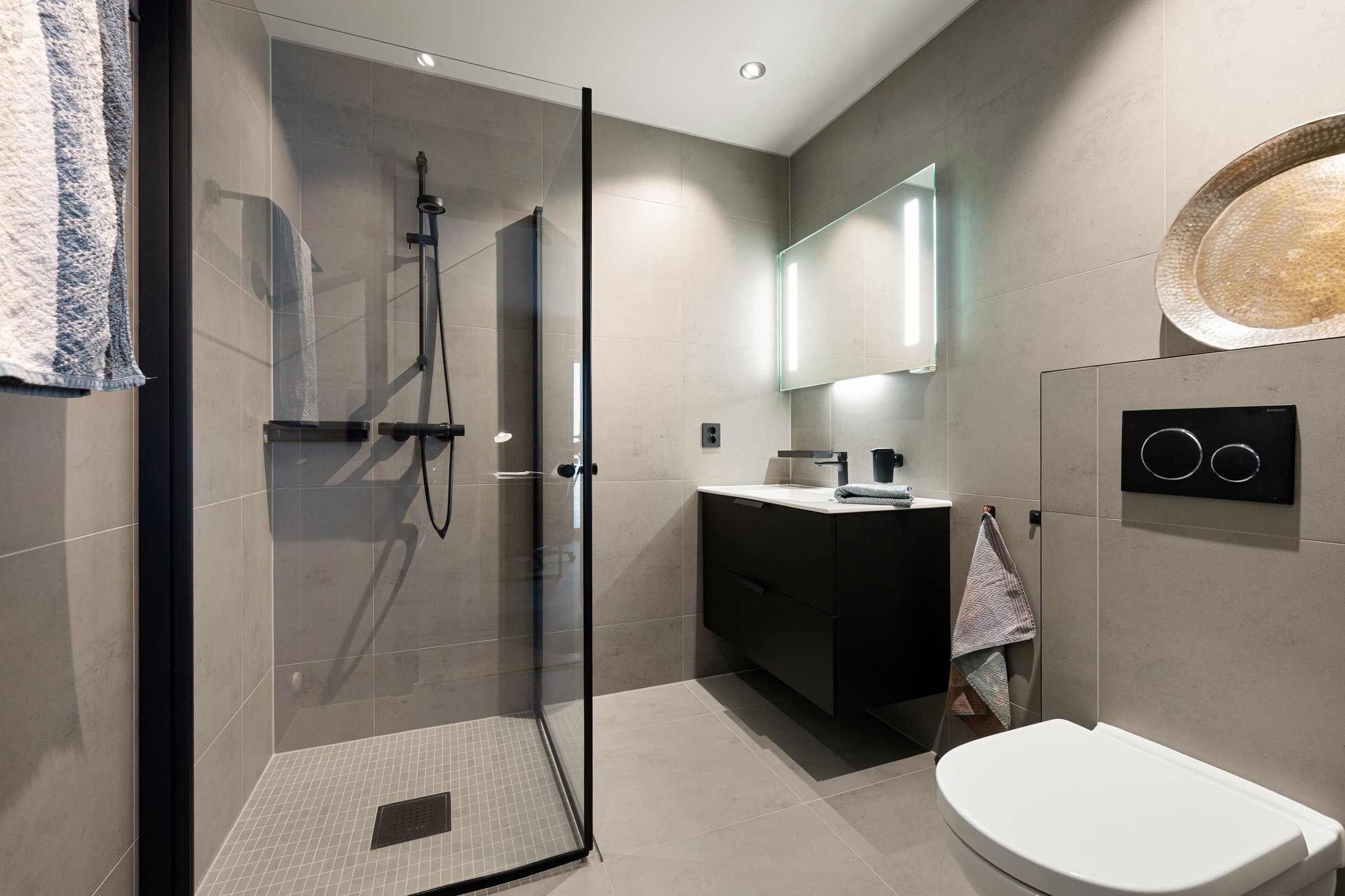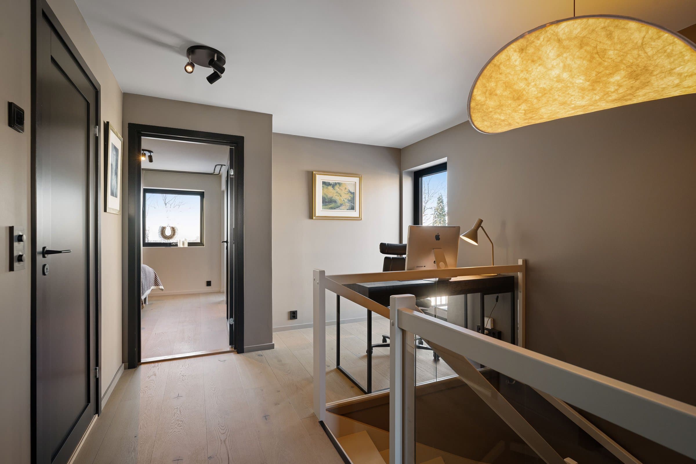 1. ETASJE: Velkommen inn ‑ du ønskes velkommen inn i flislagt entré med gulvvarme. Her er det plass til å henge fra seg ytterklær i garderobeskap. Det er åpen stue og kjøkkenløsning som gjør rommet mer sosialt. Kjøkkenet er innredet i en praktisk form og har godt med skap‑ og benkeplass. Sigdal Amfi Lakriz 2.0 innredning med glatte fronter og kompositt benkeplate med underlimt vask. Vedr. hvitevarer se pkt. "Innbo og løsøre" i salgsoppgaven. Kjøkkenvifte med avtrekk ut i kanal. Stuen har plass til flere møbleringsmuligheter for å skape den stuen du selv ønsker. Her er flere store vindusflater som slipper inn mye naturlig lys og skaper en god atmosfære i rommet. I tilknytning til kjøkkenet, kan spisebord enkelt plasseres ‑ her kan gode måltider nytes. Fra stuen er det utgang til en solrik balkong med trapp ned til hage og treplatting som fungerer som en forlengelse av stuen på varme sommerdager. Boligen har separat toalettrom med adkomst fra entreen. Rommet har flislagt gulv, gulvvarme og er utstyrt med et vegghengt toalett, baderomsinnredning med heldekkende servant og et vegghengt speil. 2. ETASJE: Videre byr boligen på tre gode soverom, alle beliggende i samme etasje. Hovedsoverommet har plass til dobbeltseng, tilhørende møblement og stor skyvedørsgarderobe med god oppbevaringsplass. Rommet har tilgang til eget masterbad og utgang til egen balkong. De to andre soverommene er praktisk utført med god plass til seng, tilhørende møblement og stort garderobeskap på det ene. Ypperlig som barnerom, gjesterom eller hjemmekontor. Masterbadet er pent flislagt med varmekabler i gulvet. Badet er utstyrt med vegghengt toalett, dusjhjørne med glassdører, samt baderomsinnredning med servant og speilskap. Det er balansert ventilasjon. Delikat baderom som er flislagt med grå fliser og har varmekabler i gulv. Badet er utstyrt med vegghengt toalett, badekar, samt baderomsinnredning med servant og speil. Det er balansert ventilasjon.
