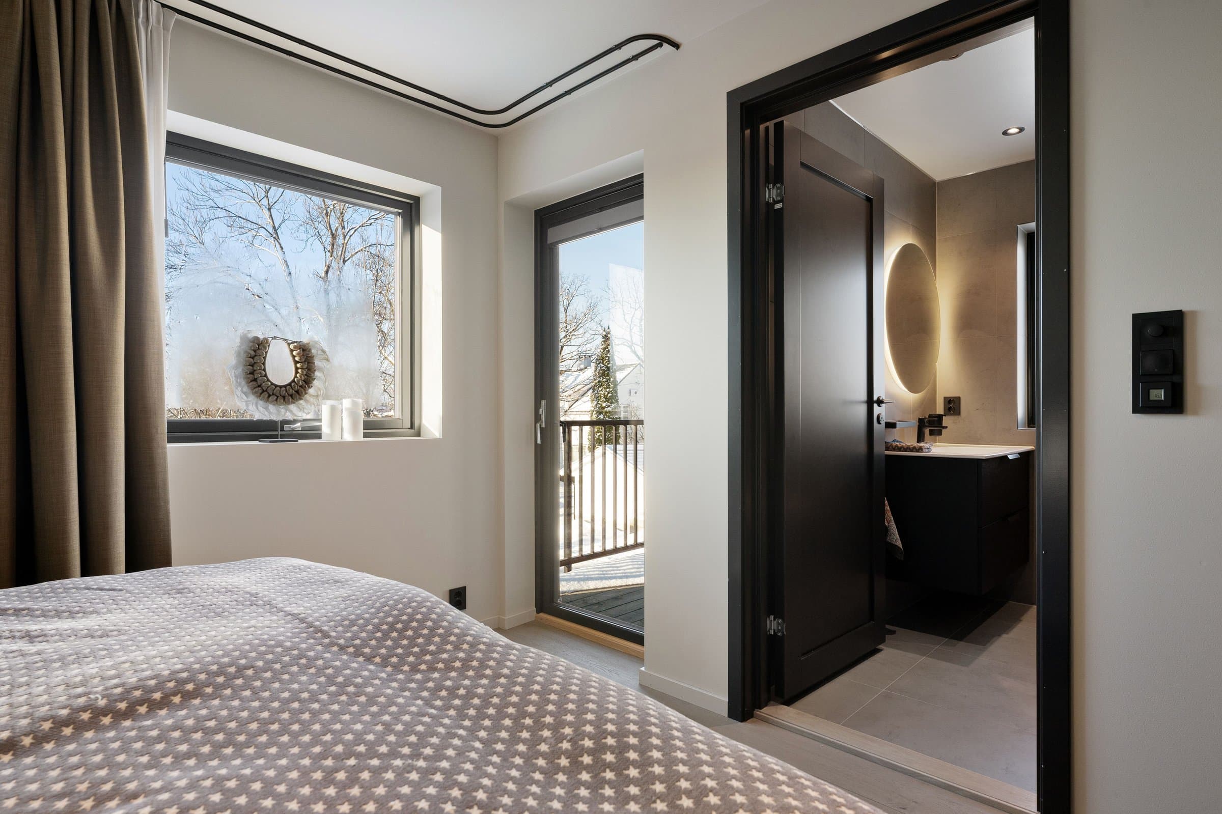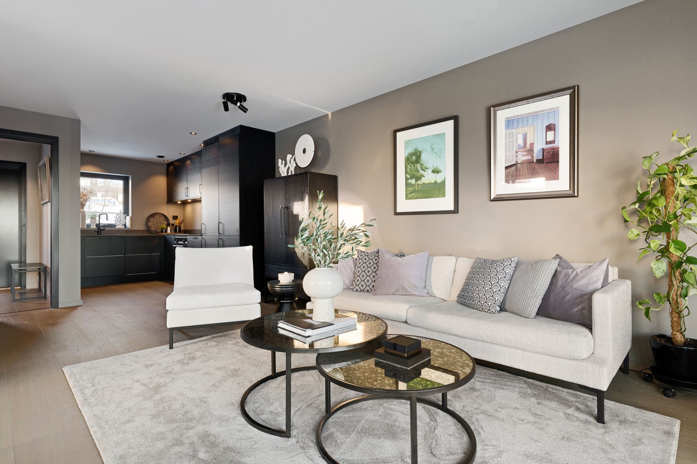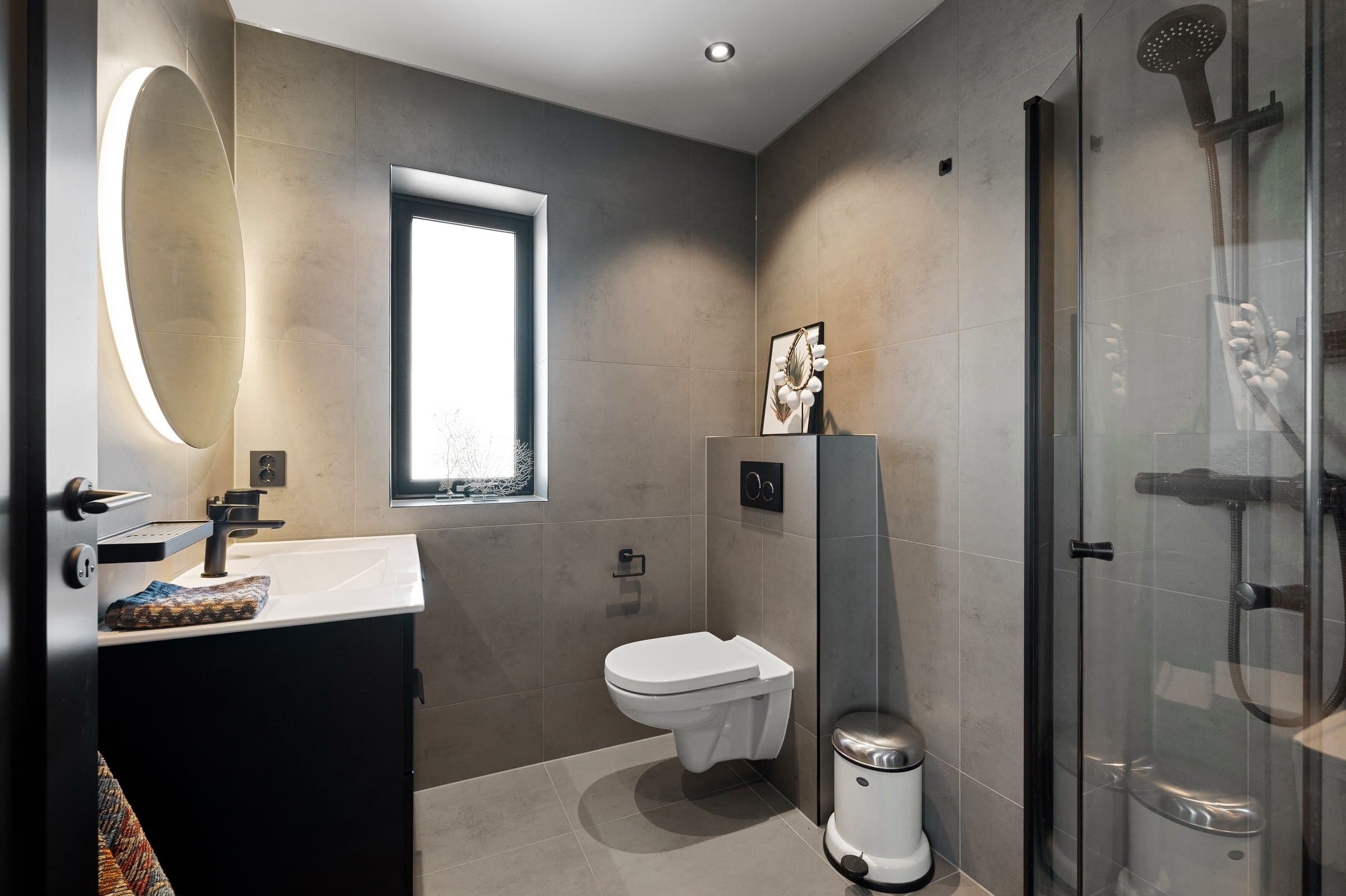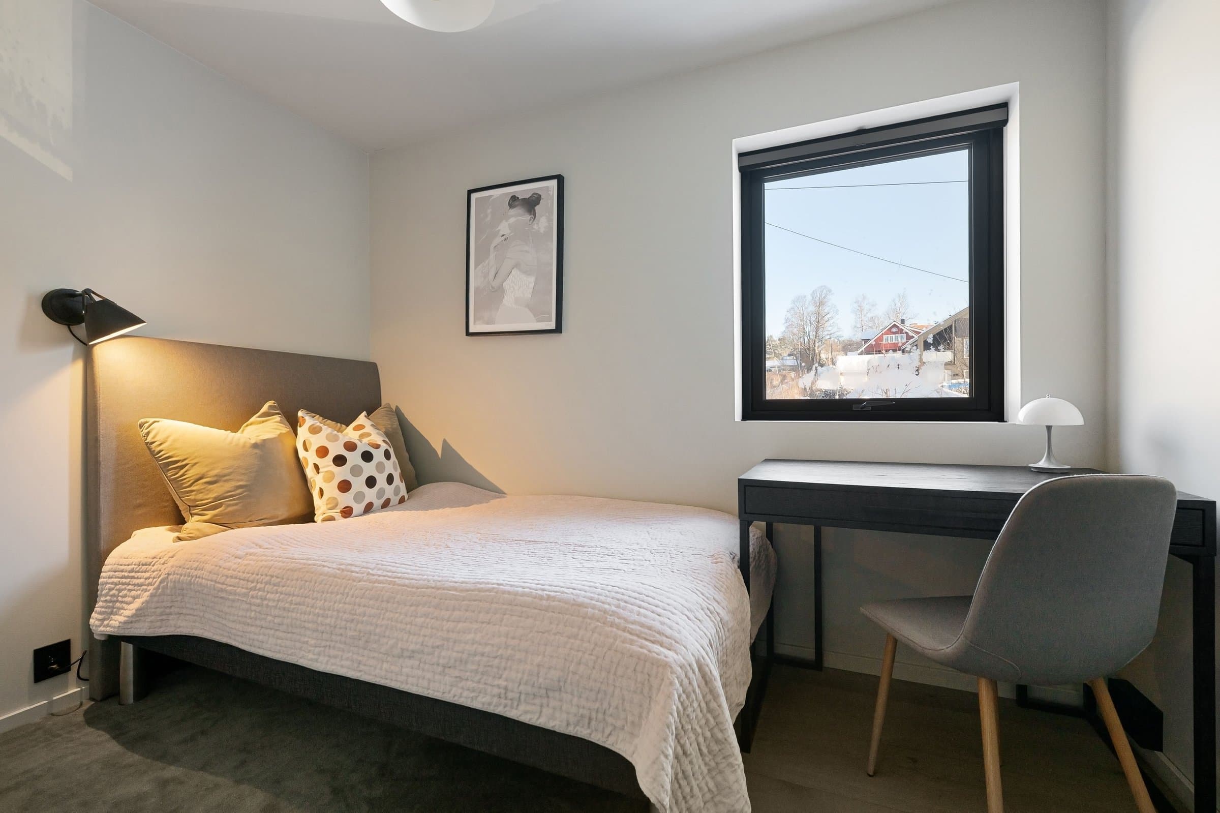 1. ETASJE: Velkommen inn ‑ du ønskes velkommen inn i flislagt entré med gulvvarme. Her er det plass til å henge fra seg ytterklær i garderobeskap. Det er åpen stue og kjøkkenløsning som gjør rommet mer sosialt. Kjøkkenet er innredet i en praktisk form og har godt med skap‑ og benkeplass. Sigdal Amfi Lakriz 2.0 innredning med glatte fronter og kompositt benkeplate med underlimt vask. Vedr. hvitevarer se pkt. "Innbo og løsøre" i salgsoppgaven. Kjøkkenvifte med avtrekk ut i kanal. Stuen har plass til flere møbleringsmuligheter for å skape den stuen du selv ønsker. Her er flere store vindusflater som slipper inn mye naturlig lys og skaper en god atmosfære i rommet. I tilknytning til kjøkkenet, kan spisebord enkelt plasseres ‑ her kan gode måltider nytes. Fra stuen er det utgang til en solrik balkong med trapp ned til hage og treplatting som fungerer som en forlengelse av stuen på varme sommerdager. Boligen har separat toalettrom med adkomst fra entreen. Rommet har flislagt gulv, gulvvarme og er utstyrt med et vegghengt toalett, baderomsinnredning med heldekkende servant og et vegghengt speil. 2. ETASJE: Videre byr boligen på tre gode soverom, alle beliggende i samme etasje. Hovedsoverommet har plass til dobbeltseng, tilhørende møblement og stor skyvedørsgarderobe med god oppbevaringsplass. Rommet har tilgang til eget masterbad og utgang til egen balkong. De to andre soverommene er praktisk utført med god plass til seng, tilhørende møblement og stort garderobeskap på det ene. Ypperlig som barnerom, gjesterom eller hjemmekontor. Masterbadet er pent flislagt med varmekabler i gulvet. Badet er utstyrt med vegghengt toalett, dusjhjørne med glassdører, samt baderomsinnredning med servant og speilskap. Det er balansert ventilasjon. Delikat baderom som er flislagt med grå fliser og har varmekabler i gulv. Badet er utstyrt med vegghengt toalett, badekar, samt baderomsinnredning med servant og speil. Det er balansert ventilasjon.