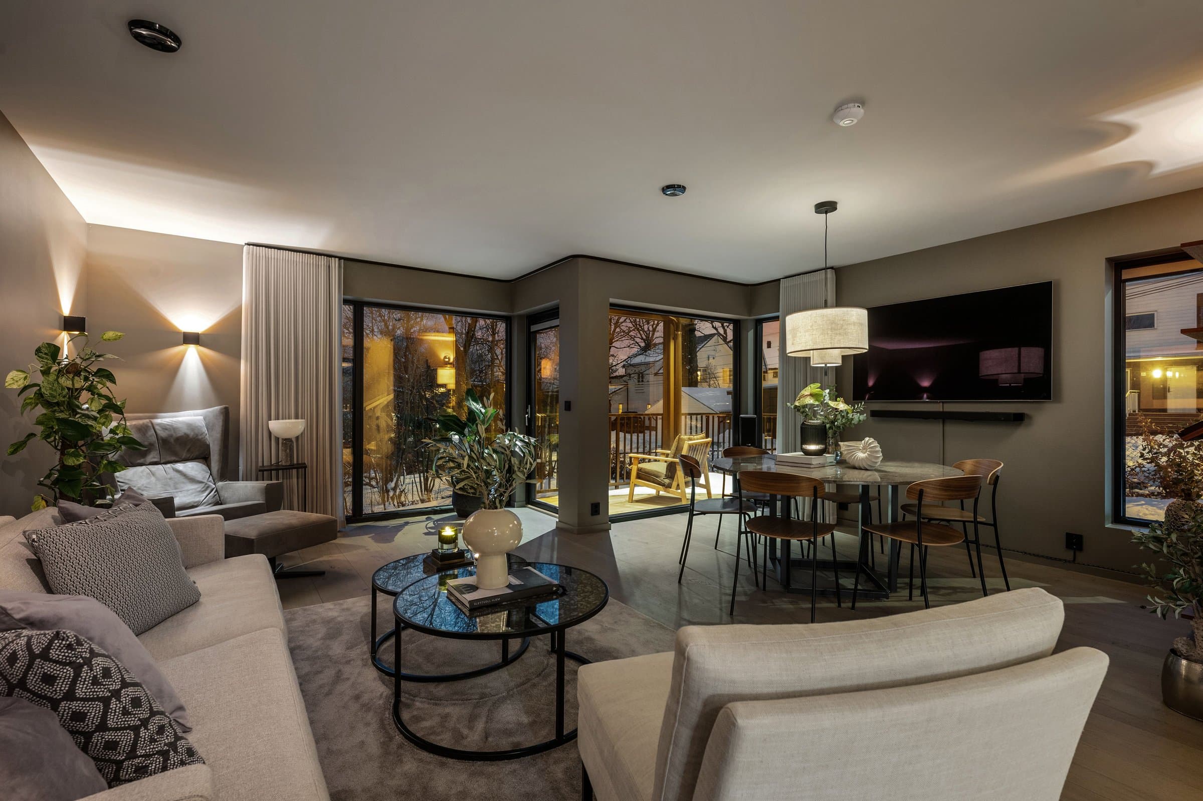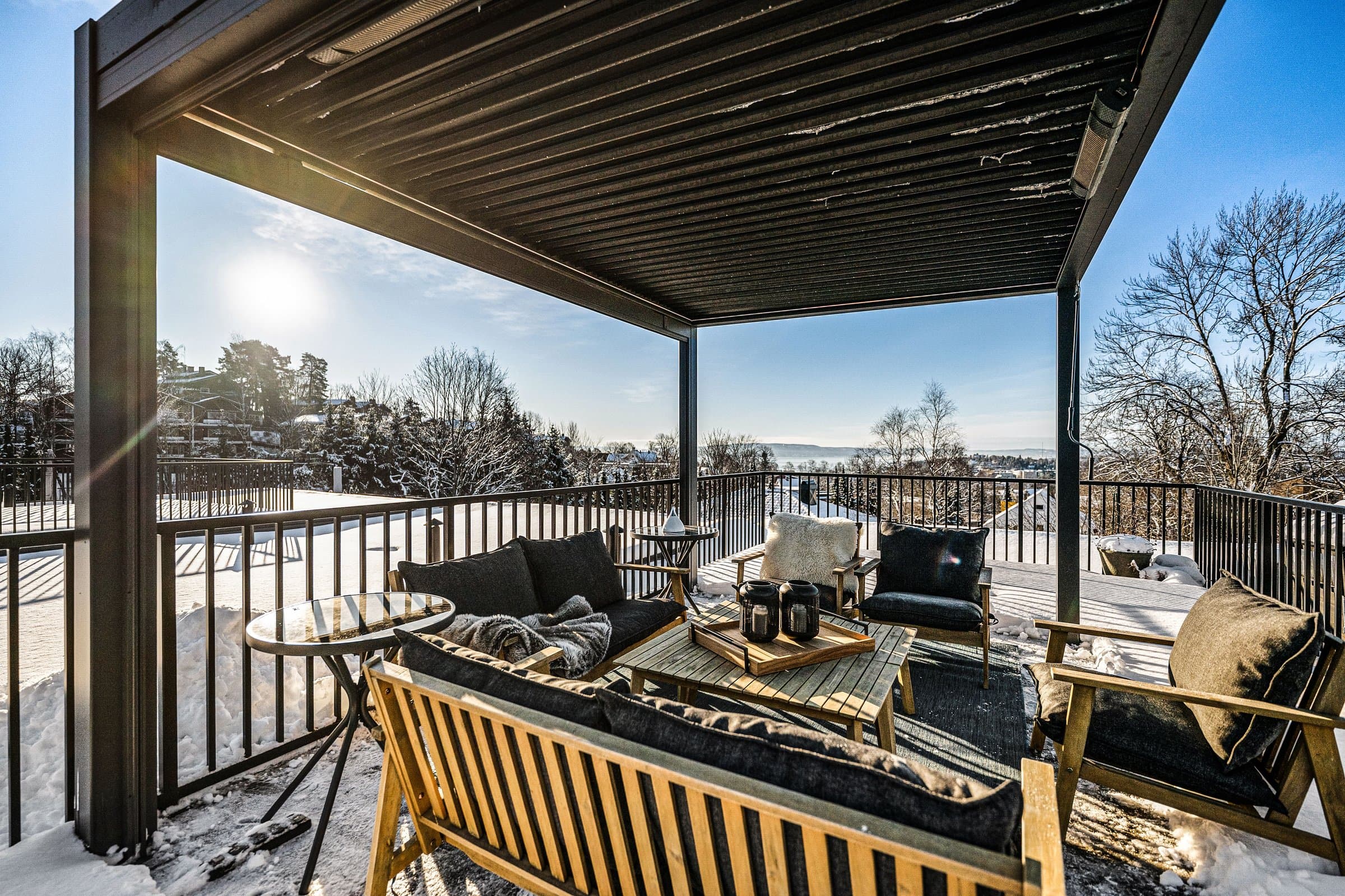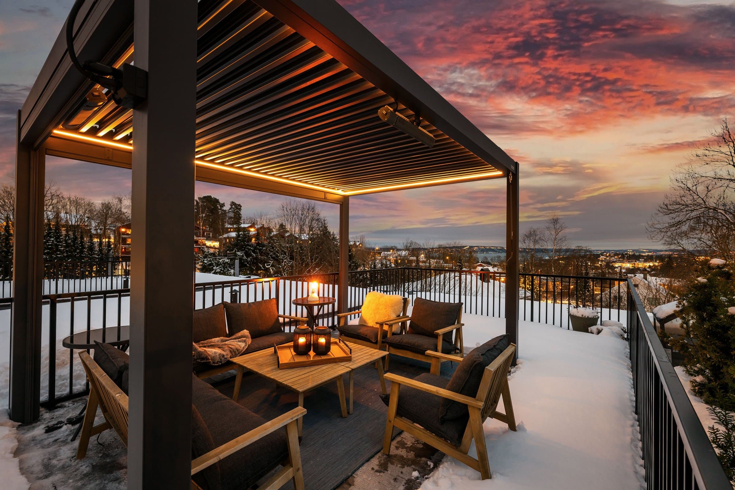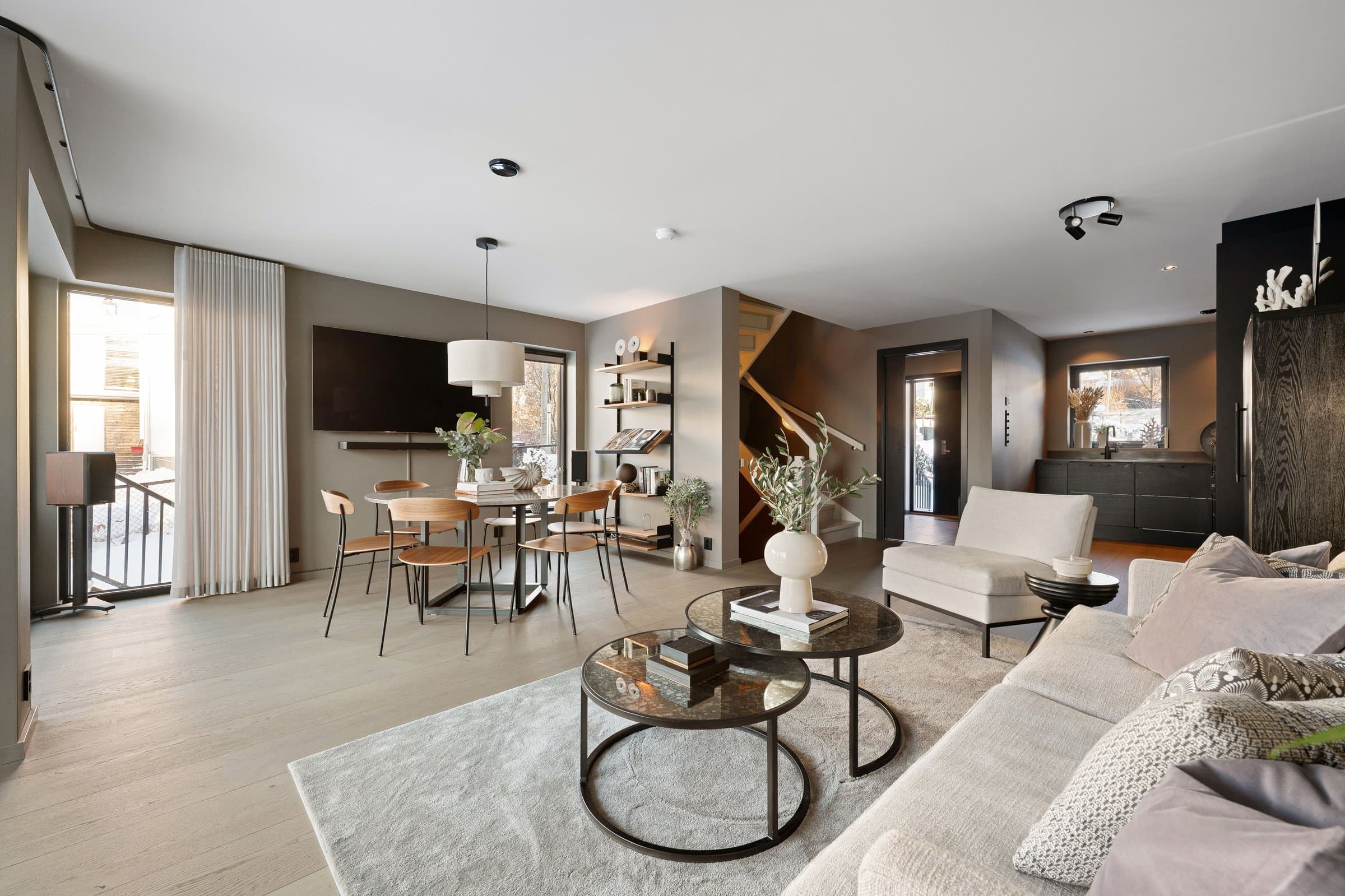 VELKOMMEN TIL HOFFSJEF LØVENSKIOLDS VEI 1M Dette flotte rekkehuset på Ullern har en romslig størrelse på 159 kvm fordelt over 3 etasjer. Med garasje/p-plass, balkong og takterrasse med pergola, bredbåndstilknytning og lademulighet for elbil, tilfredsstiller det moderne behov. Huset er barnevennlig med hage, har balansert ventilasjon og automatiserte screens med app-styring for godt inneklima, og tilbyr en fantastisk utsikt. Eiendommen har en sentral beliggenhet på Ullern i et fredelig og barnevennlig villastrøk med hovedsakelig eneboliger som har kort vei til skoler i alle trinn, barnehager, gangavstand til offentlig kommunikasjon, kjøpesenter, idrettsanlegg, samt et rikt servicetilbud i Oslo sentrum og omegn. Et flott og moderne rekkehus med attraktiv beliggenhet i en rolig, familievennlig og trafikkstille gate på Ullern. Boligen fordeler seg over tre plan og har en fin planløsning bestående av bl.a. tre gode soverom på samme plan, to delikate bad, toalettrom ved inngangsparti, vaskerom, romslig stue og kjøkken i åpen løsning. I tillegg er det etablert hybel i kjeller med egen separat inngang. Den har åpen stue- og kjøkkenløsning med tilstøtende sovealkove og bad med vaskemaskin. Boligen har to balkonger (5 og 4 kvm), markterrasse ( 21 kvm) med hage samt en flott stor pergola (ca. 12 kvm) på solrik takterrasse (29 kvm) med nydelig utsikt over Oslo by og fjord. Parkering i carport med el‑bil lader. Vel møtt til en hyggelig visning