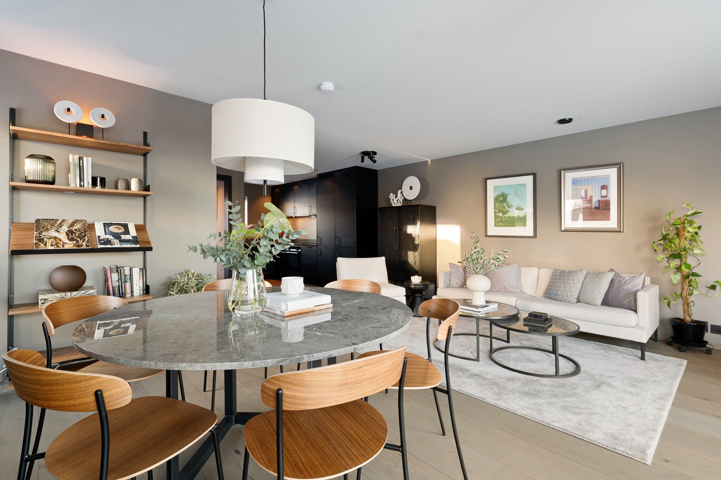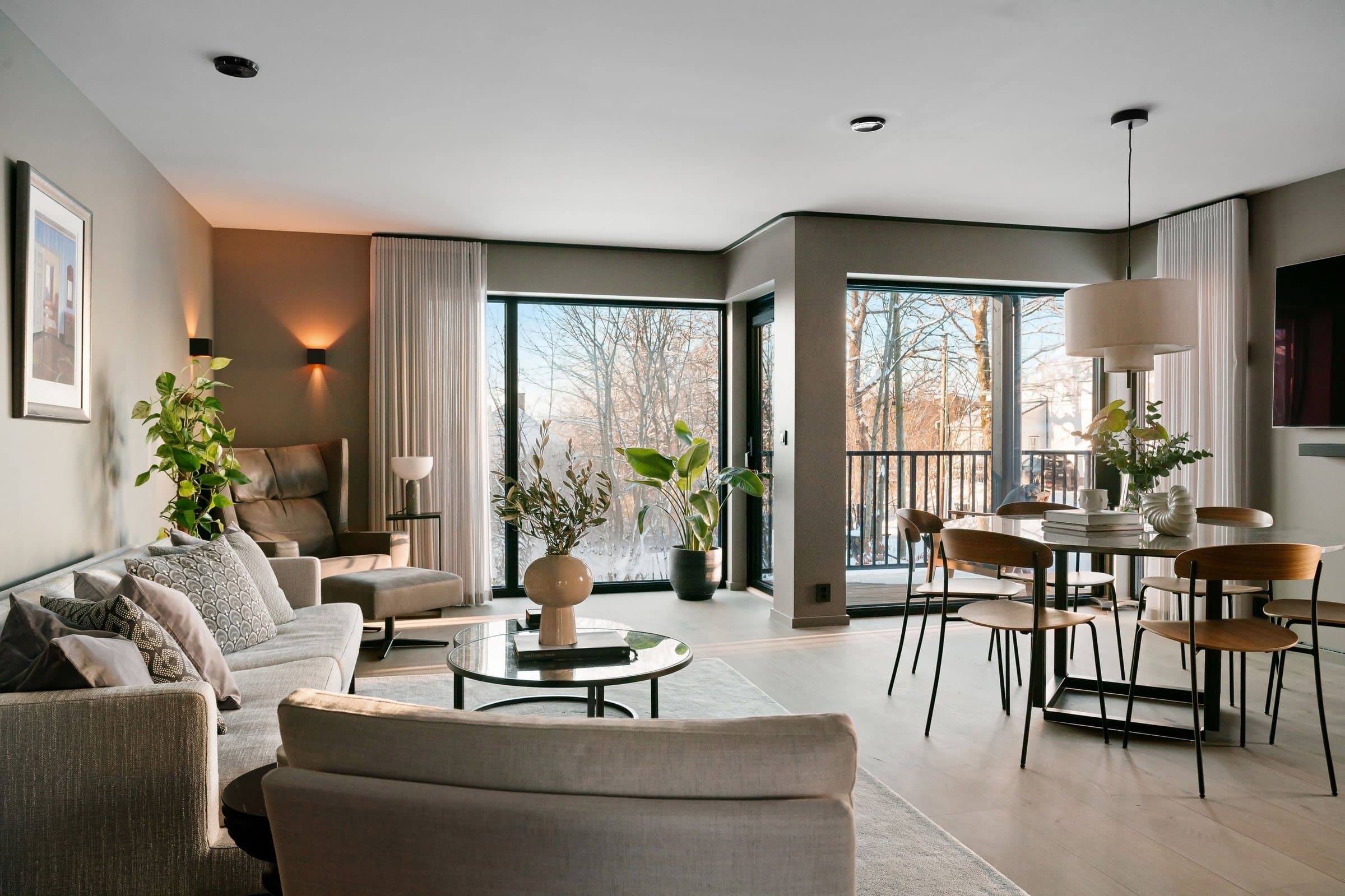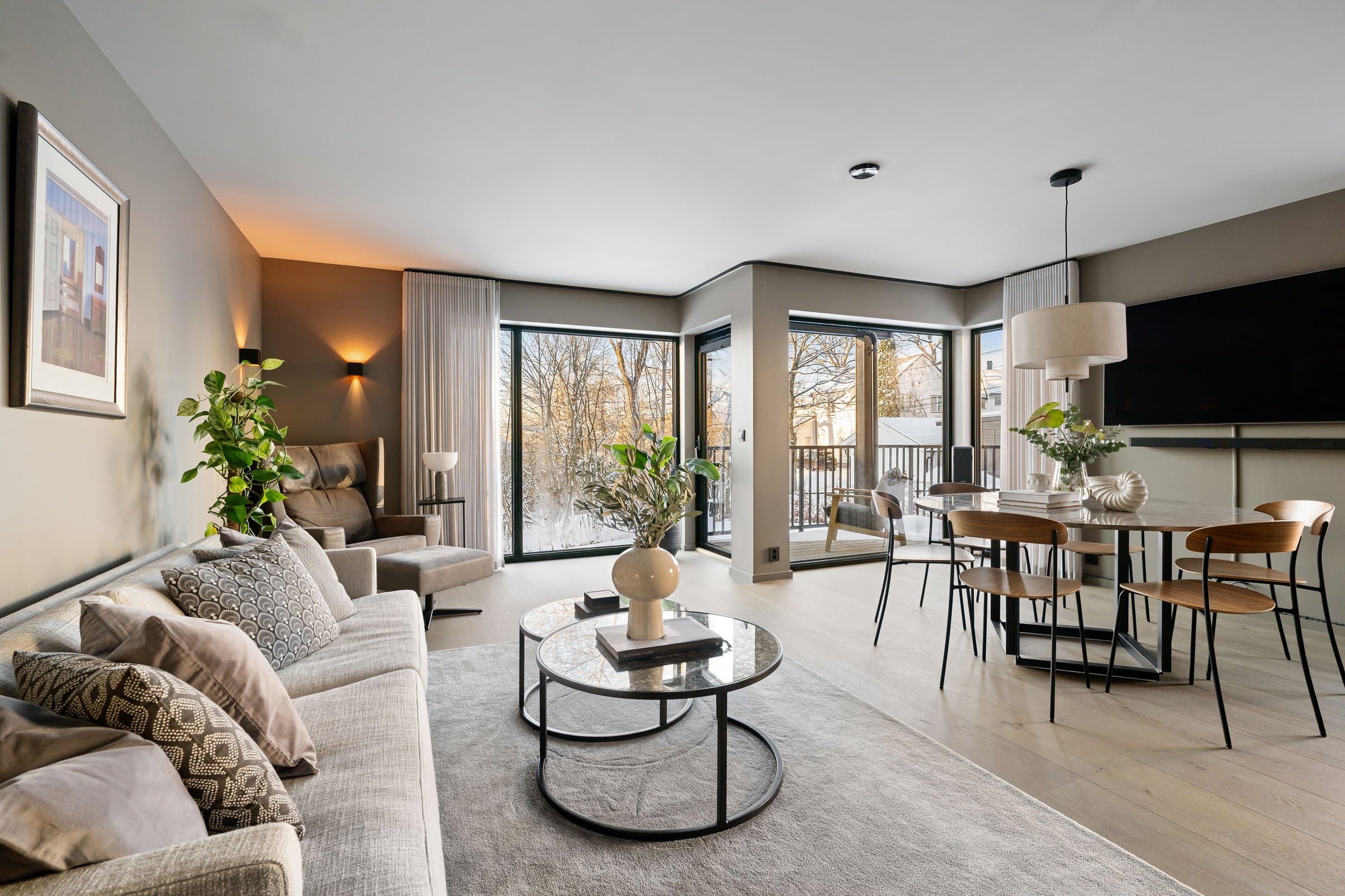 Beliggenhet Eiendommen ligger i et attraktivt boligområde på Ullern i Oslo med kort vei inn til sentrum og til flotte tur‑ og friluftsområder som kan benyttes sommer som vinter. Ullern ligger sørvest i Oslo, mellom Lysakerelven og Mærradalen. Nærområdet består av rolige villastrøk, supplert med blokkbebyggelse. Fra boligen er det gangavstand til skoler, barnehager og et godt kollektivtilbud. Det er kun 4-5 minutters gange fra boligen til Åsjordet T bane stasjon med linje 3, som tar deg til sentrum på 10 minutter. Nærmeste busstasjon er Blokkajordet. Nærmeste matbutikk er Kiwi - ca 3 min gange. Kort vei til Lilleaker som har godt utvalg i butikker og spisesteder, bla. Kiwi og Coop, Nishi Sushi, Cafe Grønn og frisør. For den aktivitetslystne kan Ullern Idrettsforening tilby bandy, basketball, fotball, håndball og gymnastikk. Ullern Tennisklubb ligger idyllisk til på Blokkajordet ved Ullern Kirke og har et høyst moderne tennisanlegg til helårsbruk. I tillegg er det kort vei til lekeplass, idrettshall, treningssenter, butikker og det populære handlesenteret CC Vest. Langs Lysakerelva er det fine gangveier som kan fører deg ned til Lysaker brygge med flott utsyn over Oslofjorden, eller opp helt opp til Bogstadvannet, Bogstad golfbane og Bogstad gård med kafé og ulike kulturelle tilbud. Golfbanen ved Bogstadvannet, i bunnen av Holmenkollåsen, er ifølge golfentusiaster den mest attraktive banen i landet, og er en av de få banene i Norge med internasjonal konkurransestandard. I retning Sørkedalen og Tryvann finnes det også turløyper for enhver smak. Idylliske Vækerø park (ca. 2,3 km) er en godt bevart hemmelighet for de som er kjent i området. Her er det grønne og flott beplantede lunger, gressplen og stier, samt benker, brygger og mulighet for bading. I vestre ende av parken ligger pent opparbeidede Sollerudstranda som også har en fin gresslette med mulighet for ballspill. Skolekrets Ta kontakt med skolekontoret i Oslo kommune, tlf. 21 80 21 80 for nærmere informasjon Barnehage/ Skole/ Fritid Se nabolagsprofil