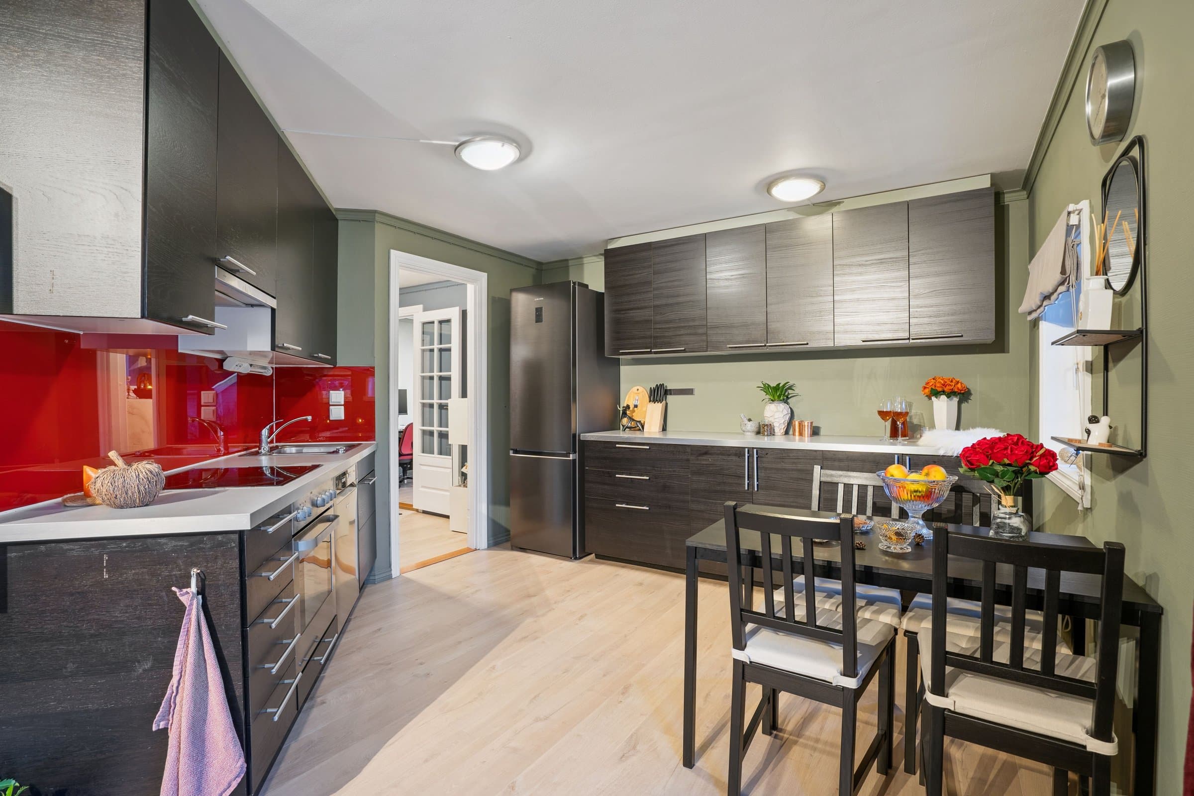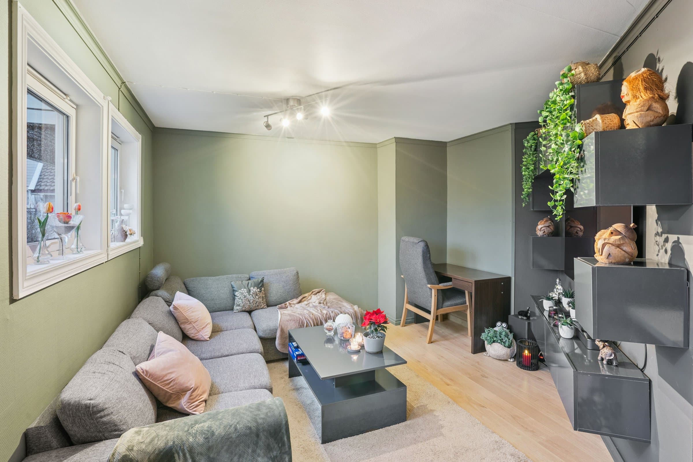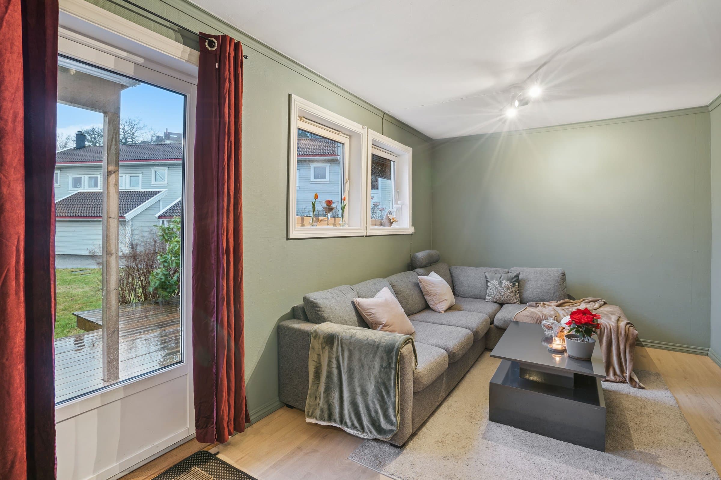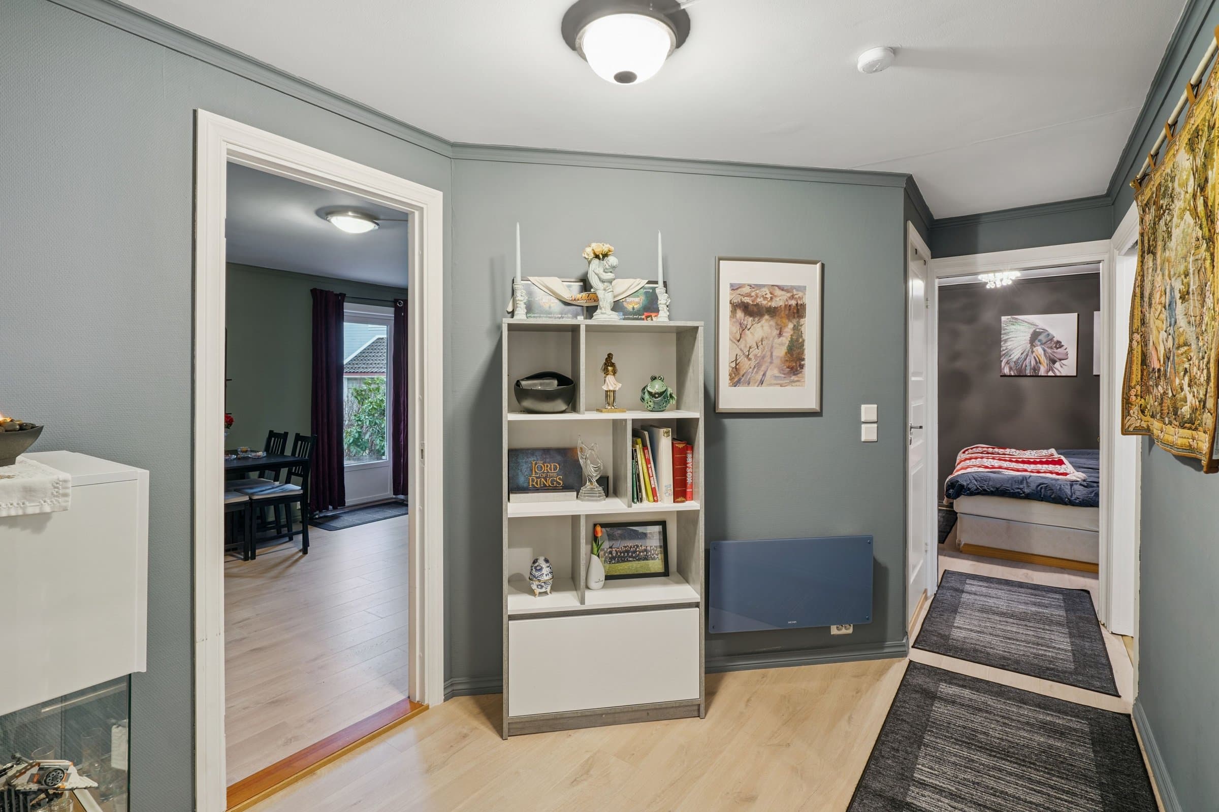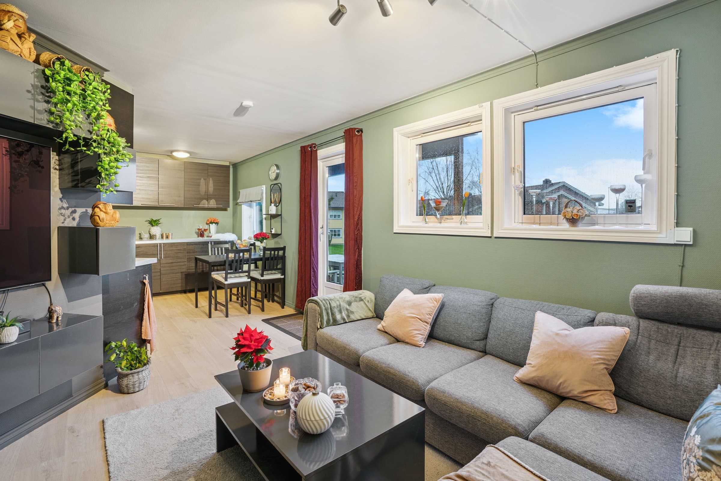 Denne boligen byr på en svært god romfordeling og en praktisk planløsning med alt på ett plan. Her bor du sentralt, men likevel med et stort uteområde rett ut verandadøren så passer godt for folk med dyr. Boligen har et stort og innbydende kjøkken med rikelig plass, samt god lagringsplass som gjør hverdagen enkel og organisert.