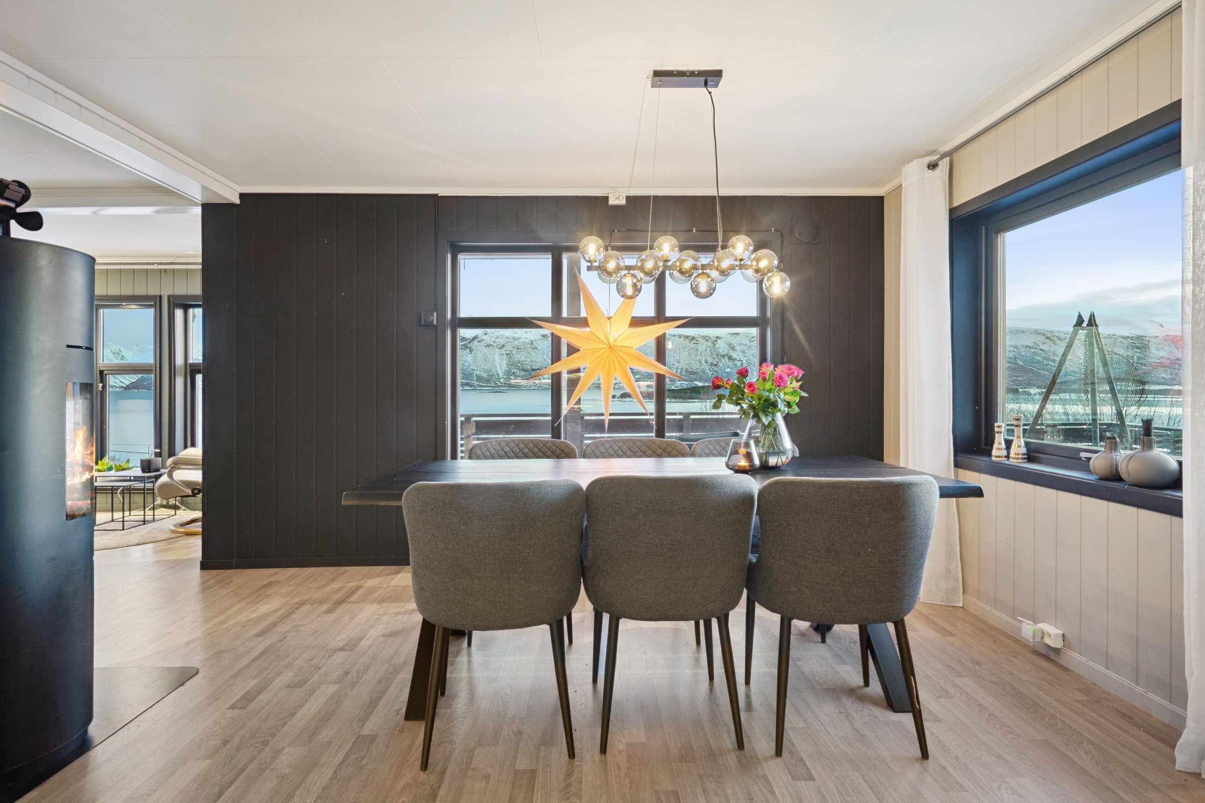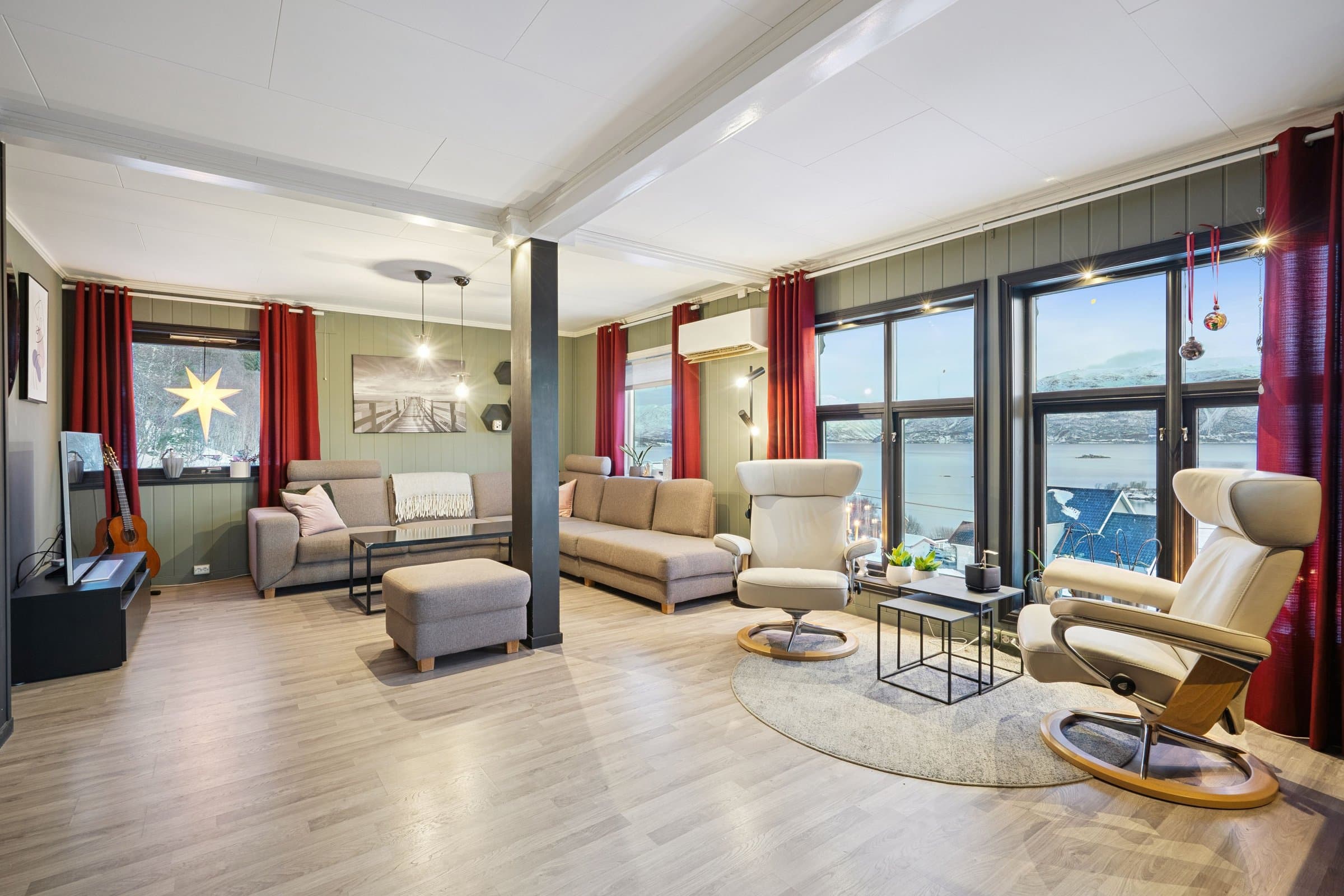 Velkommen til Øvre Jensvoll vei 16, en romslig bolig med en flott beliggenhet i hjertet av Lyngseidet. Denne sjarmerende boligen har 4 soverom, alternativt 3 soverom og loftstue med fantastisk utsikt som vist på plantegningene. Et ideelt sted for både små og store familier. I tillegg har eiendommen et aneks med tre oppholdsrom og romslig garasje. Boligen er godt vedlikeholdt, og du får rikelig med naturlig lys gjennom store vinduer. Utsikten fra eiendommen er en fryd for øyet, med panoramautsikt til fjord og fjell, noe som gir deg en følelse av å bo i et eventyrland.