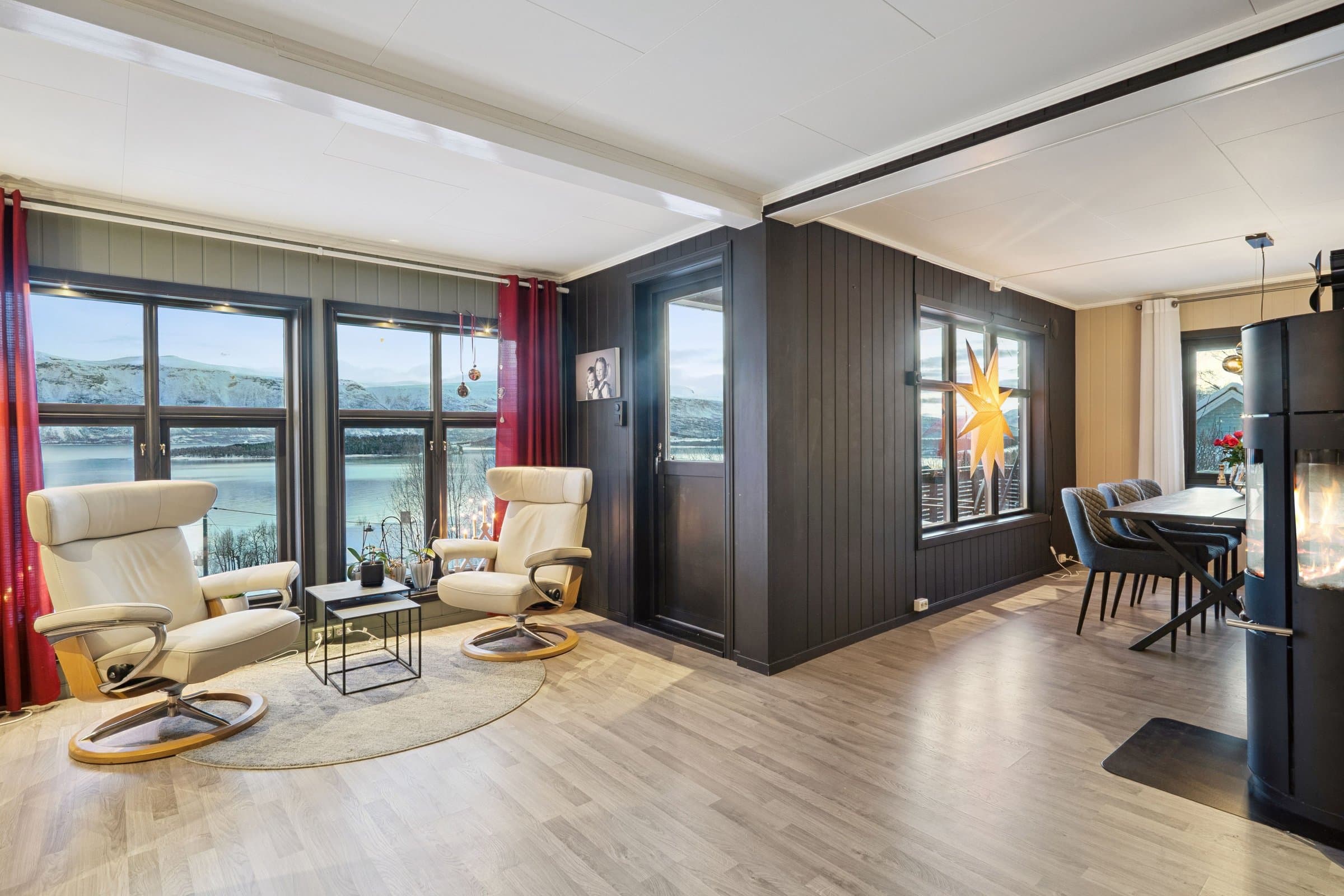 Boligen har en attraktiv beliggenhet i et etablert og rolig boligområde på Lyngseidet. Eiendommen ligger i hjertet av Lyngsalpene, med spektakulær natur rett utenfor døren. Lysløypa går rett i bakgården, noe som gir unike muligheter for langrenn, turgåing og trening året rundt – enten du er mosjonist eller friluftsentusiast. Området byr på fantastiske turmuligheter sommer som vinter, med kort vei til fjell, fjord og populære toppturdestinasjoner. Samtidig har du gangavstand til sentrum med skole, barnehage, butikker og øvrige servicetilbud, noe som gir en perfekt kombinasjon av naturnær beliggenhet og hverdagslig komfort.