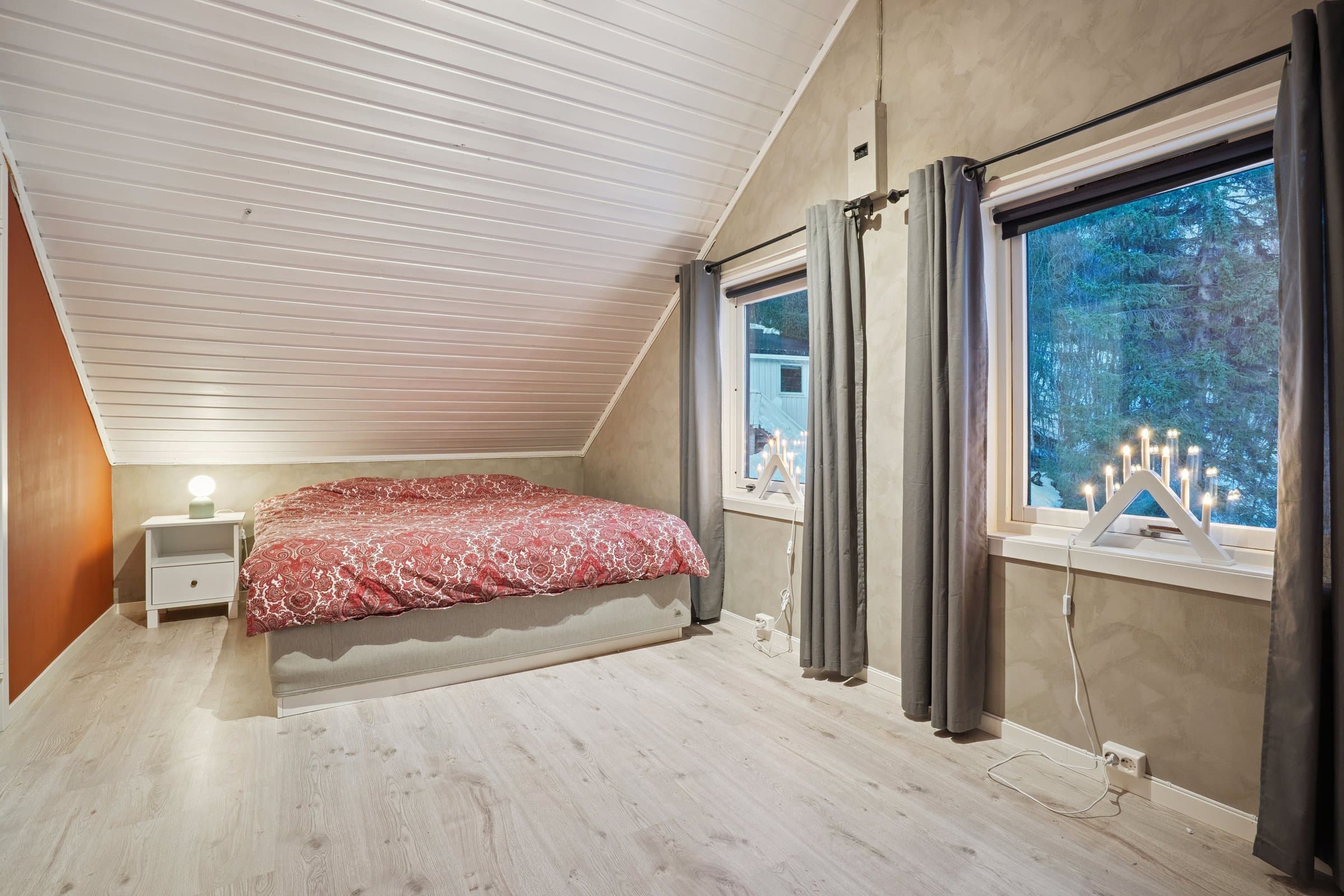 Totalt Bruksareal 197 m2 Totalt Bruksareal for hoveddel 148 m2 1985 - Tilbygg. Boligen ble utvidet og renovert. 2016 - Modernisering. Innvendig oppgradering av overflater og renovering av bad. Tekniske installasjoner ble fornyet og det ble skiftet ovn og montert varmepumpe. 2020 - Modernisering. Oppussing av entre og soverom på loft. Det ble også montert ny ytterdør og byttet en del vinduer. Ta gjerne kontakt for spørsmål eller hvis tidspunkt for visning ikke passer Vi ber om at eventuelle bud ikke har kortere akseptfrist enn klokken 12.00 første virkedag etter siste visning altså mandag 05.01.2026 klokken 12.00