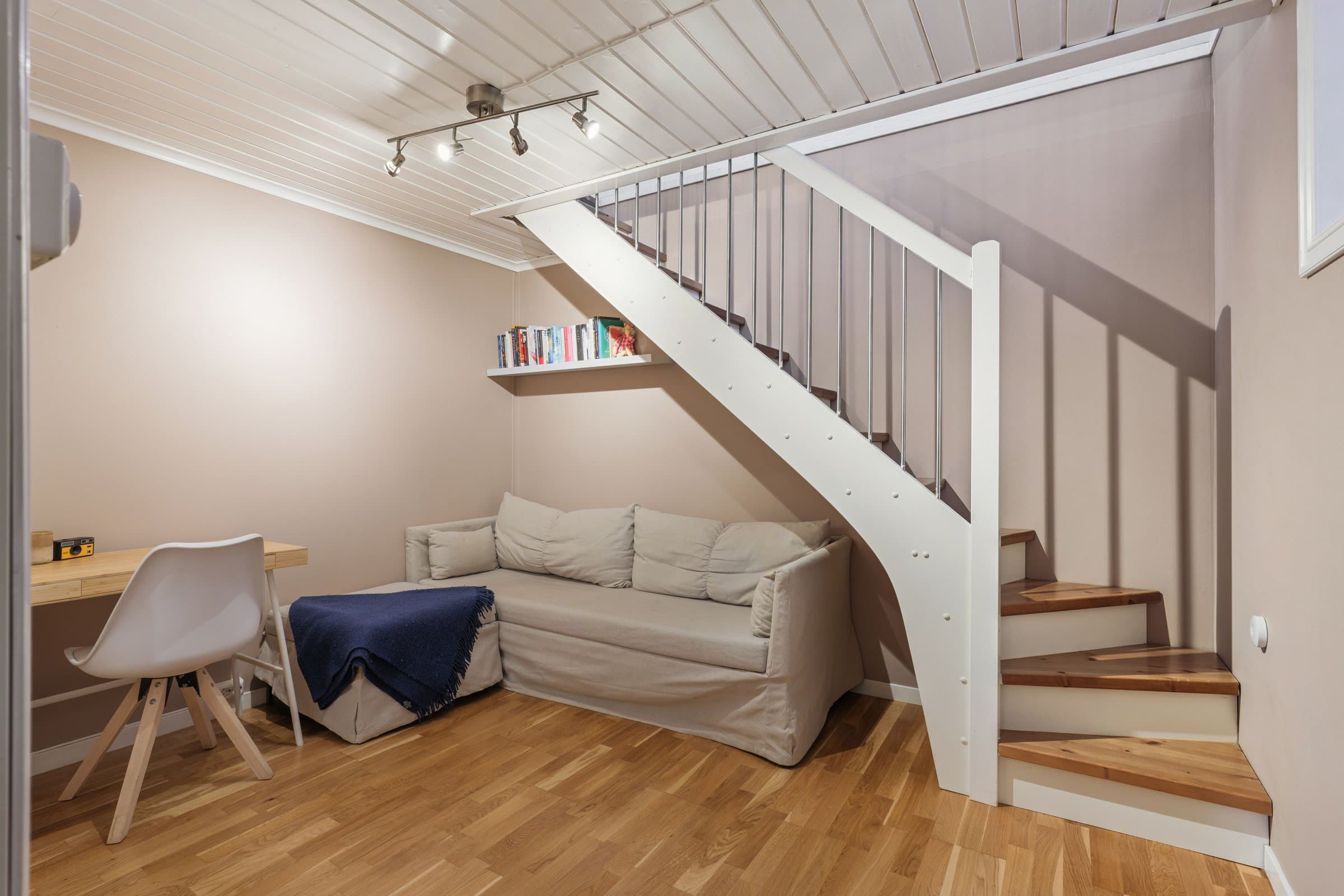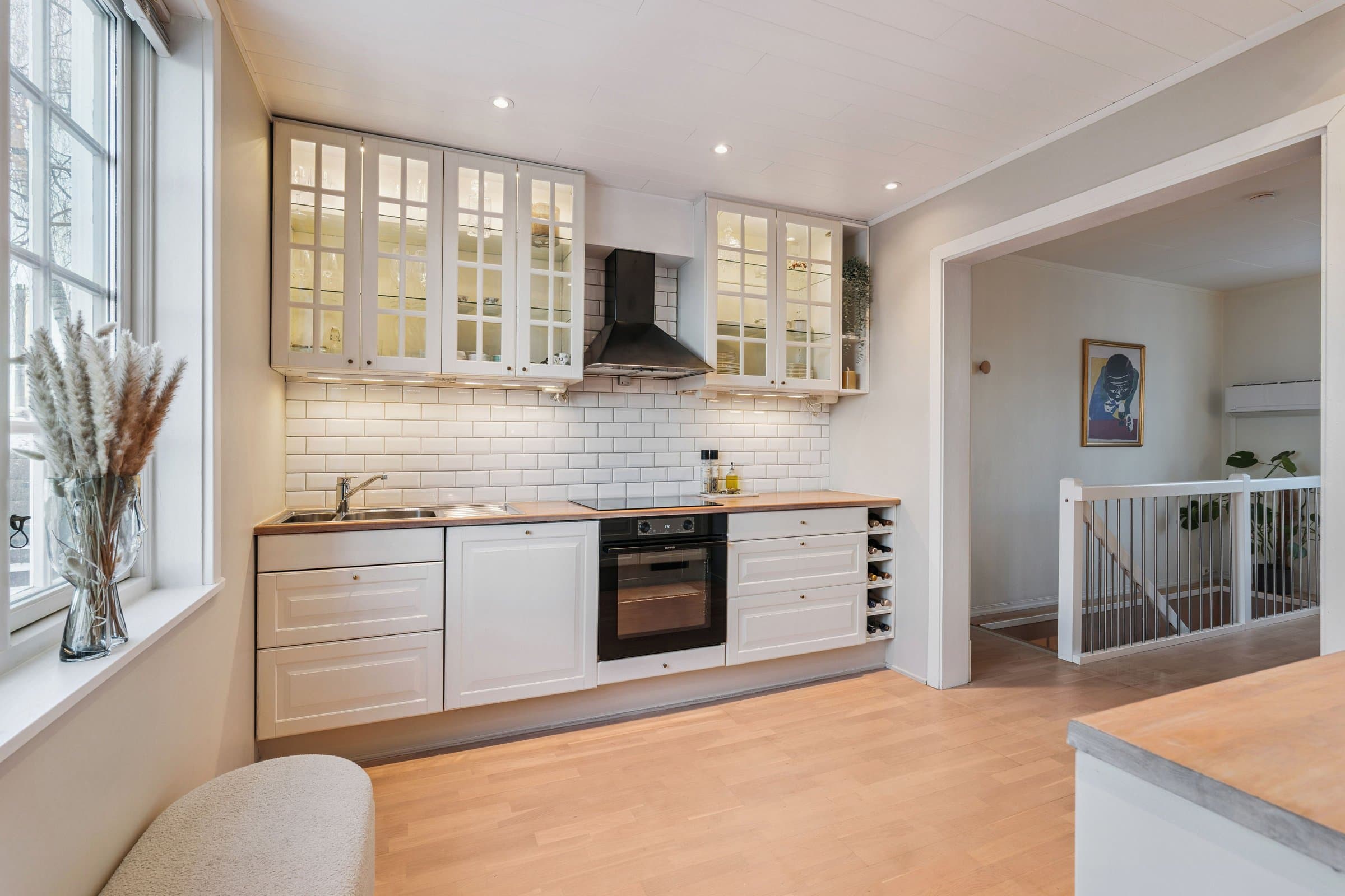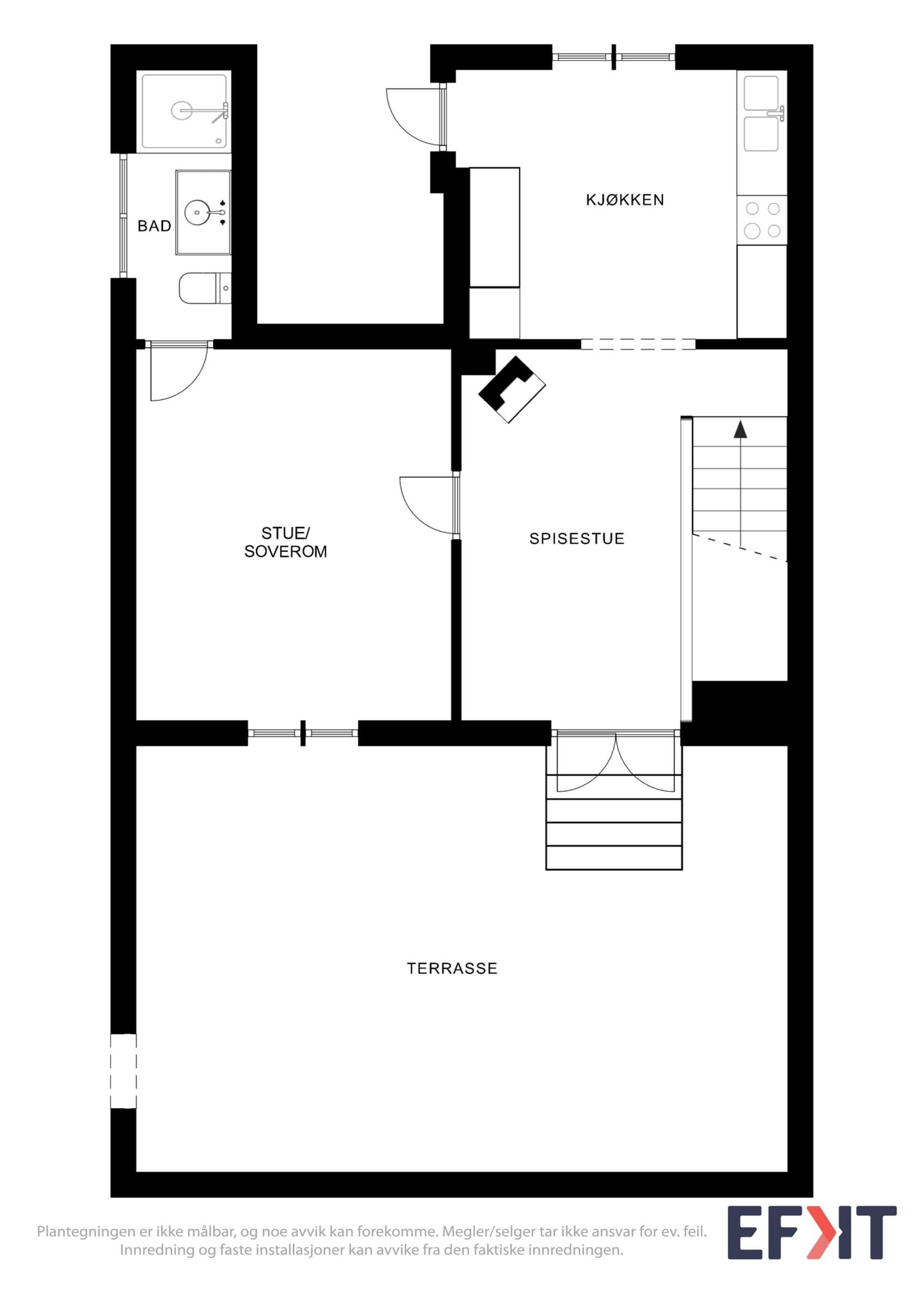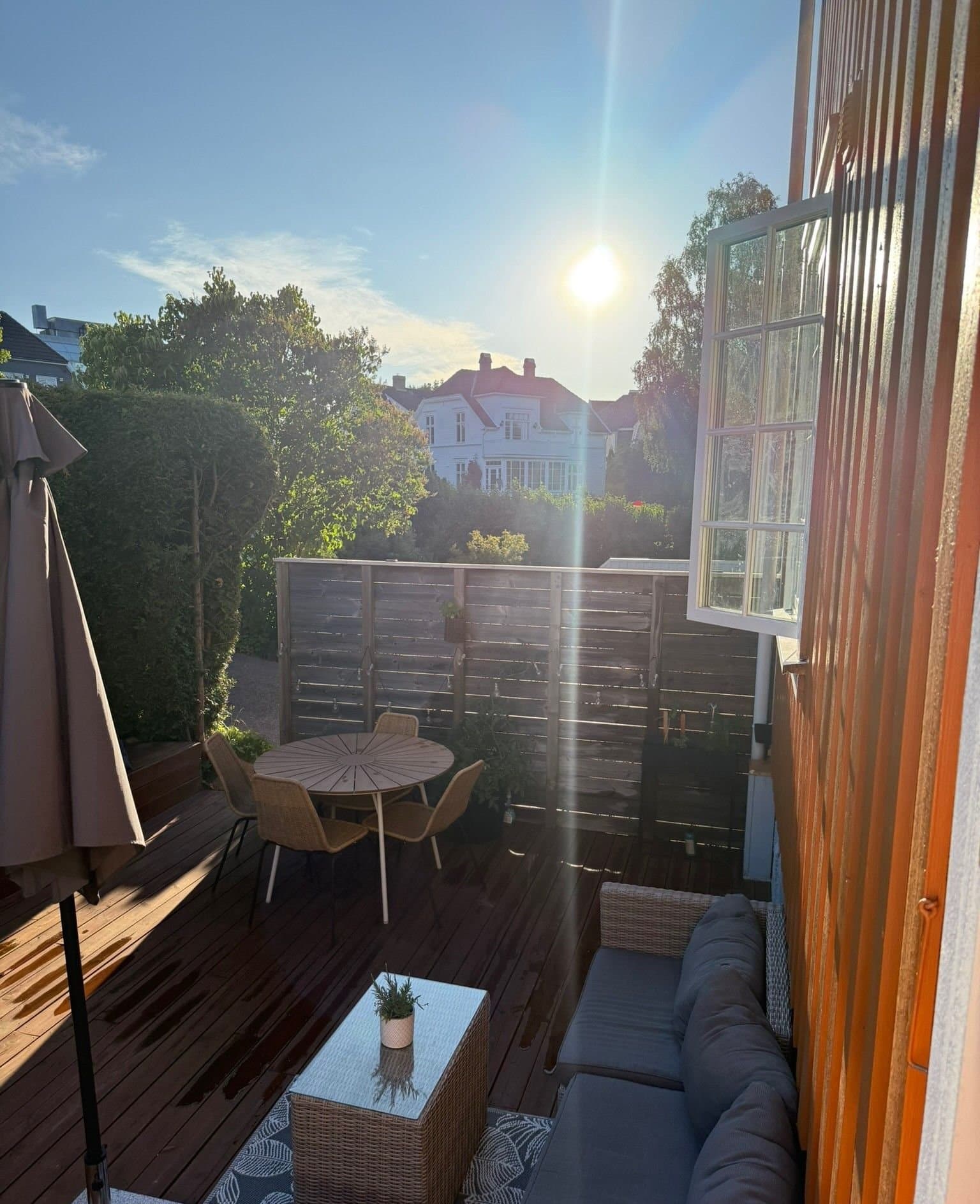 Lys og sjarmerende 2-etasjes leilighet med stor terrasse, peis og egen parkering.