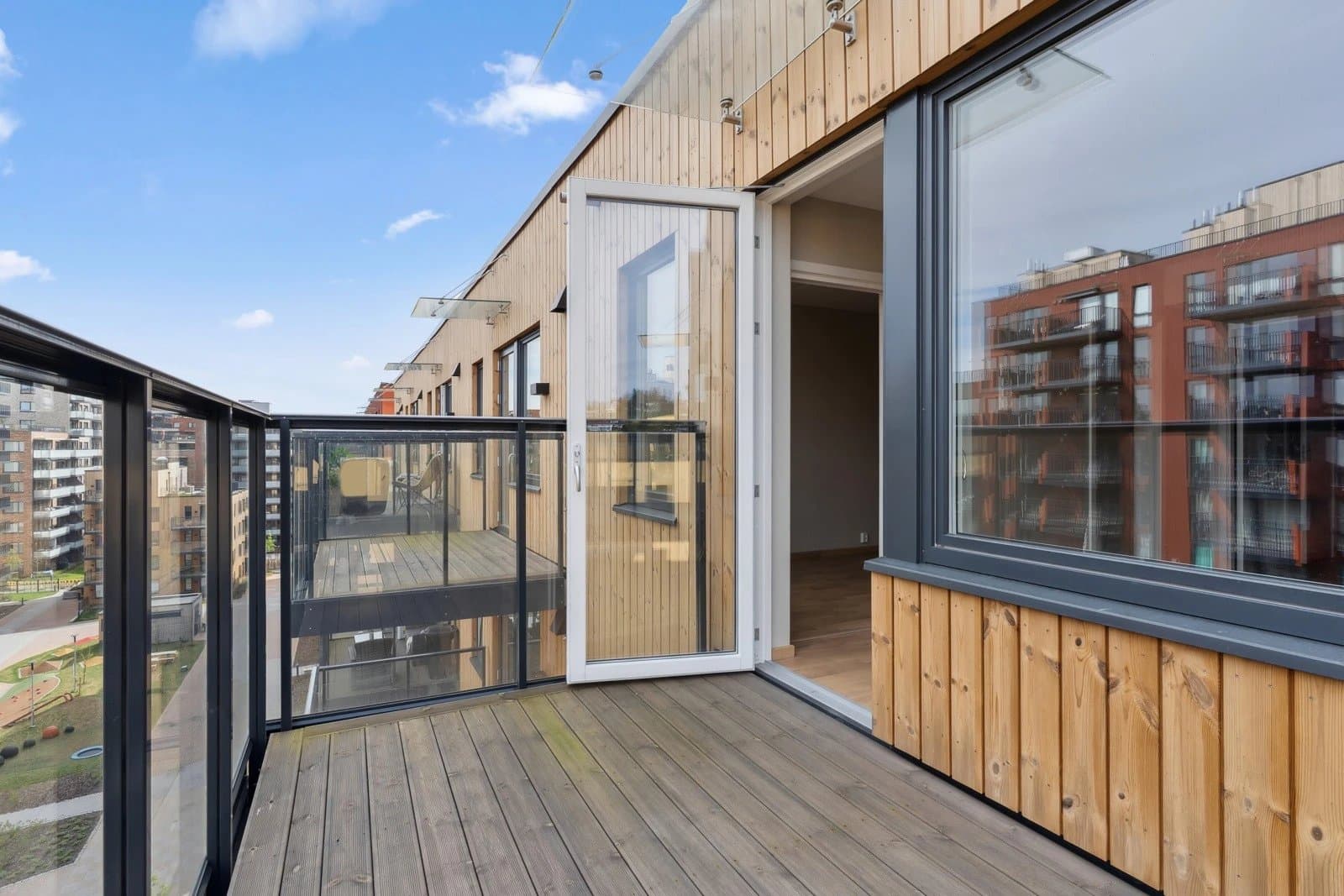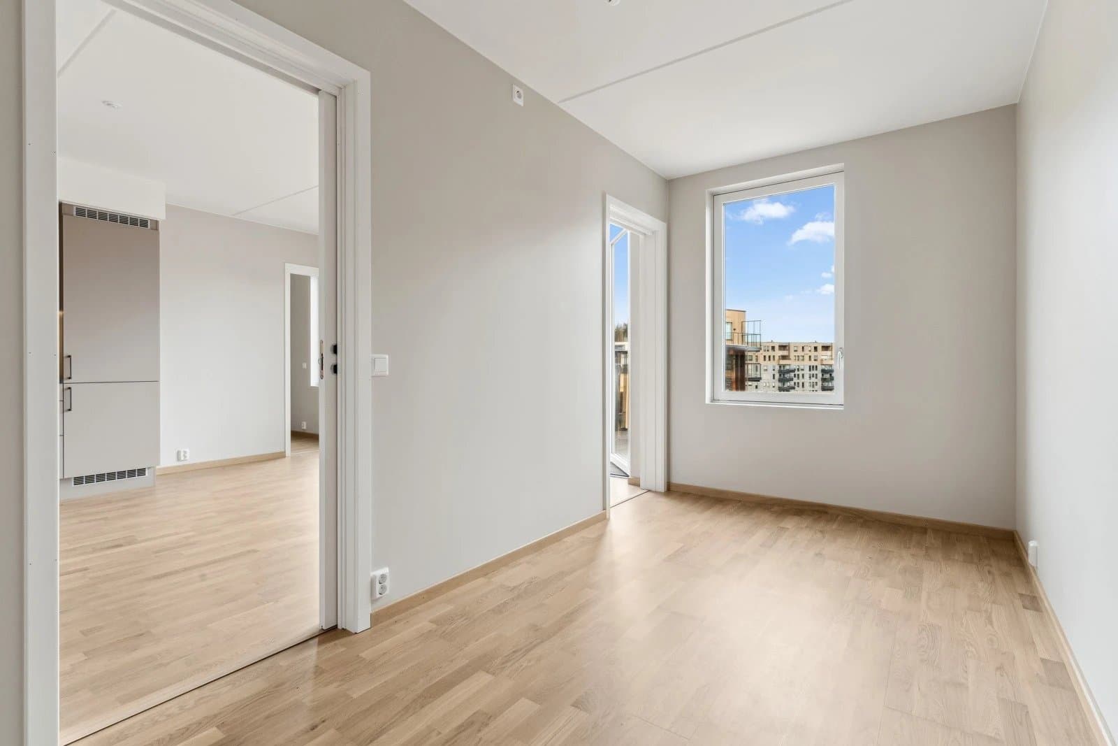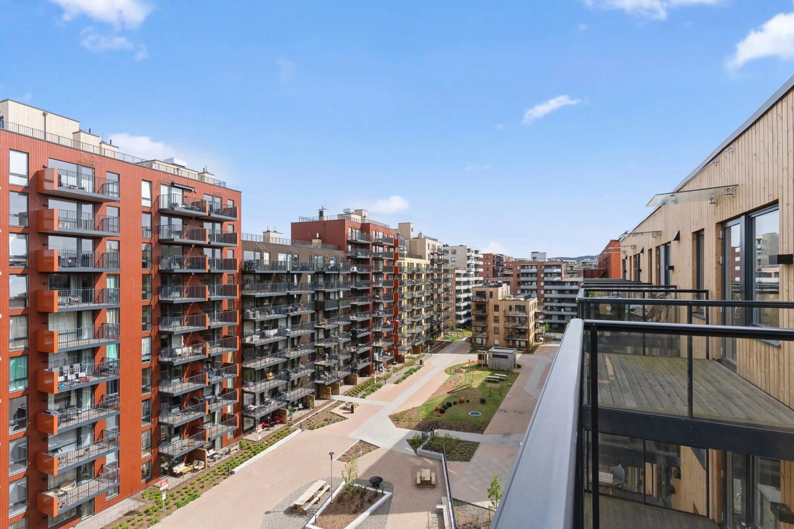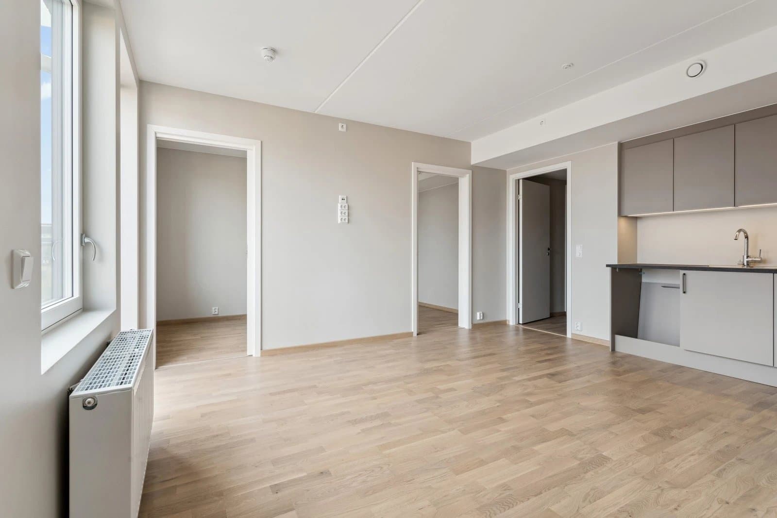 Velkommen til Bjarne Haugens Gate 45 En lys, moderne og ny/ubebodd 3-roms leilighet fra 2024, med attraktiv beliggenhet. Leiligheten ligger i 6. etasje og har utgang til en balkong med utsikt over fellesområdet. Leiligheten ligger i topp-etasjen i blokken. Siden leiligheten ble ferdigstilt har den vært ubebodd så ny kjøper blir eventuelt den første som flytter inn i boligen. Det vil bli ordnet med integrerte hvitevarer og lamper før overtakelse til ny kjøper. I fellesutgiftene inkluderes blant annet bredbånd/internett og kabel-tv. Korte trekk om leiligheten: - Følger med egen "større" parkeringsplass i garasjeanlegg - Romslig balkong på 7 kvm - Moderne løsninger: Balansert ventilasjon med varmegjenvinning og termostatstyrte radiatorer tilknyttet fjernvarme. - Energivennlig: Energimerke Grønn A - Felles fasiliteter: Stor felles takterrasse med sol hele dagen - Nybygg garanti på 5 år fra ferdigstilling (2024) - Ingen dokumentavgift: Lavere omkostninger ved kjøp - IN-ordning: Ved innfrielse av fellesgjelden blir felleskostnader kr 3.559,- ca Nærhet til alt: Kort vei til Lørenskog sentrum, Triaden kjøpesenter og bussholdeplass Dette er en perfekt leilighet for de som ønsker en moderne bolig i et område i sterk vekst, med nærhet til alle servicetilbud.