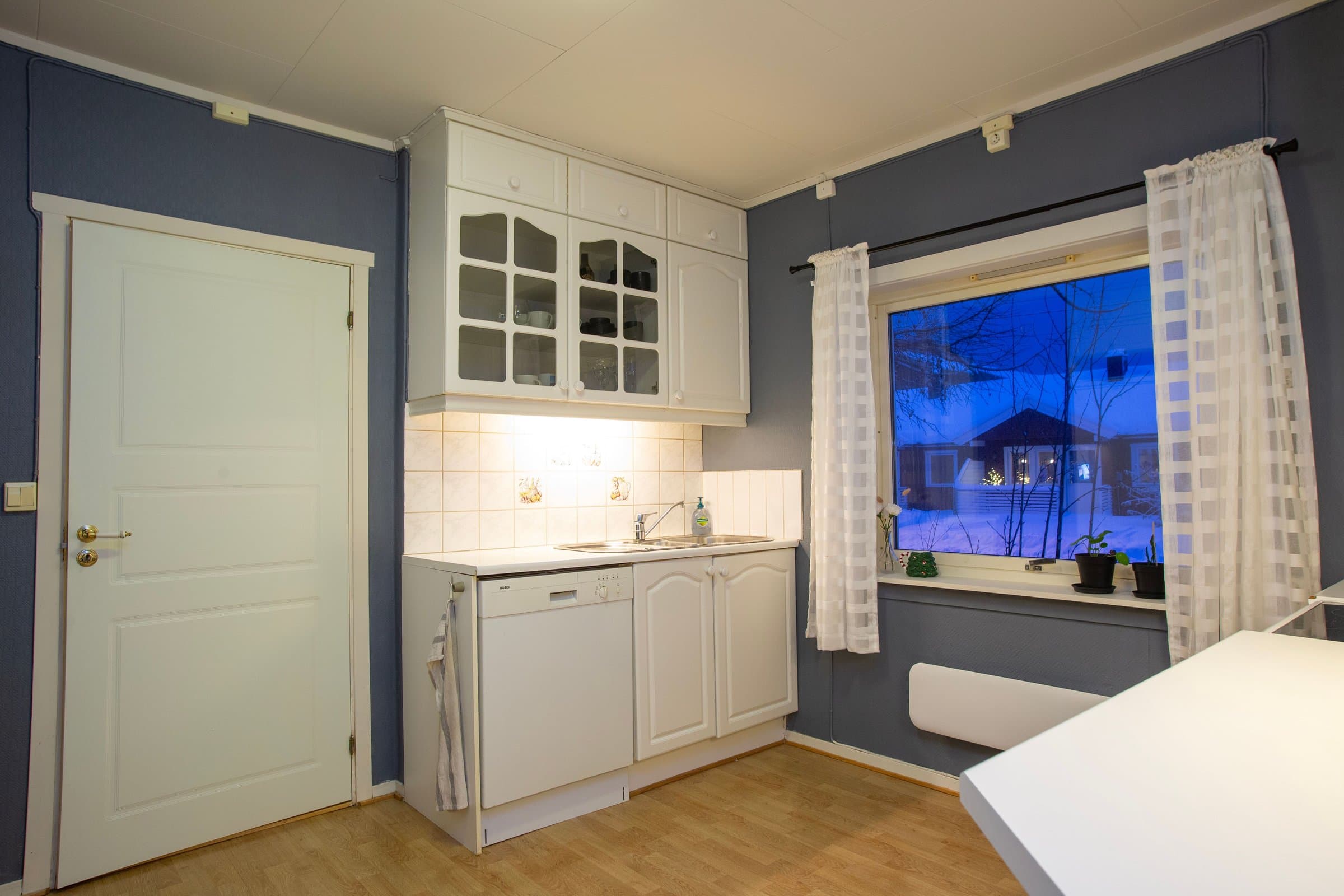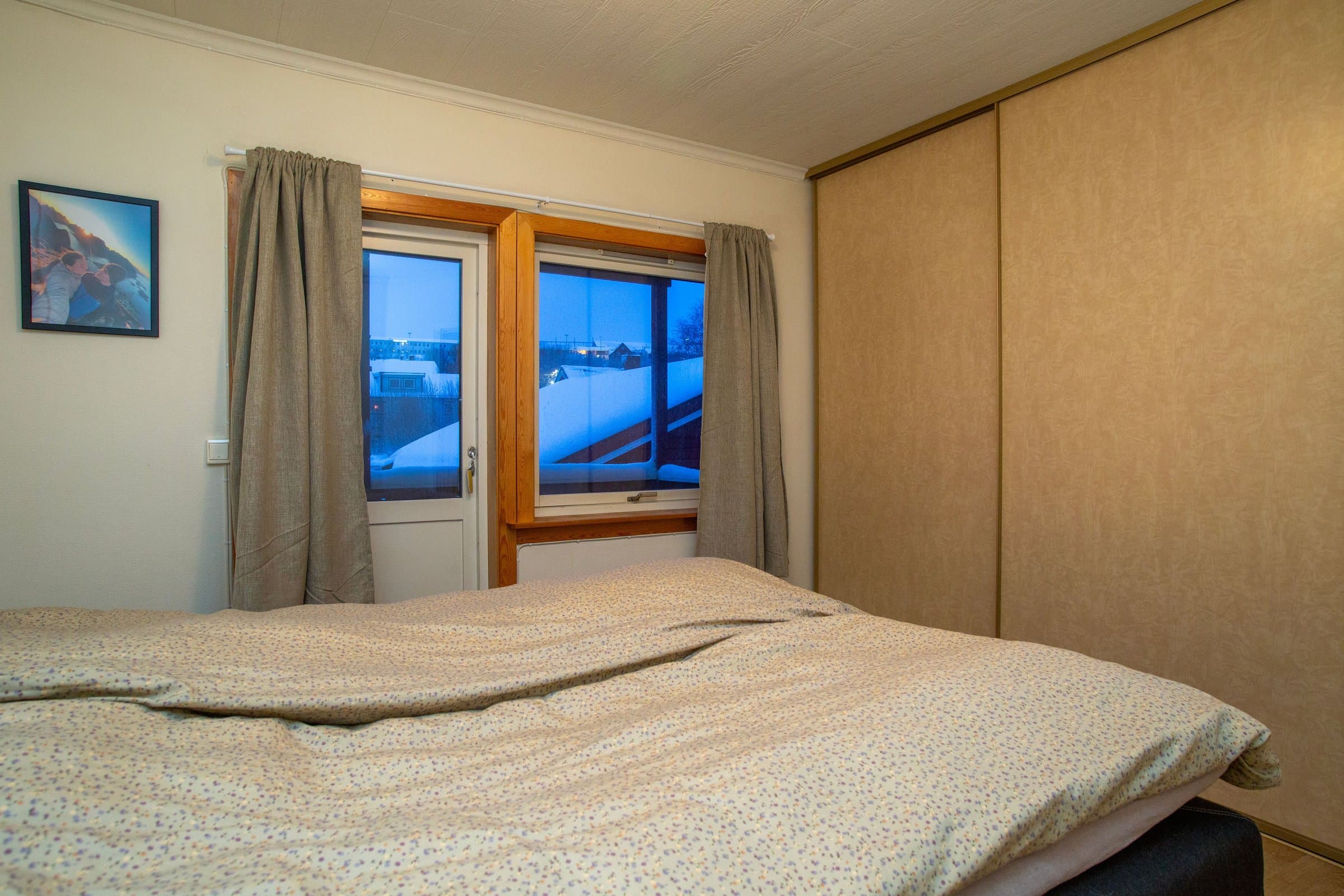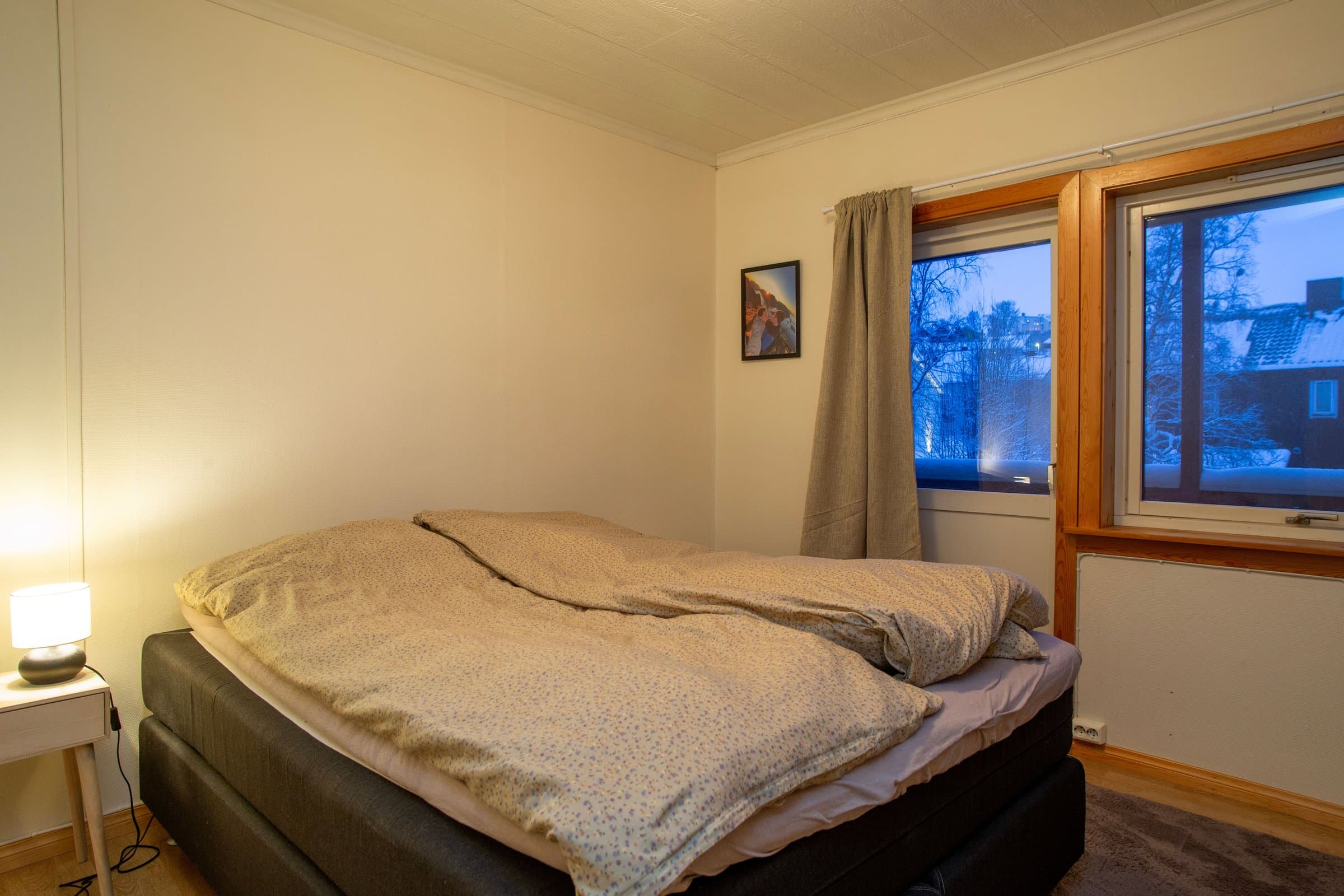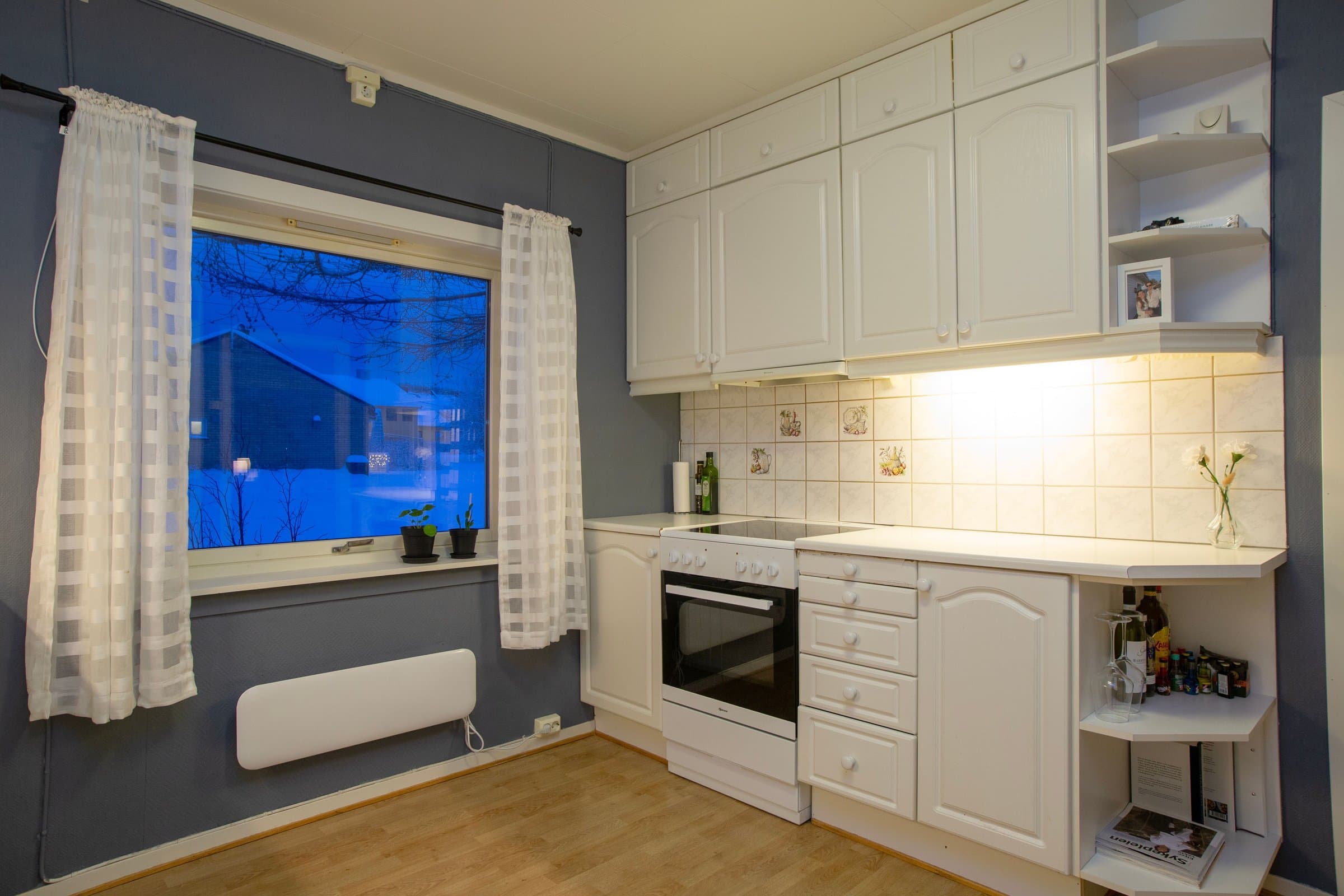 Boligen ligger i en stille gate, med umiddelbar nærhet til skole, barnehage og Kirkenes Sentrum