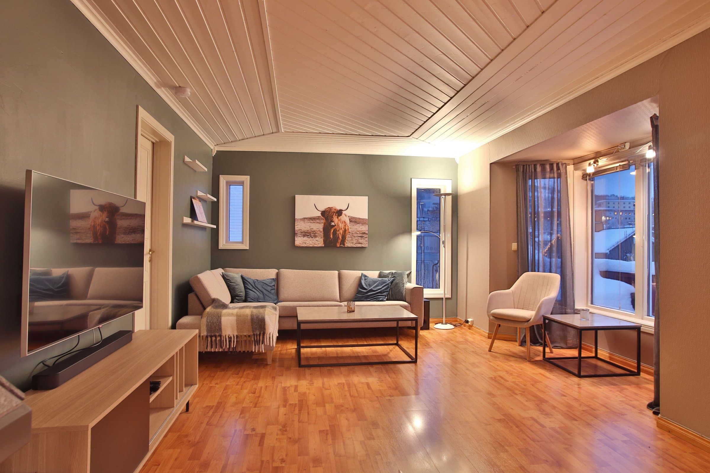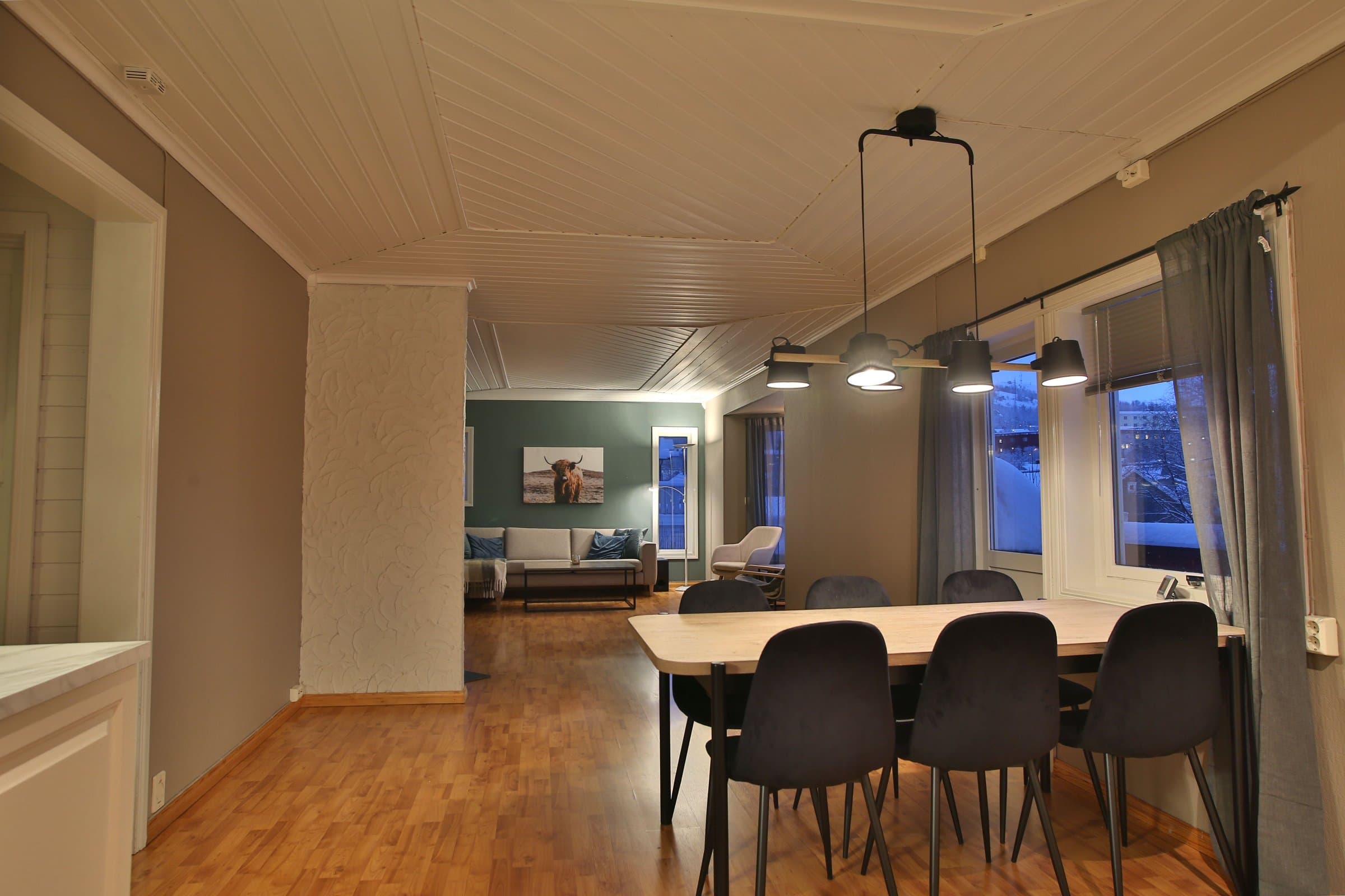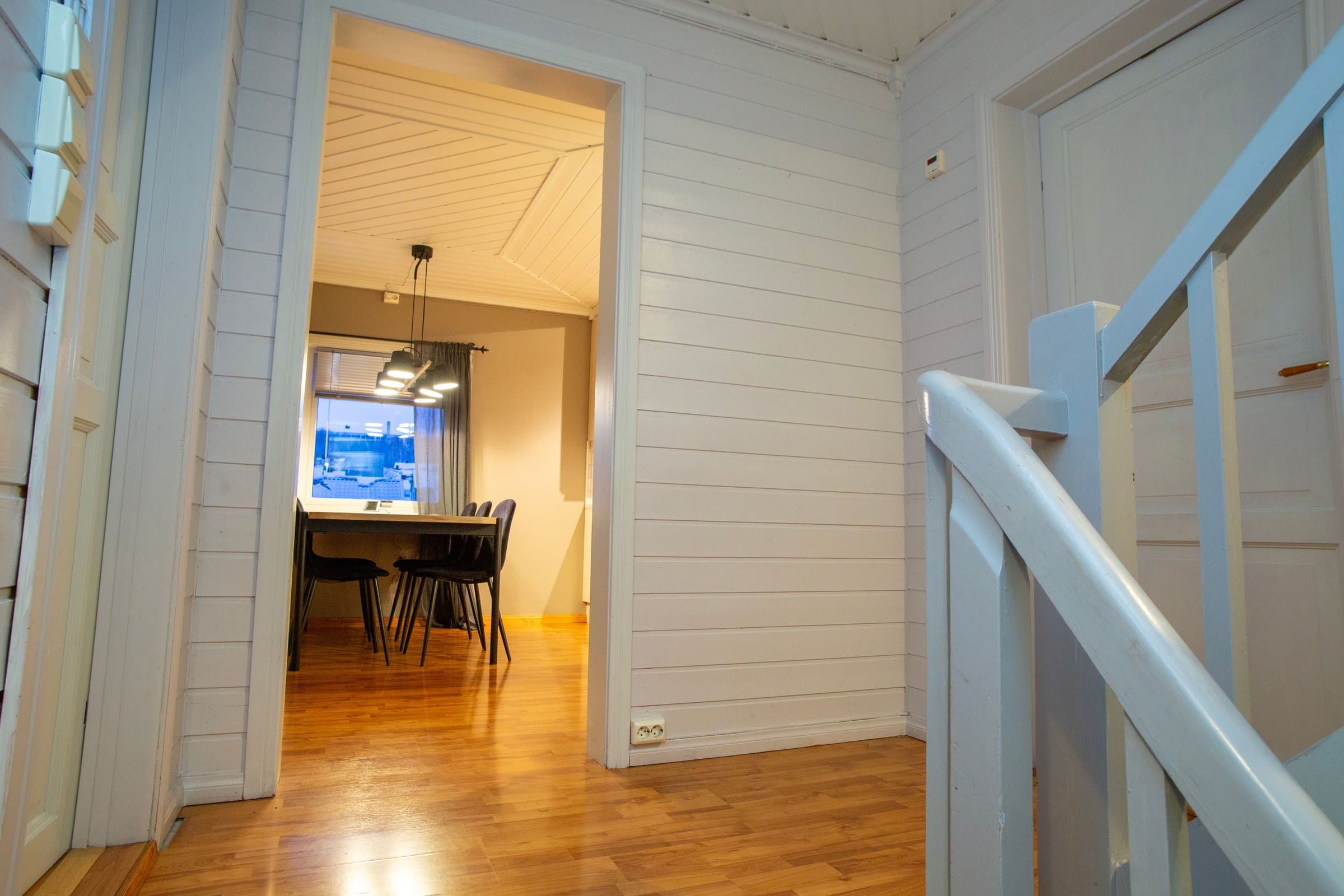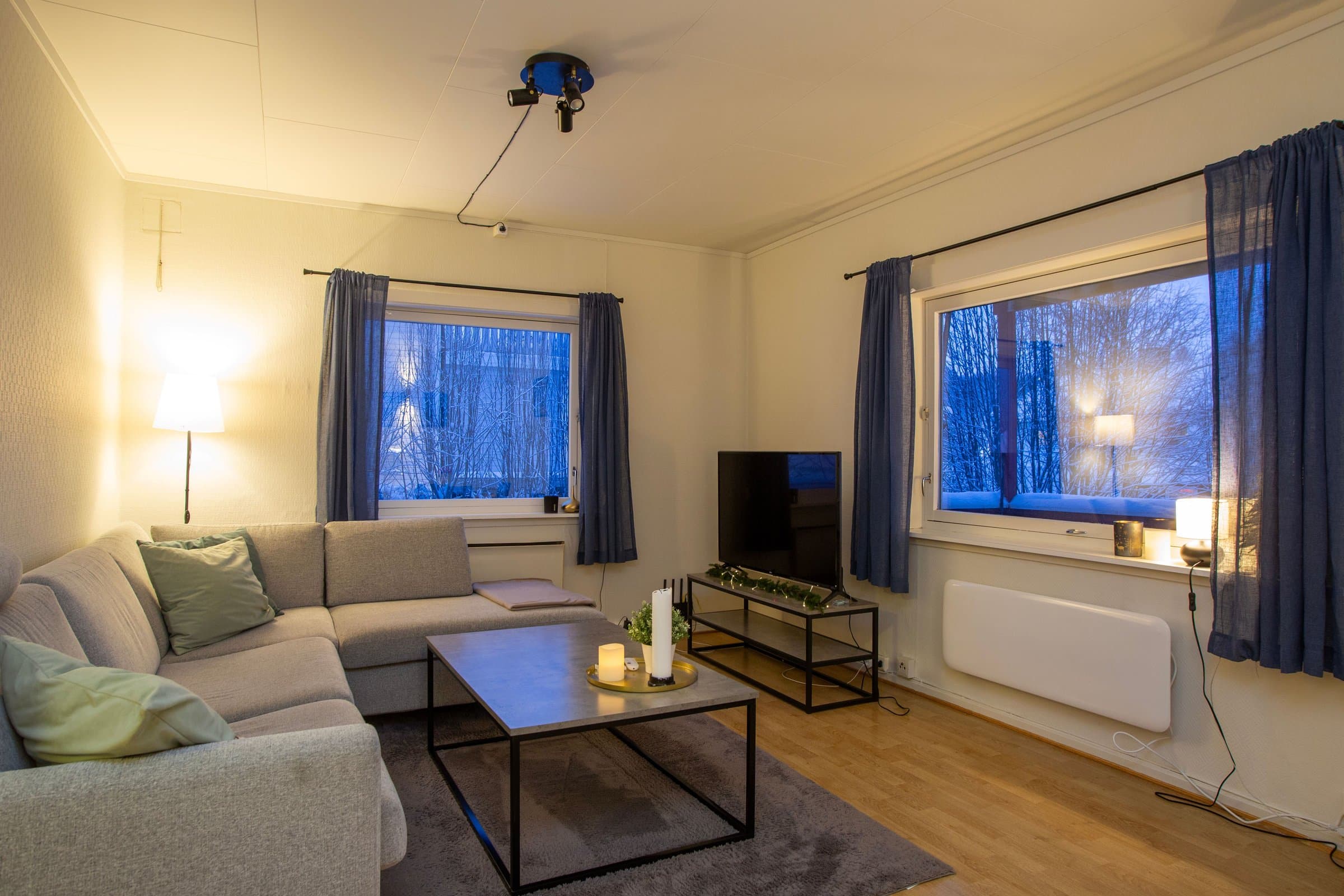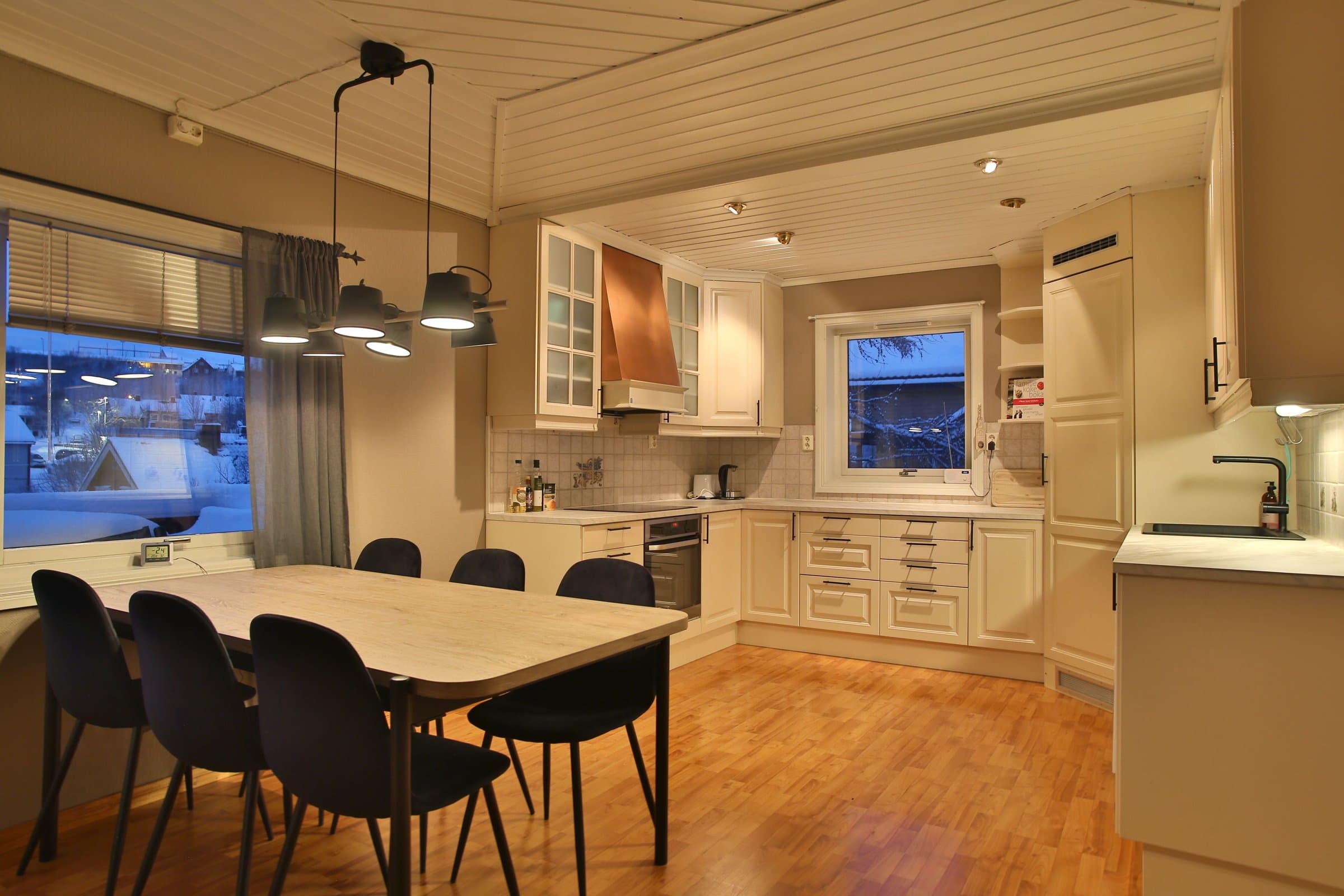 Boligen ligger i en stille gate, med umiddelbar nærhet til skole, barnehage og Kirkenes Sentrum