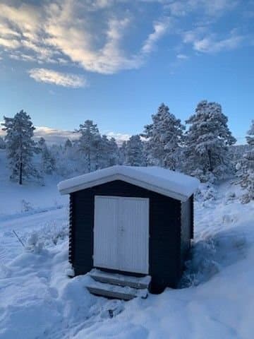 Praktisk, liten hytte med kjøreveg fram, strøm, vann og kloakk. Usjenert, gode solforhold. Blefjells løypenett tett på.