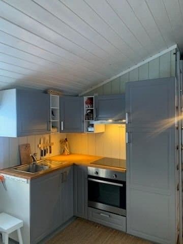 Koselig, lettvint og velholdt hytte. Den er liten, men har alle bekvemmelighetet, dvs alt du trenger for avslappende og gode opphold. Her er to store terasser, med mye sol. Bilveien brøytes jevnlig og den ble i høst oppgradert bl.a. nygruset. En effektiv peisovn holder hytta varm selv på svært kalde dager, og panelovner sikrer at den holder tilstrekkelig temperatur når du ikke er der. God plass i boden til oppbevaring av ved, ski mm.