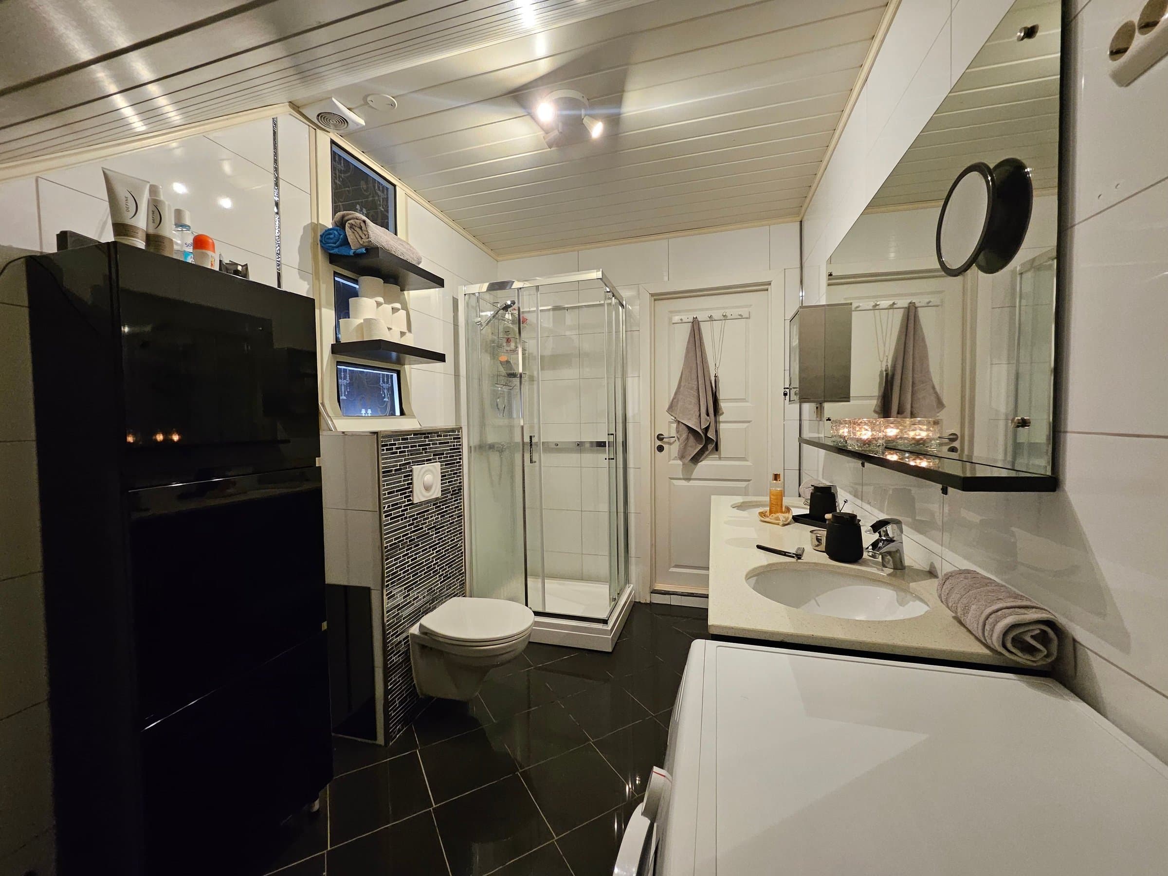 Lagringsplass i "knevegger" på badet og det store soverommet. Bod på ca 6 kvm. Koselige felles områder, med utemøbler og grill. Muligheter for lading av elbil. Naboene har en ordning seg imellom. Sier litt om naboskapet. Veldig hyggelig sameie. Dyrehold er tillatt. Veum er under utvikling, som kommer til å reflektere seg rask i boligprisene. Felleskostnader inkluderer kommunale avgifter, bygningsforsikring, vann, avløp og renovasjon. Sameiet har ingen lån i dag.