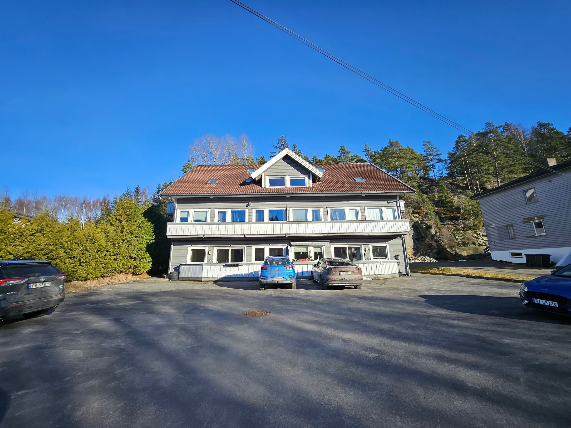 Velkommen til Veumveien 123C - dette er en koselig og tiltalende 3-roms leilighet som ligger i byggets øverste etasje. Går inn på byggets bakside, noen få trappetrinn så er du i leiligheten. Leiligheten har en hyggelig og innbydende standard hvor det er pene fargevalg i leiligheten. Det er en praktisk og gjennomtenkt planløsning. 2 godkjente soverom. Veranda med pergola.Ca 12 kvm. Ettermiddagssol/kveldssol. Åpen kjøkkenløsning.Kjøkken fra Kvik 2019 med demping på skuffer og skap. Romslig bad med to vasker og dusjkabinett. Varmekabler i gulv på badet. Oppvarming forøvrig fra moderne glasspanelovner, kan styres fra app. Wifi og manuell. Medfølger parkeringsplass til 2 biler og utvendig bod.