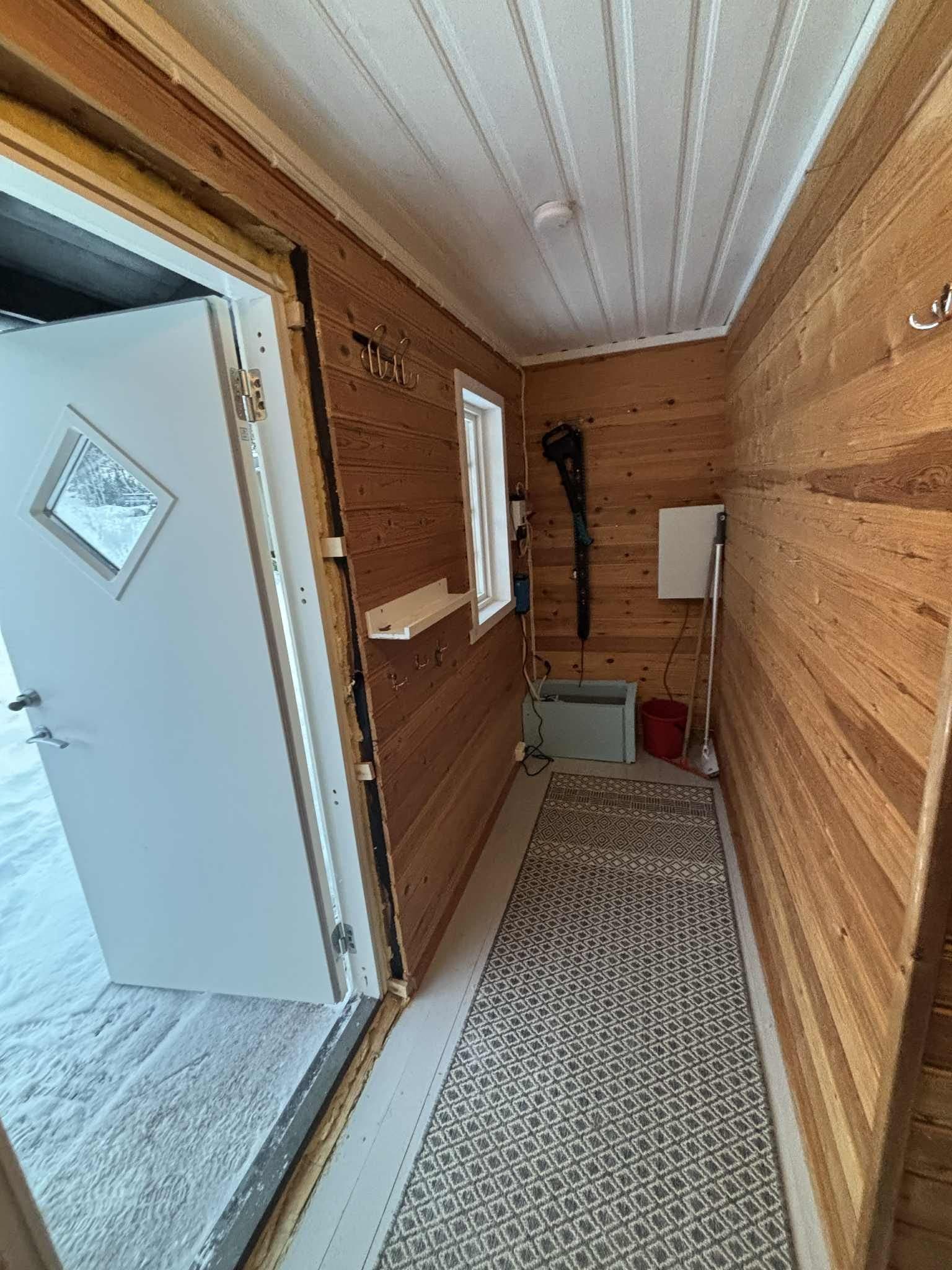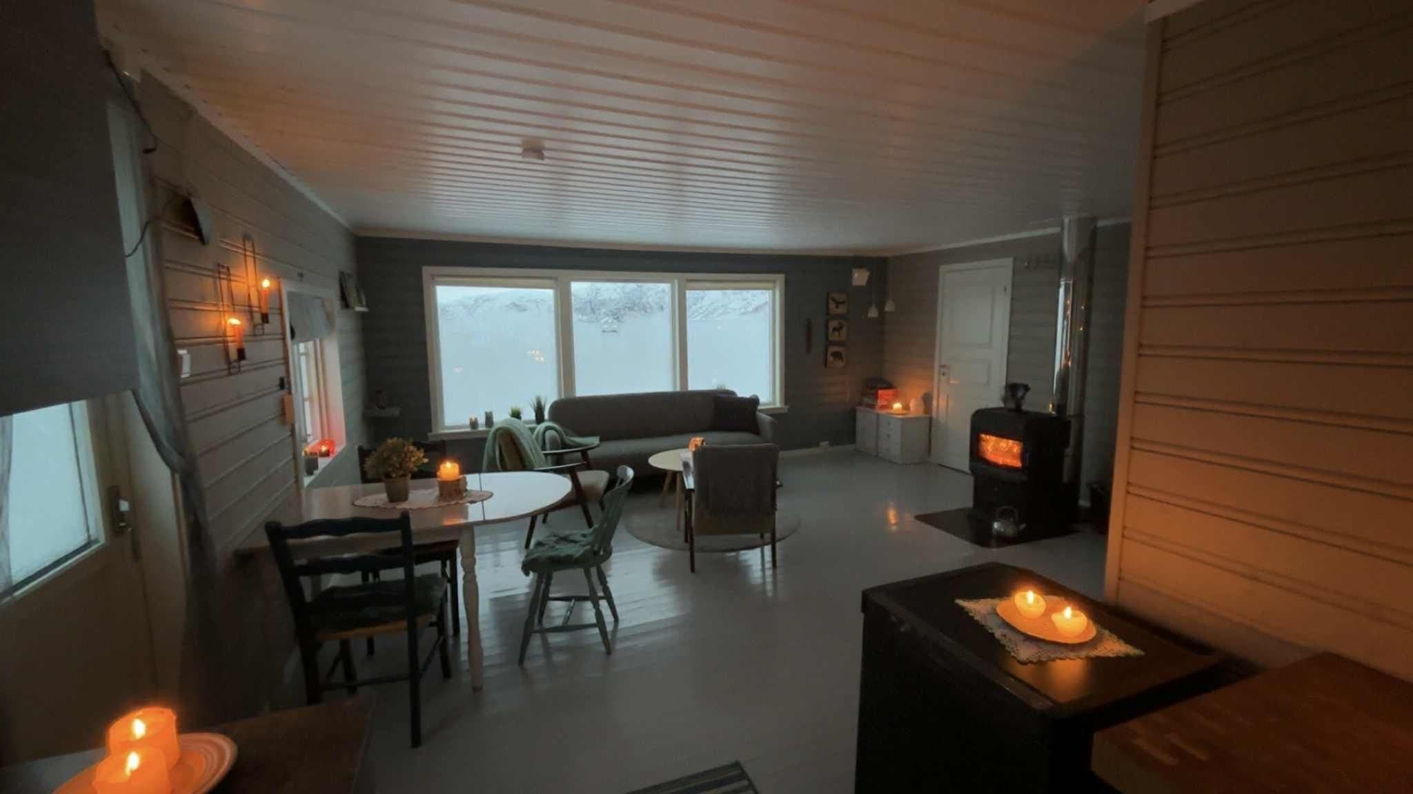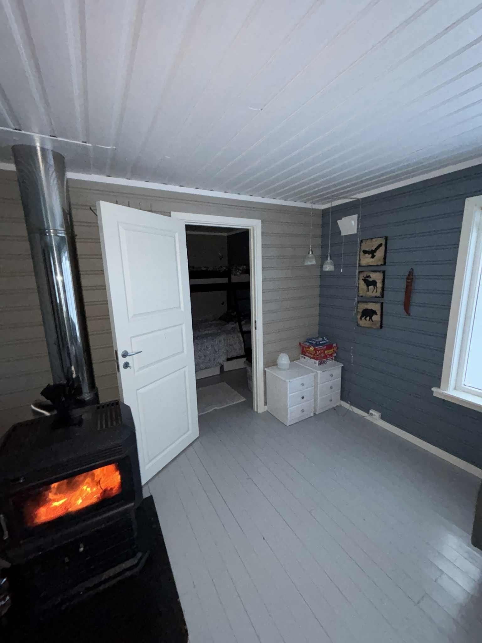 Visninger må avtales da man må kjøre scooter inn til hytta nå på vinter og man må ha dispensasjon for å kjøre dit fra kommunen.