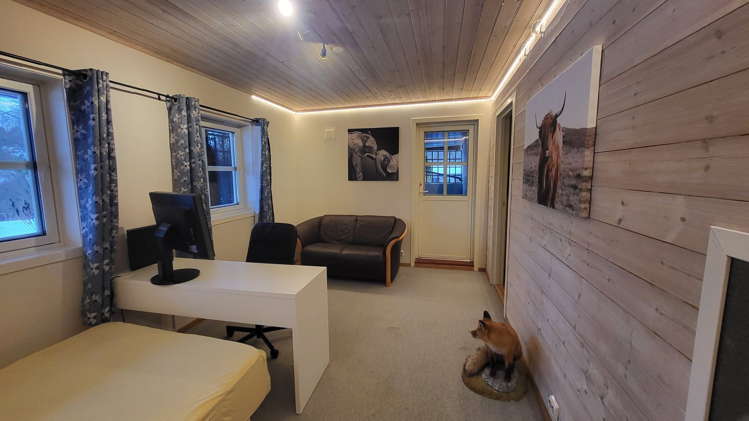 Velholdt og innholdsrik enebolig med stor opparbeidet hage, fin utsikt og gode solforhold selges i trivelig område med nærhet til de fleste fasiliteter som Gyland har å by på. Huset har en grunnflate på ca 125 m2. Hovedetasjen inneholder romslig kjøkken med stor benkeplass og god plass til spisebord. Fra kjøkkenet har man direkte tilgang til praktisk vaskerom med egen inngang, slik at dette kan benyttes som en grovinngang om man ønsker det. Stua ligger vestvendt med utsikt over Kongevold. Den har en flott vedovn, og det er god plass til flere sittegrupper, tv-krok eller hva man ønsker. Det er dør fra stua ut på en vestvendt terrasse på 48 m2 med kveldssol på sommeren. Hoved- og vaskeromsinngangen er overbygget og godt beskyttet. Her er det også plass til et par stoler for morgensolen eller praktisk klessnor under tak. Entreen har plass til klær og sko både åpent og i skyvedørsgarderobe, her er det også husbrannslange. Gangen gir adkomst til stuen, wc, bad med dusj og badekar, to soverom og trapp til kjeller og loft. Det ene soverommet er gjort om til garderobe, slik at man kan ha hovedsoverom med walkin-closet og bad rett ved siden av. Kjelleren er også en praktisk hverdagsinngang siden det er garasje i kjelleren og man kan kjøre rett inn i huset og lukke porten etter seg. Garasjen er også isolert siden kjelleren er bygget i et ferdigisolert system som heter Sundolitt Kub. Den har plass til en bil, men har god ekstra plass slik at man kan ha rund 3 favner veden liggende tørt og fint, og f.eks. plass til hyller og en arbeidsbenk. Fra garasjen kommer man inn til en sluse/gang med plass til klær og sko. Kjelleren inneholder kjellerstue med vedovn, et lite bad, liten matbod, teknisk rom og to soverom. I tilknytning til garasjen er det en praktisk bod. Her er det lagt frem vann til et fremtidig kjøkken om man er interessert i å gjøre kjelleren om til en utleieleilighet. Både soverommene i kjelleren og hovedetasjen ligger nordvendt slik at de er svale og behagelige når man skal legge seg en fin sommerdag. Loftet er innredet noe senere, og var ferdig i ca 2013. Her er det en lys og åpen loftstue med mulighet for TV-stue. Det er egen bod under skråtaket for å få en vegg for TV-oppheng, veggen har innbygget hylle med plass for dekoder o.l og strømtilførsel skjult på baksiden. Fiberkabel for internett kommer også inn i denne boden. Det er lagt frem trekkerør til lydanlegg med evt. bakhøytalere. Loftet inneholder videre kontor, soverom, hobbyrom/soverom og to boder til. Under terrassen er det tettet med lysplater og takrenner slik at det er et greit sted for oppbevaring av sykler, dekk, ski, mopeder eller hva man har bruk for å sette under tak. Oppvarming av huset er basert på vedfyring, varmepumpe og varmekabler. Det er vedovn i stue og kjellerstue, og varmekabler på begge bad og på vaskerom. Varmepumpa er montert ved trappa i gangen i kjelleren, slik at varmen stiger opp i hovedetasje og loft. Det er ikke fastmonterte varmeovner på soverommene, hobbyrom og kontor. Hvis man ønsker en jevnere varme i disse rommene, kan det være nødvendig. Det er tidligere foretatt radonmålinger av eiendommen som viste for høye verdier. Det ble etablert en form for radonbrønn ved montetring av vifte i inspeksjonskum på dreneringsanlegget. Målinger etter tiltak viste godkjente verdier og radonsertifikat ble utstedt i 2015. Viften er byttet i 2025. Salget omfatter også en ekstra tomt, Gnr 193 Bnr 83, som ligger ved siden av. Her har vi oppført en lekehytte/anneks. Der er det mulighet for overnatting i køyeseng, det er en liten hems, og rom for opphold/lek eller hva man ønsker. Denne kan f.eks også benyttes som hagebod. Taket på lekehytta er trukket ut til en praktisk liten carport der det er plass for et par ATV-er eller lignende. Lekehytta har innlagt strøm, og kabling for robotklipper er plassert slik at den får strøm fra lekehytta.