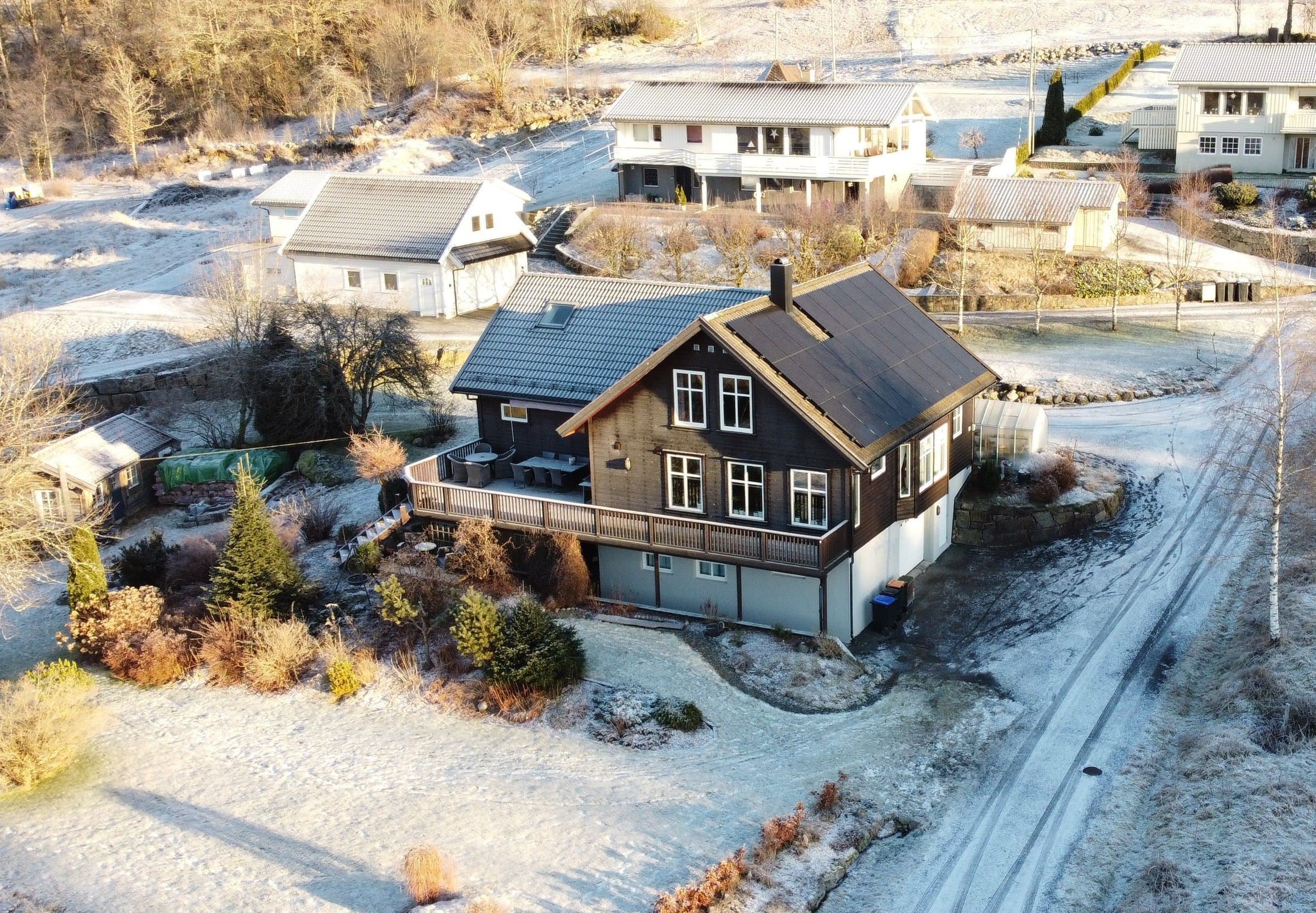 På den sørvendte delen av taket er det montert et solcelleanlegg med Peak power 10,73 kwp, som har produsert mellom 9100 og 11000 kwt i året etter at det ble montert i 2022. Integrerte hvitevarer: komfyr, koketopp, ventilator og oppvaskmaskin følger med. Drivhus og hundegårder som står på eiendommen følger ikke med i salget. Boligen er tilknyttet privat felles avløpsanlegg sammen med flere av nabohusene. Alle tilknyttede enheter betaler 100 kr pr mnd til fellesanlegget for dekning av fremtidige kostnader på anlegget. Hvis man ønsker visning utenom annonsert visning, er det bare å ringe og avtale tidspunkt.