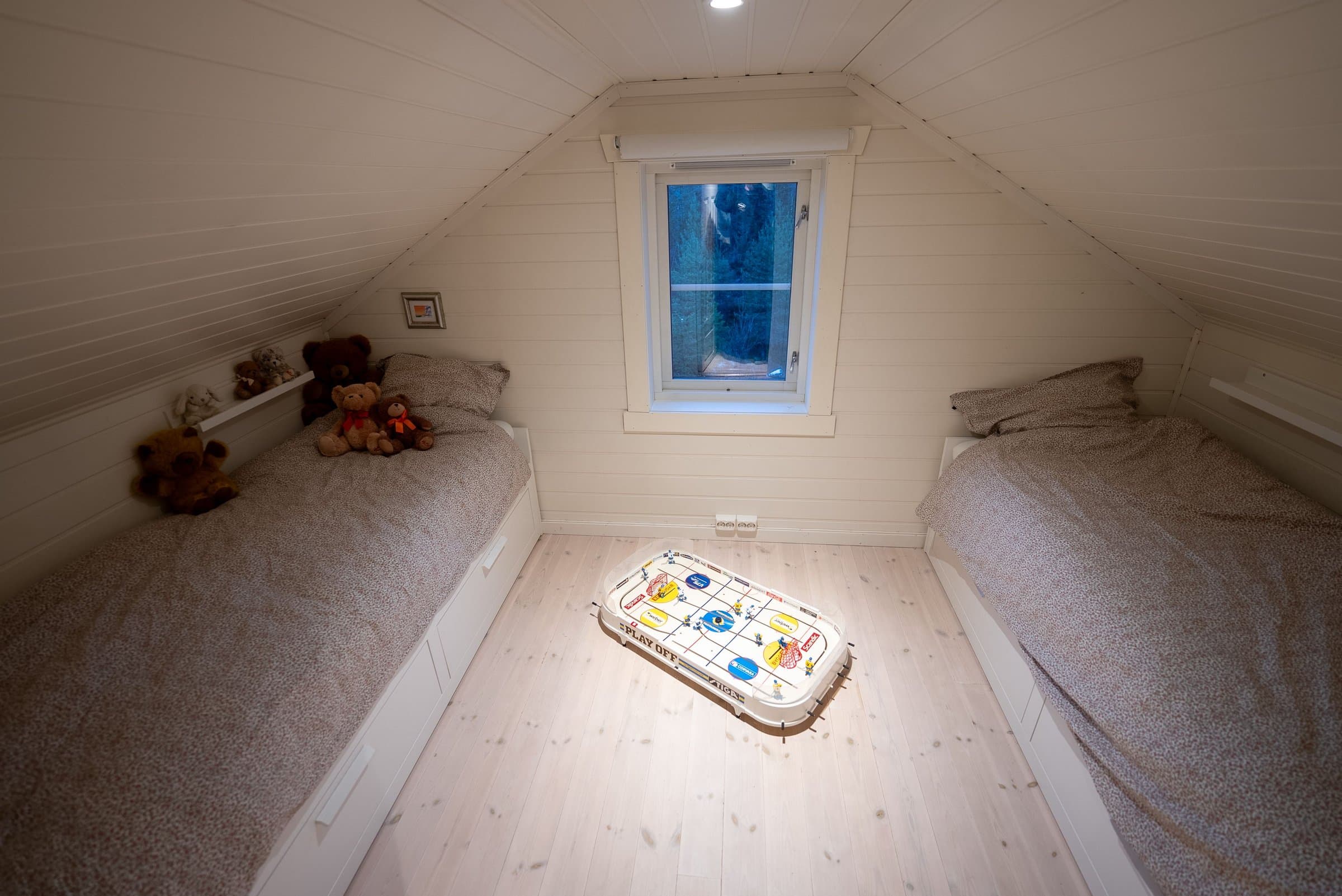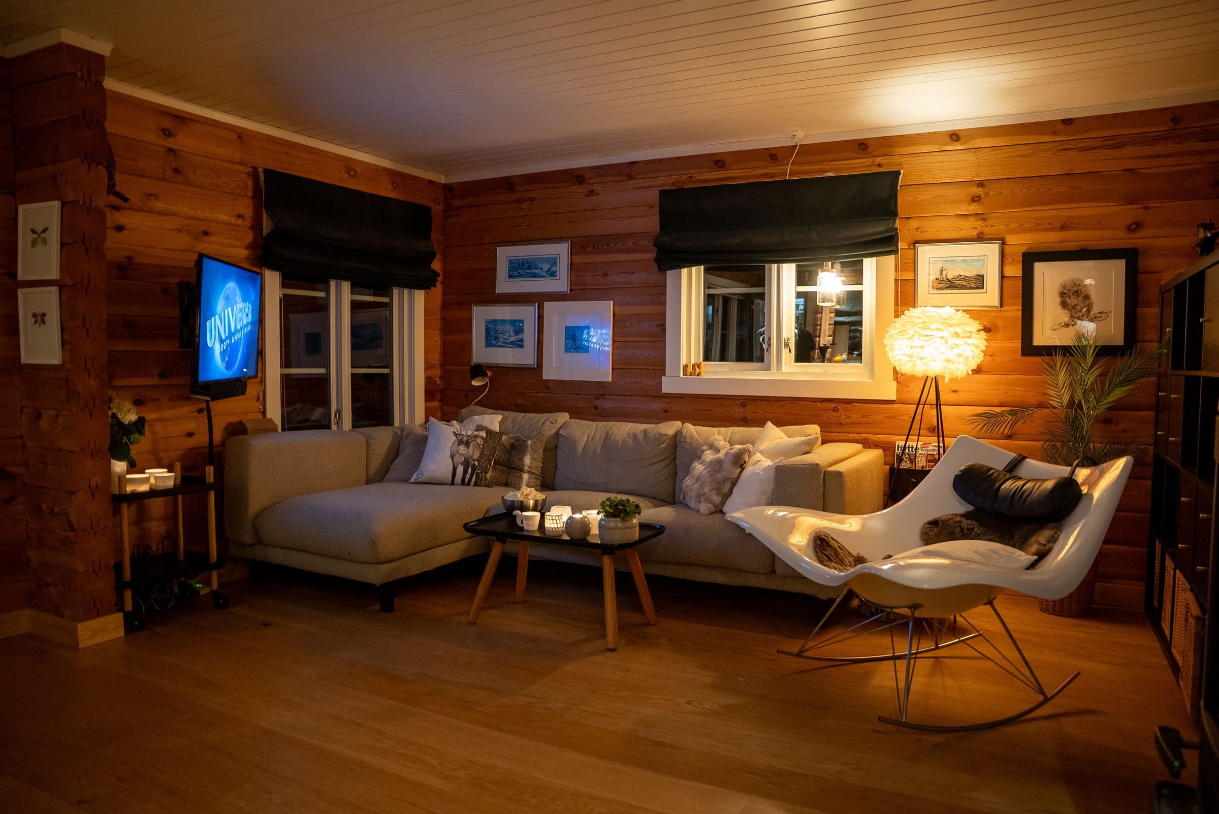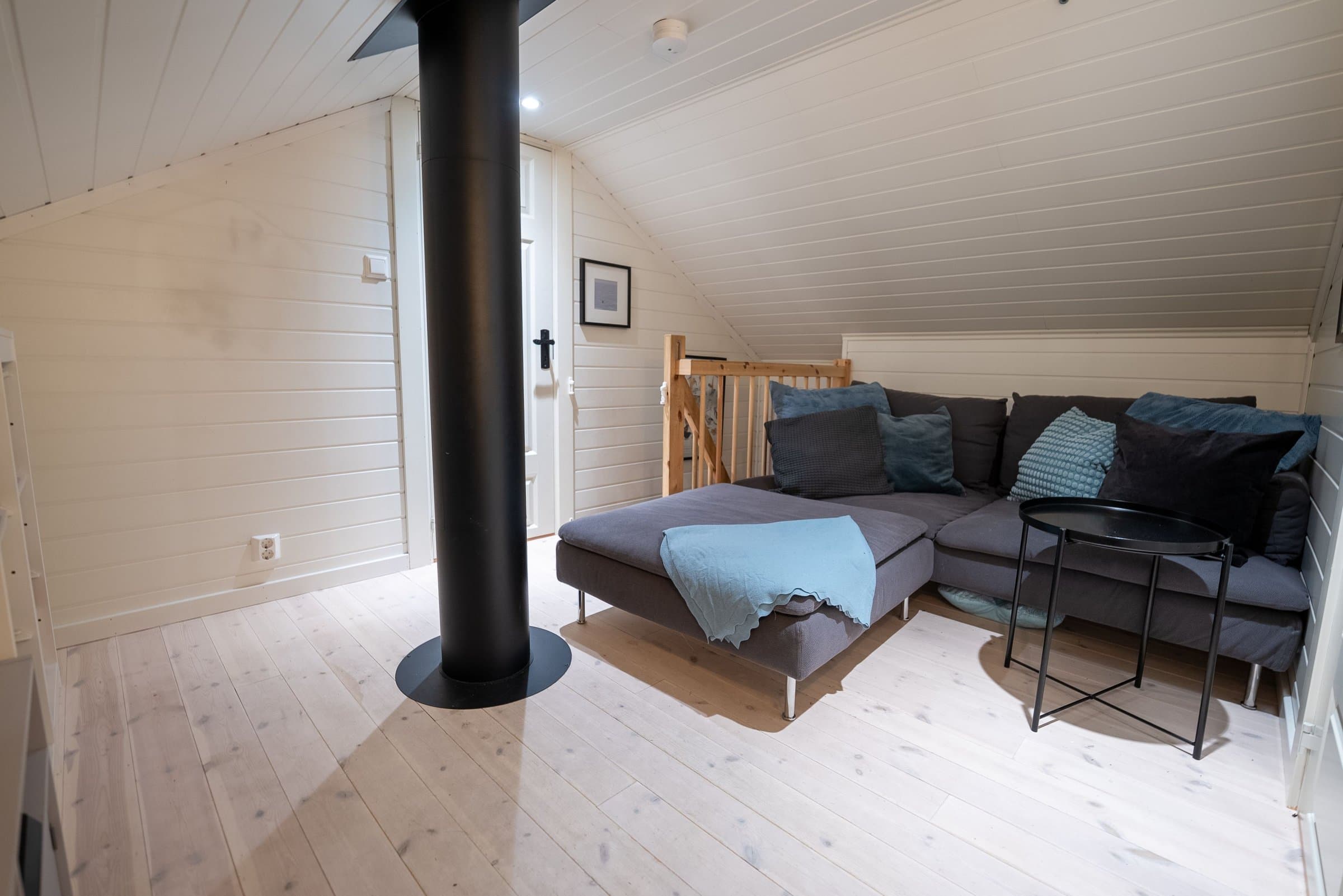Hytta er en moderne og arealeffektiv tømmerhytte fra 2017, med en planløsning som utnytter hver kvadratmeter godt. I første etasje ligger stue og kjøkken i en lys og åpen løsning, sammen med et romslig bad med badstue, hovedsoverom og en praktisk entré. Loftet er innredet med to soverom og et oppholdsrom i midten, noe som gir fleksible bruksområder og totalt åtte sengeplasser. Det som virkelig skiller hytta ut, er beliggenheten i hyttefeltet. Tomten ligger mer usjenert enn de fleste i feltet, med skog på to sider og en levegg mot nærmeste nabo. Ute oppleves det som om man bor mer for seg selv, samtidig som man har fordelene av et etablert hytteområde rundt seg. Terrassen, uteområdene og den vedfyrte stampen gir gode muligheter for å nyte livet ute og slappe av, og gjør at uteplassen fungerer som en naturlig forlengelse av hytta store deler av året. Hytta fungerer som en fullverdig helårshytte. Her har man gode muligheter for både vinteraktiviteter og sommerlige naturopplevelser rett i nærheten. Dette er en hytte som kombinerer moderne komfort, fleksibel planløsning og en beliggenhet som gir både ro og nærhet til naturen – et sted som fungerer like godt gjennom alle årstider.