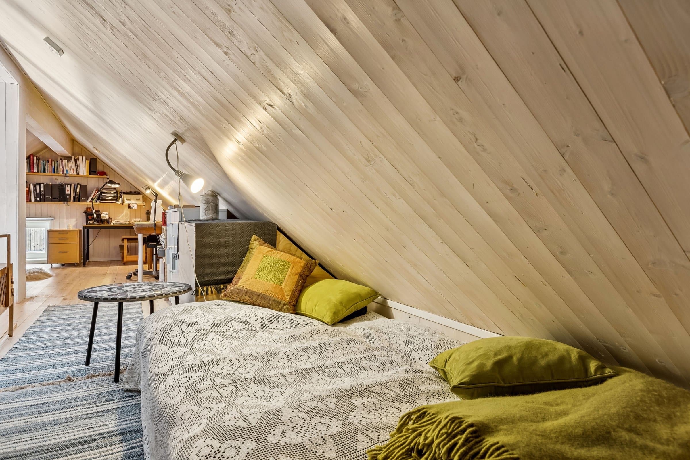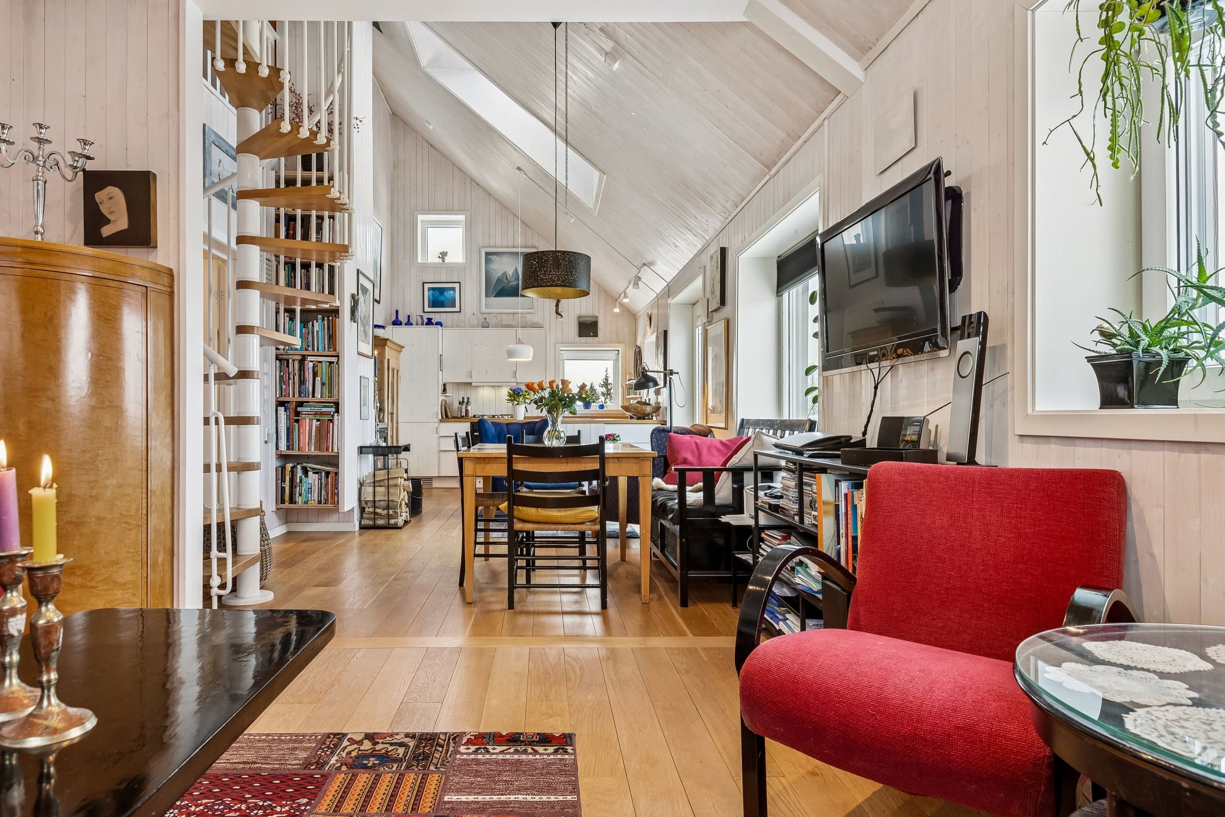 Romslig 2-roms med stor stue og innredet hems. Hemsen brukes i dag som kontor og gjesterom, men kan også brukes som soverom – noe flere i grenda har valgt å gjøre. Opprinnelig var det to soverom i hovedetasjen. Veggen mellom stue og det ene soverommet er fjernet for å gi et stort oppholdsrom, men kan enkelt settes opp igjen ved behov. Planløsningen gir dermed stor fleksibilitet og gjør boligen godt egnet i ulike livsfaser. Store vindusflater gir mye lys og nydelig utsikt ned mot Hurdalsjøen og til skogkledde åser. Det er ingen gjenboere, noe som gir mulighet for privatliv samtidig som man er en del av en hyggelig og sosial grend. Leiligheten har åpen planløsning. Kjøkkenbenkene har en praktisk U-form. Det kokes med gass, noe som enkelt kan tilbakeføres til elektrisk løsning dersom ønskelig. Det er installert vannrenser. Stuen har god plass til både spisebord og sittegruppe. I tilknytning til kjøkkenet er det et teknisk rom/«spiskammers» med gode lagringsmuligheter. Det er en bod ved inngangsdøra samt bod ved inngangen til hagen. Det romslige badet har badekar og bidetdusj. Vaskemaskinen er på teknisk rom. Fra stua er det utgang til veranda med ettermiddags- og kveldssol. Herfra er det trapp ned til egen, usjenert hage. Hagen har også inngang fra bakkeplan og har drivhus, blomsterbed og pallekarmer for dyrking av urter og grønnsaker. Leiligheten er meget godt vedlikeholdt, et fleksibelt og gjennomtenkt hjem som gir rom for både fellesskap og rolig privatliv. Kort fortalt: • Lys og fleksibel 2-roms leilighet med mulighet for flere soverom. • Innredet hems • Stor lys stue og romslig kjøkkenløsning. • Stor veranda med kveldssol og trapp ned til egen usjenert hage. • Flott utsikt og ingen gjenboere. • Godt vedlikeholdt og god lagringsplass. • Badekar, bidetdusj, gass og vannrenser. Følg "omvisningen" i leiligheten og hagen ved å lese teksten til bildene:-)