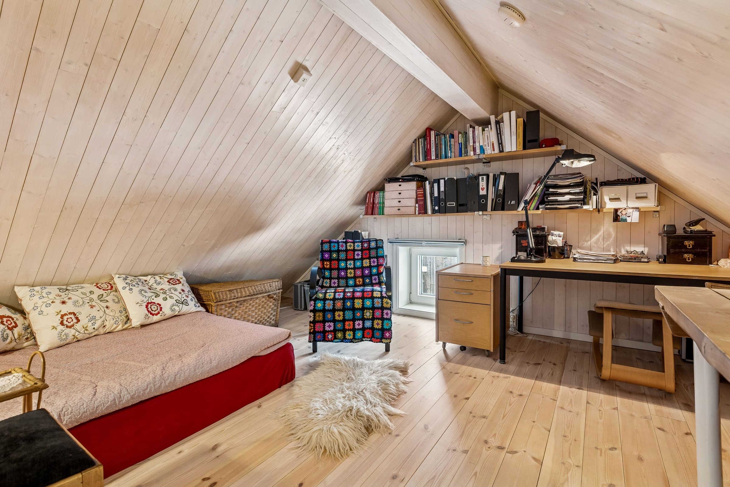 2-roms leilighet i 2.etg med innredet hems, flott utsikt og usjenert hage i et sosialt bomiljø.